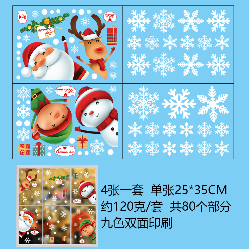 Рождественская наклейка Санта-Клаус Снеговик стеклянная наклейка макет окна Снежинка Лось наклейка на окно наклейка двухсторонний эффект