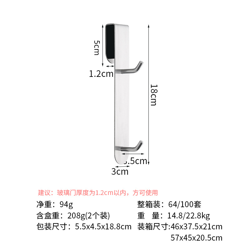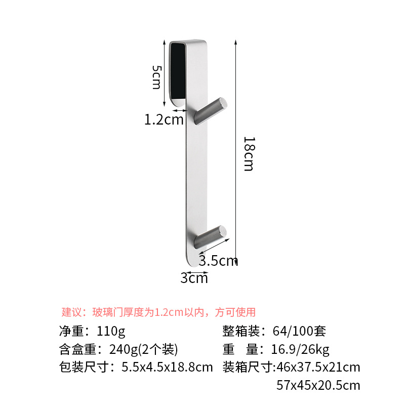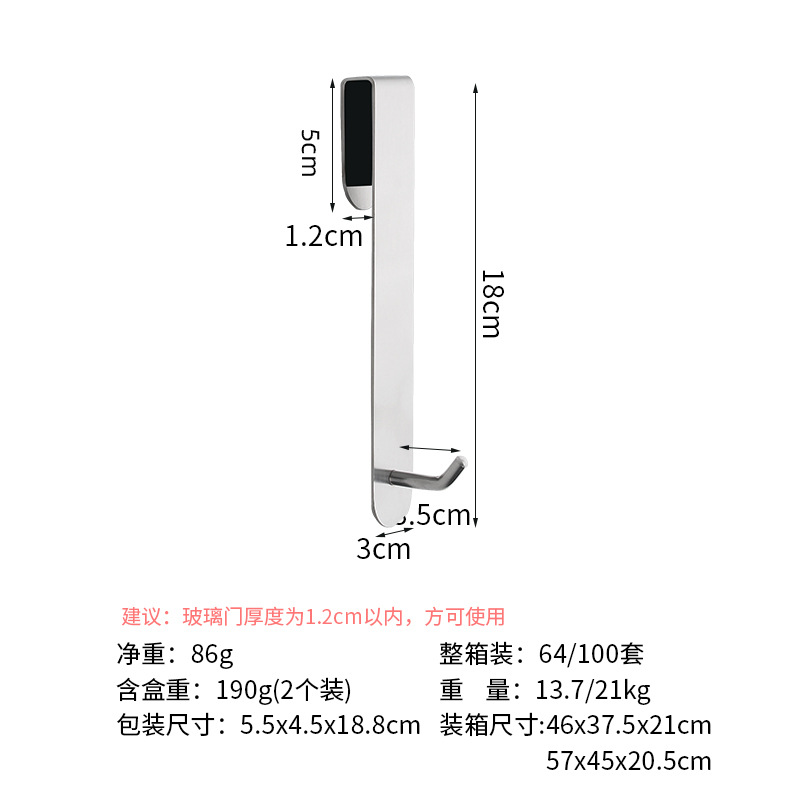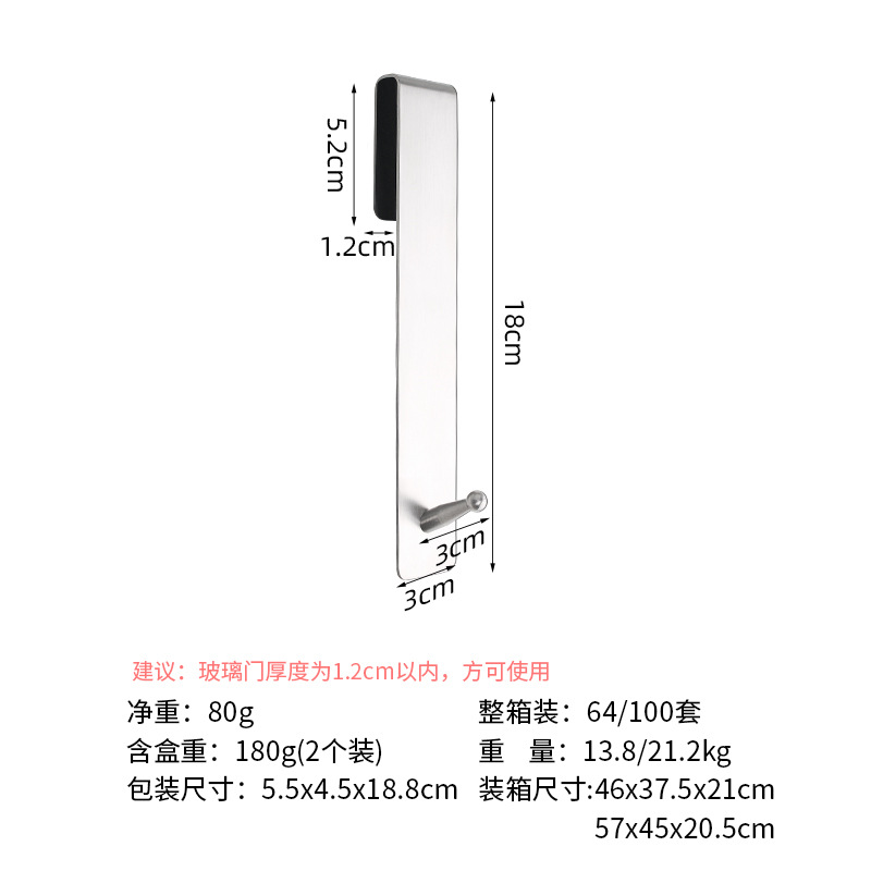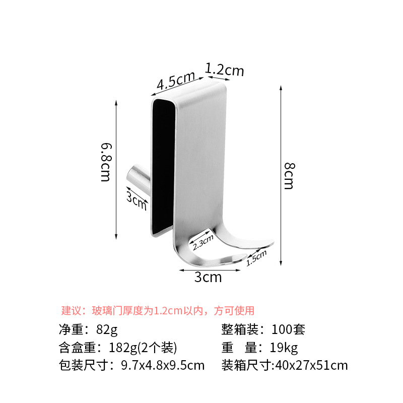 Ванная комната душевая стеклянная перегородка экран 304 из нержавеющей стали Длинный крючок Туалет неперфорированный дверной крючок