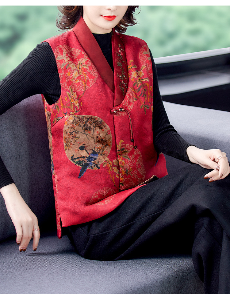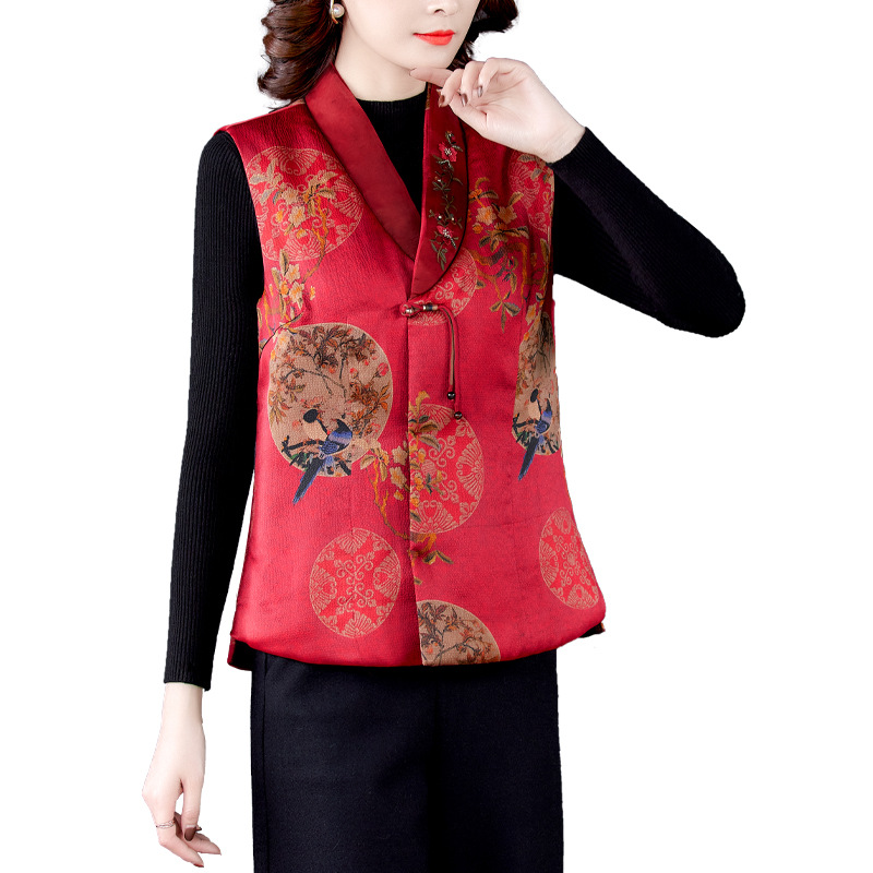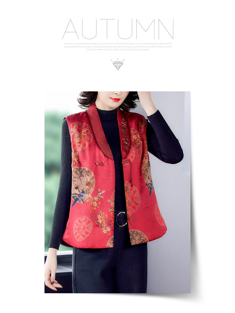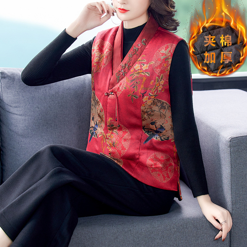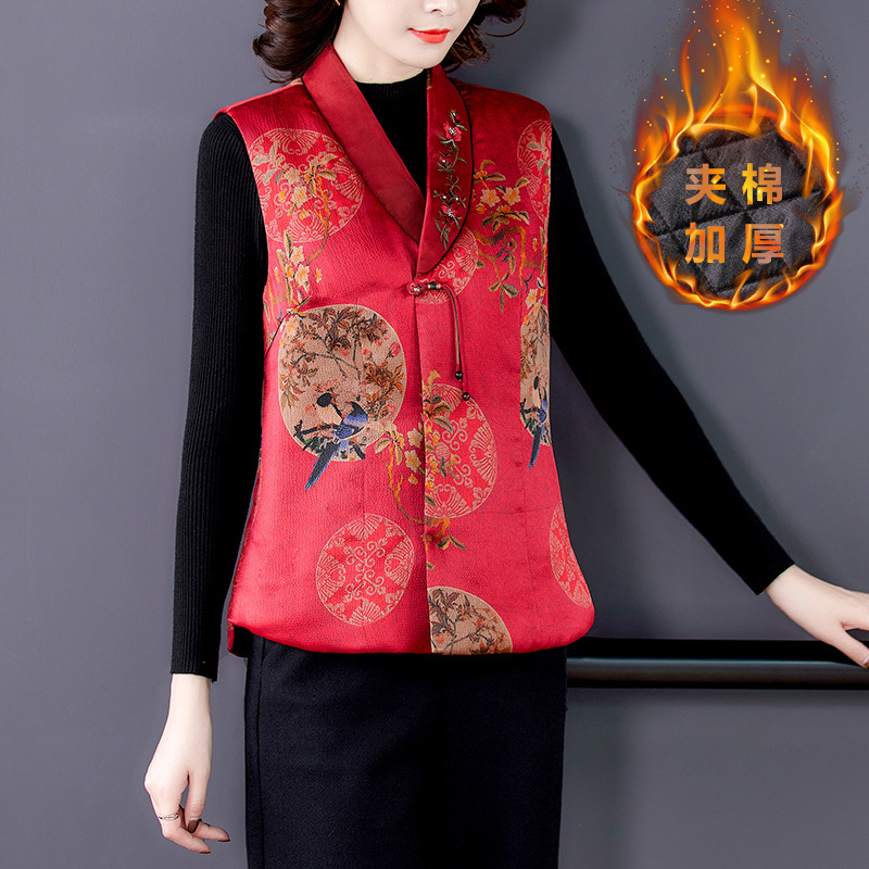 Жилет из хлопковой пряжи Xiangyun, женское шелковое пальто с хлопковой подкладкой, короткий жилет с хлопковой подкладкой, верхняя одежда для мамы 2021, осень и зима