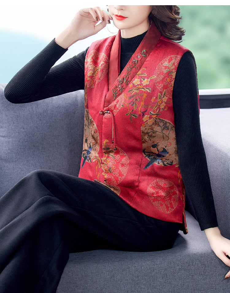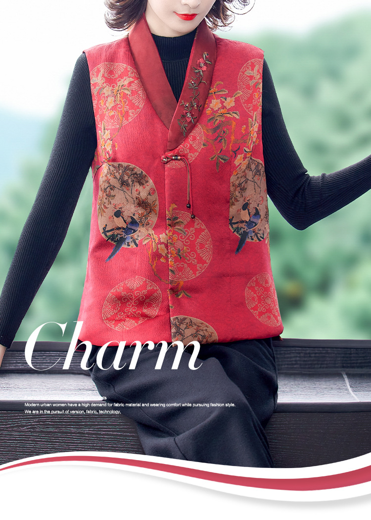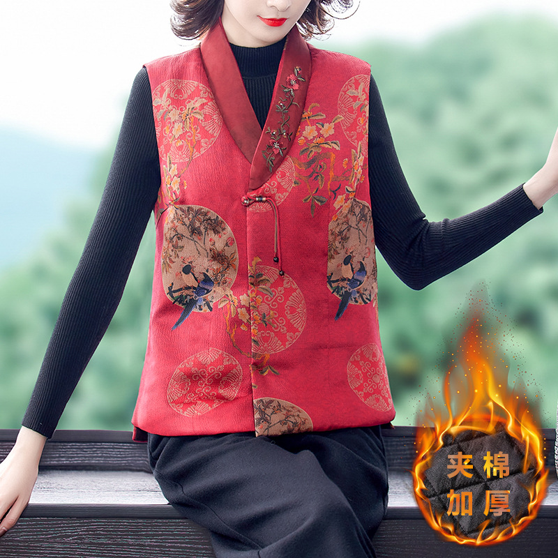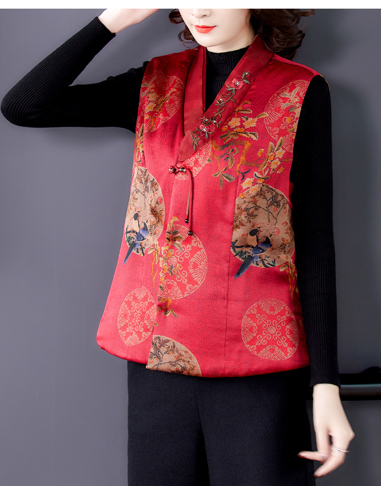 Жилет из хлопковой пряжи Xiangyun, женское шелковое пальто с хлопковой подкладкой, короткий жилет с хлопковой подкладкой, верхняя одежда для мамы 2021, осень и зима