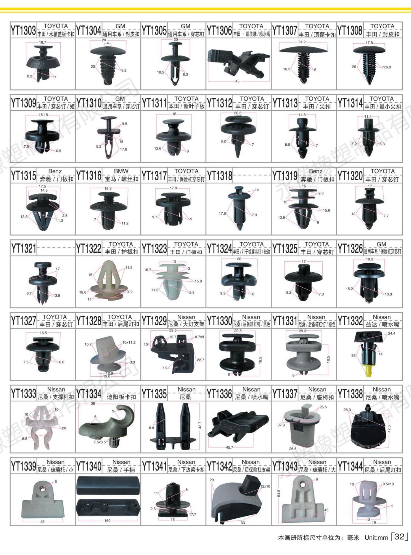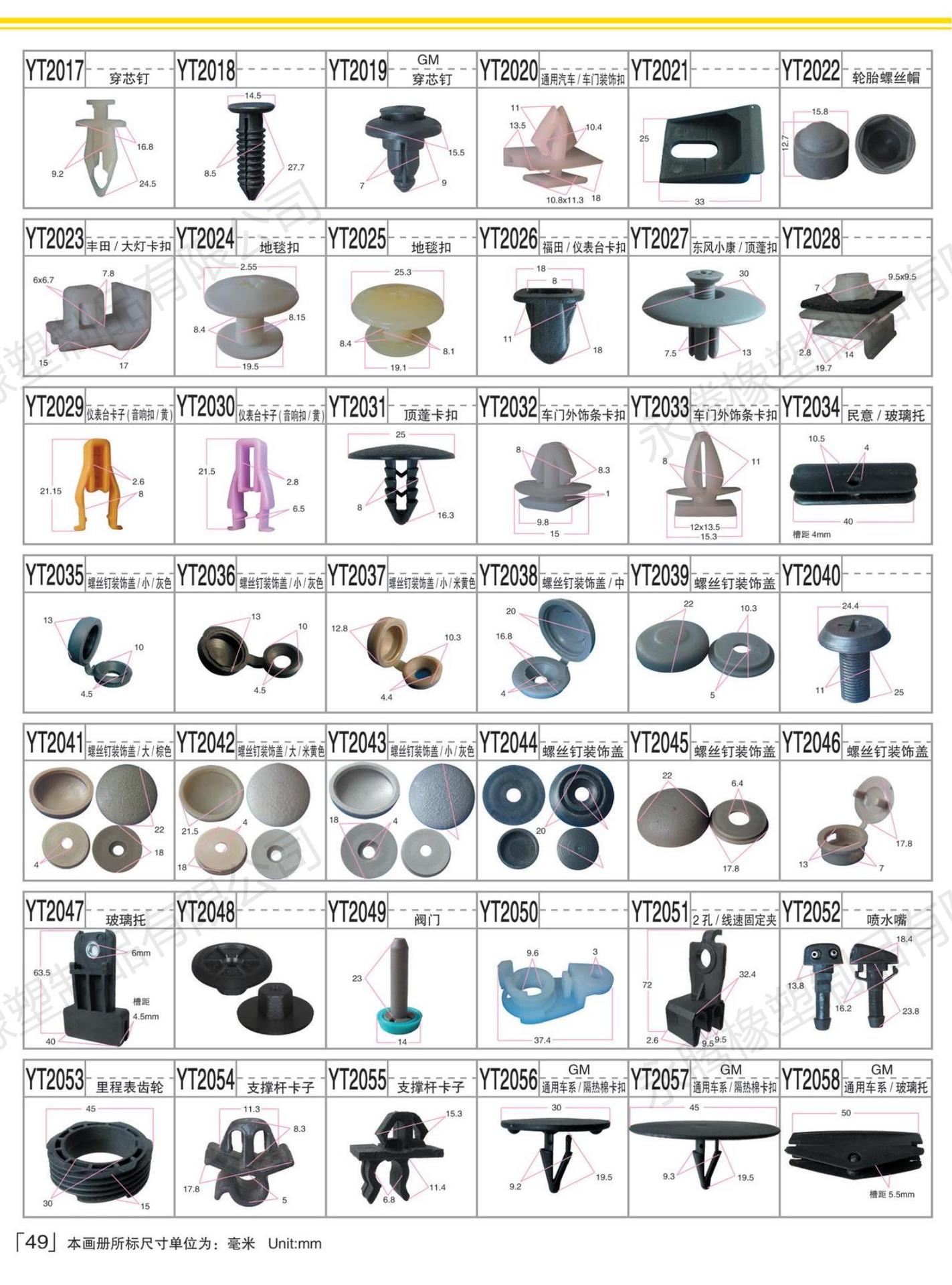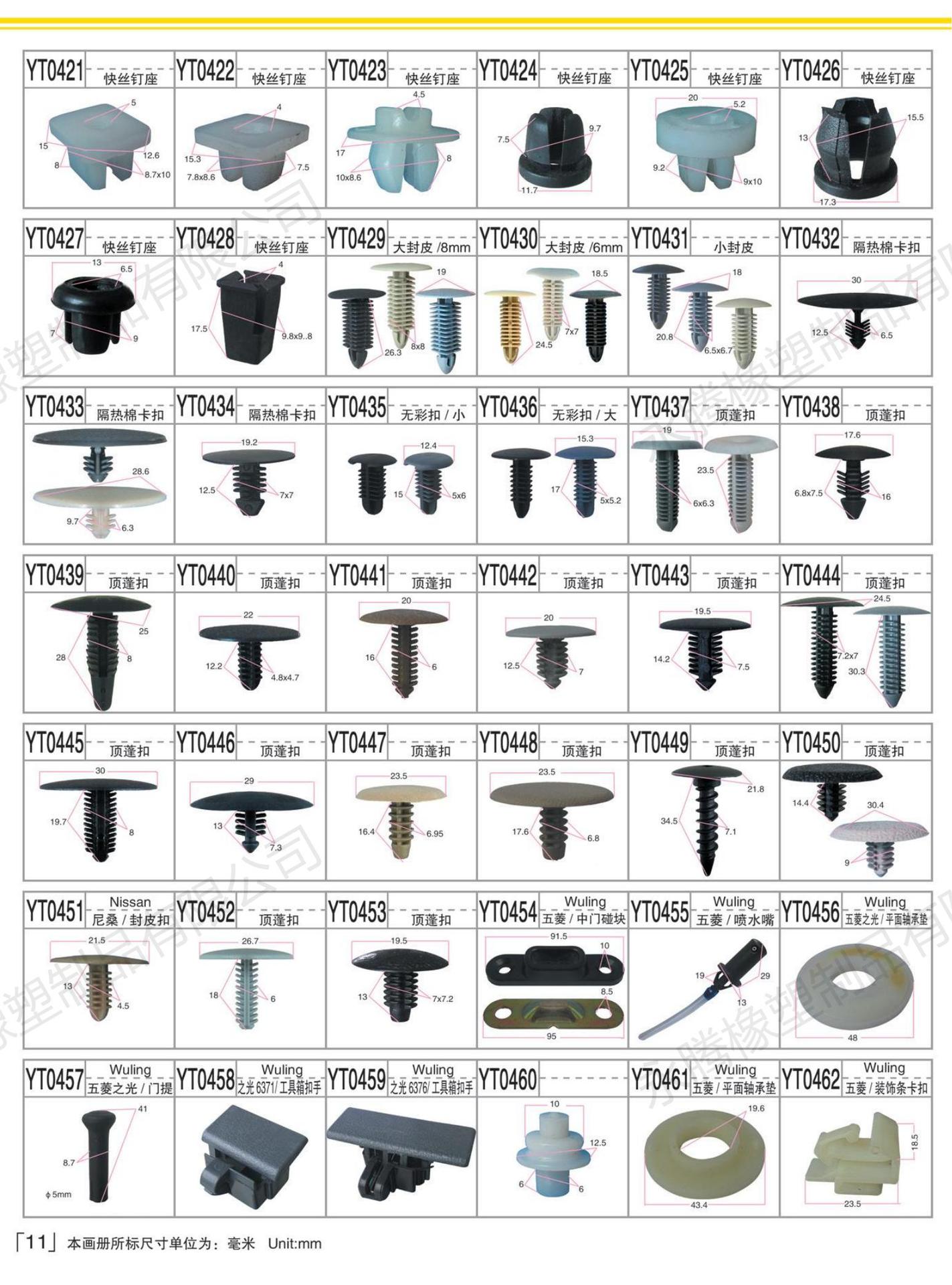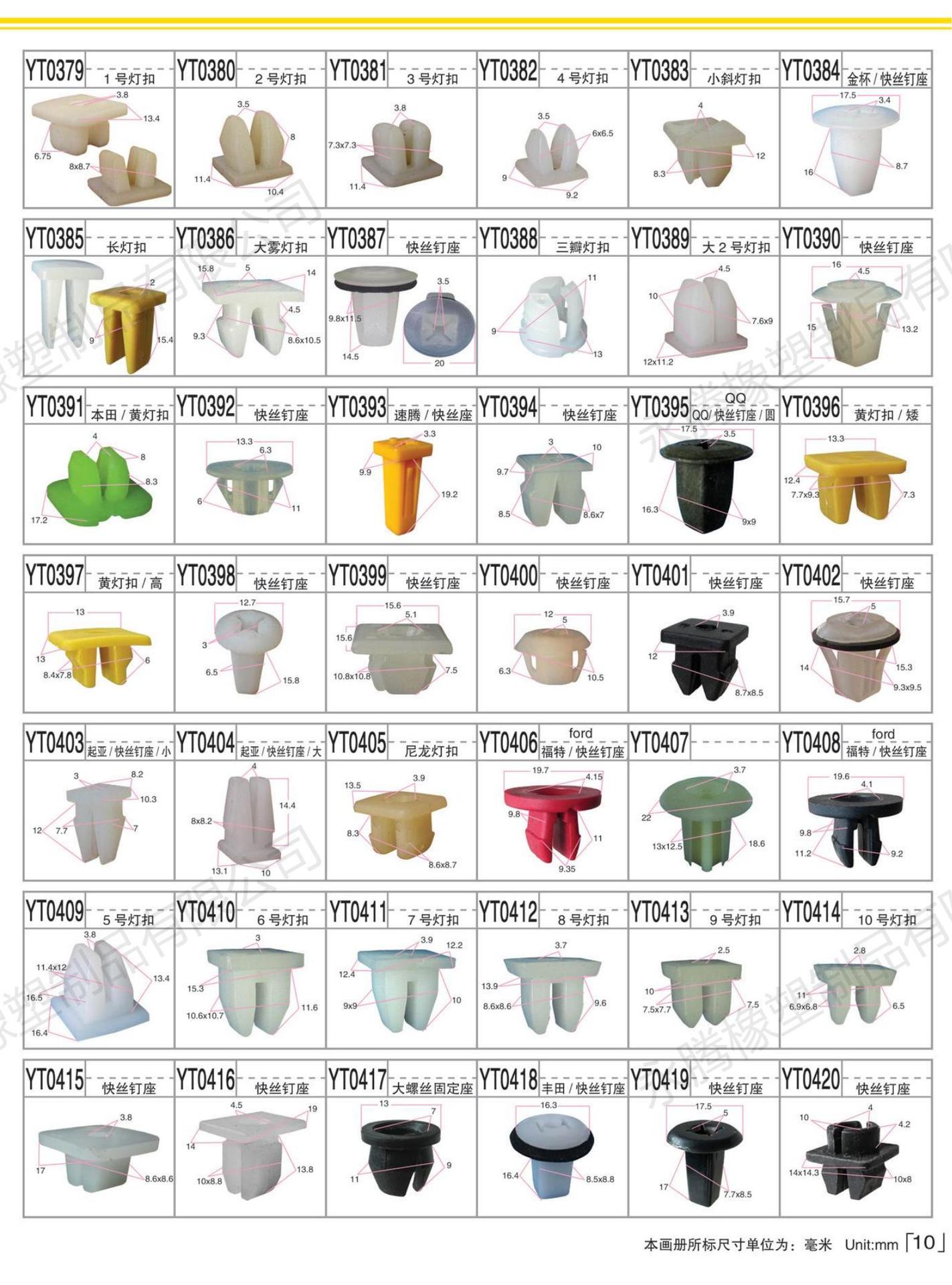 南宫市永腾橡塑制品有限公司主营汽车塑料卡扣、汽车卡扣、塑料卡扣、汽车铆钉、倒刺卡扣、门板卡扣、密封条钉、膨胀螺丝扣、汽车顶棚卡扣、仪表盘固定卡扣、穿心钉卡扣、不锈钢喉箍、尼龙扎带、线束卡子、管束卡子、汽车锁扣、自攻丝座、汽车玻璃托、玻璃开窗器、汽车摇柄、机盖隔热棉卡扣、支撑杆卡扣、叶子板卡扣汽车门内饰固定卡扣、装饰板固定卡扣、家具安装卡扣、线束固定卡扣、树形倒刺卡扣、定位夹卡扣、尼龙扎带、推进式膨胀卡扣等多种塑料卡扣等。