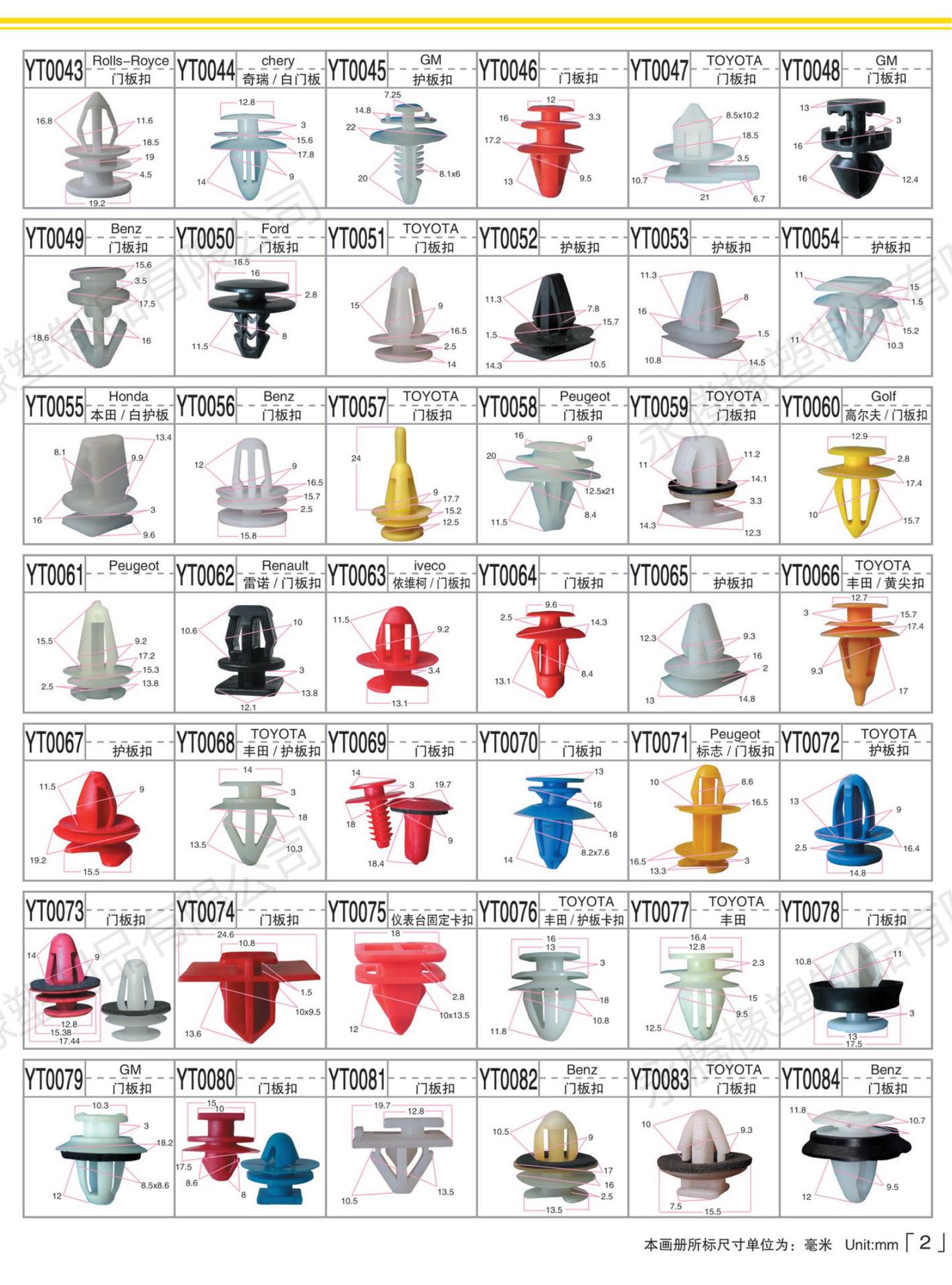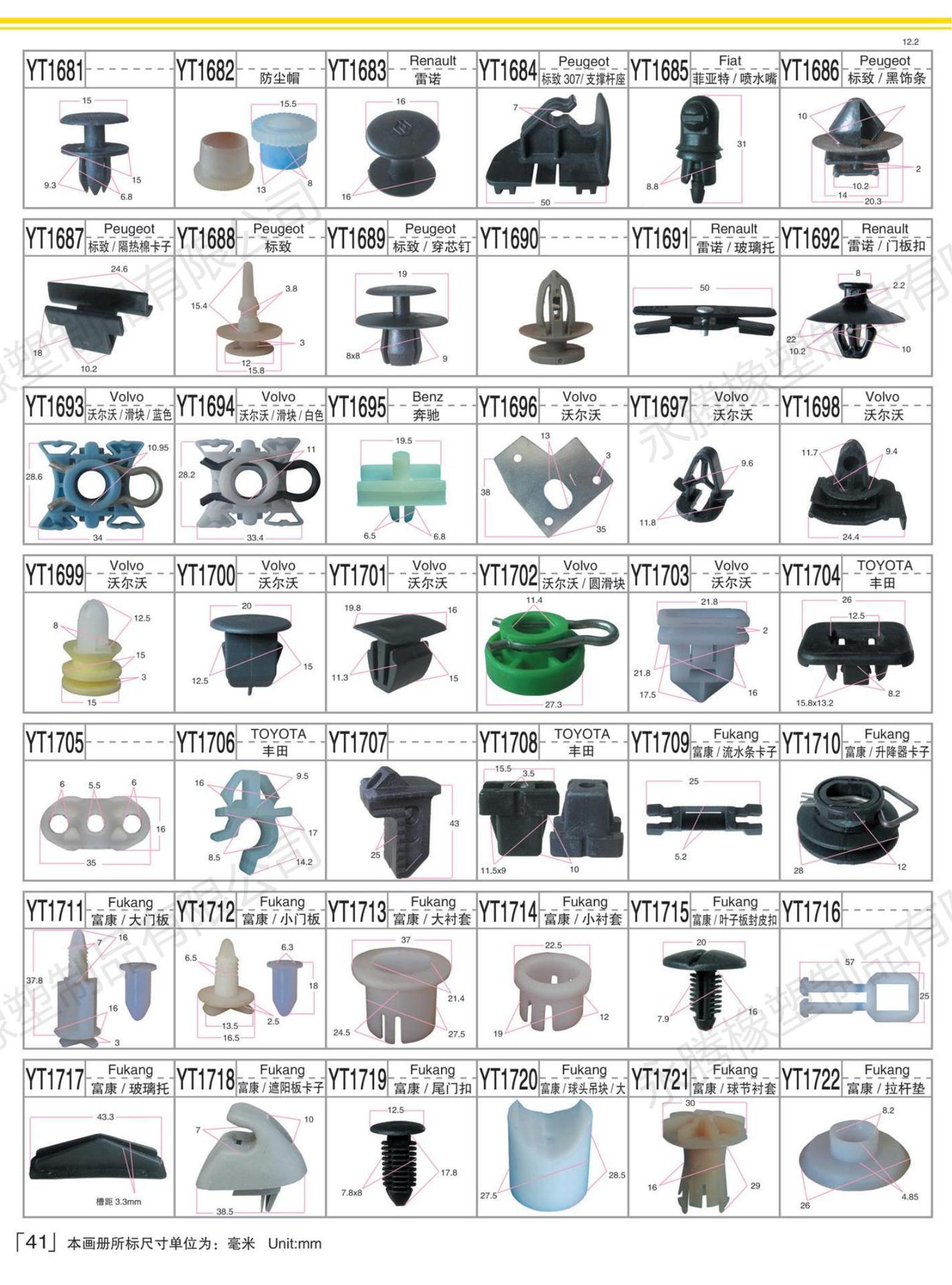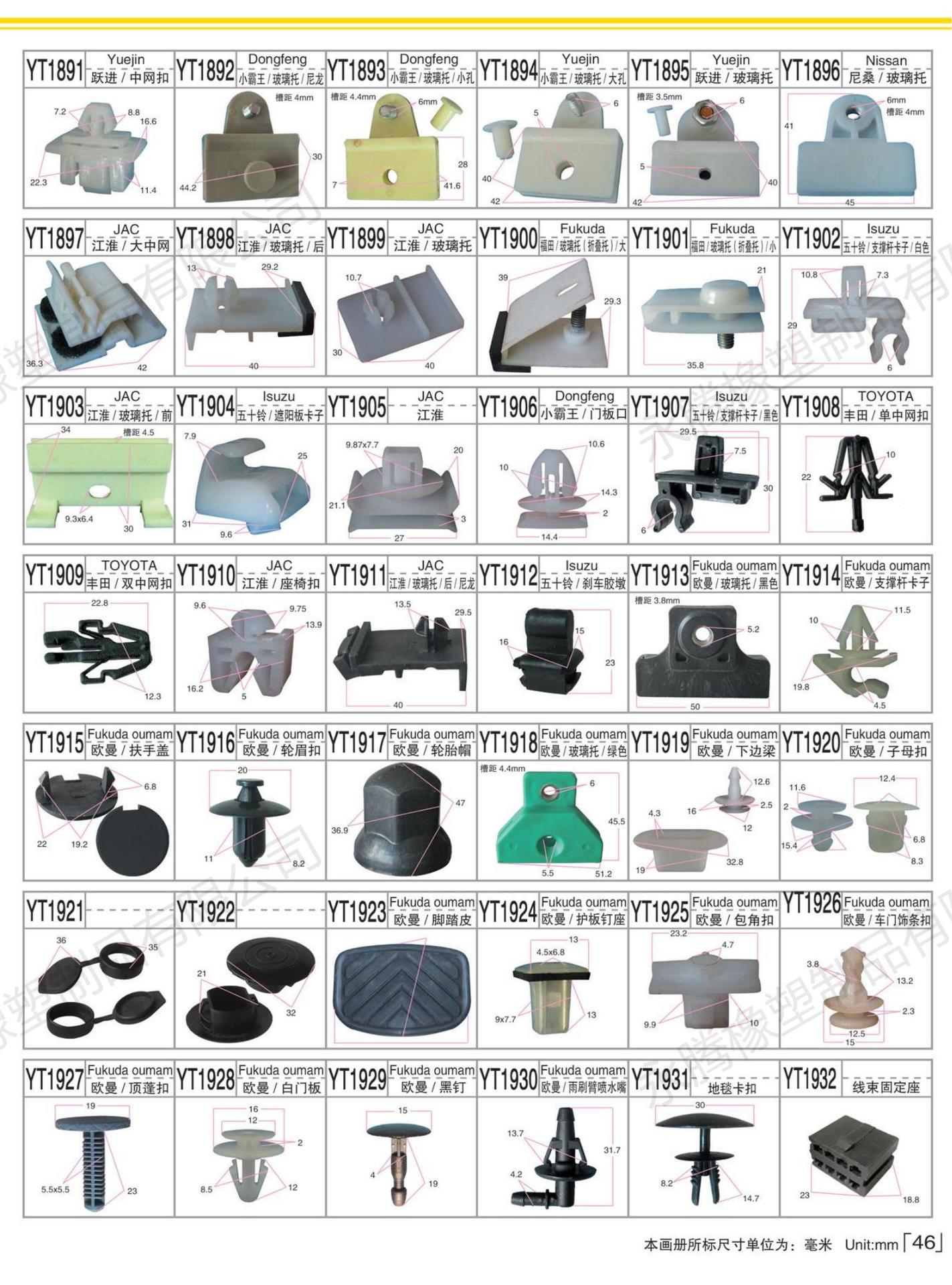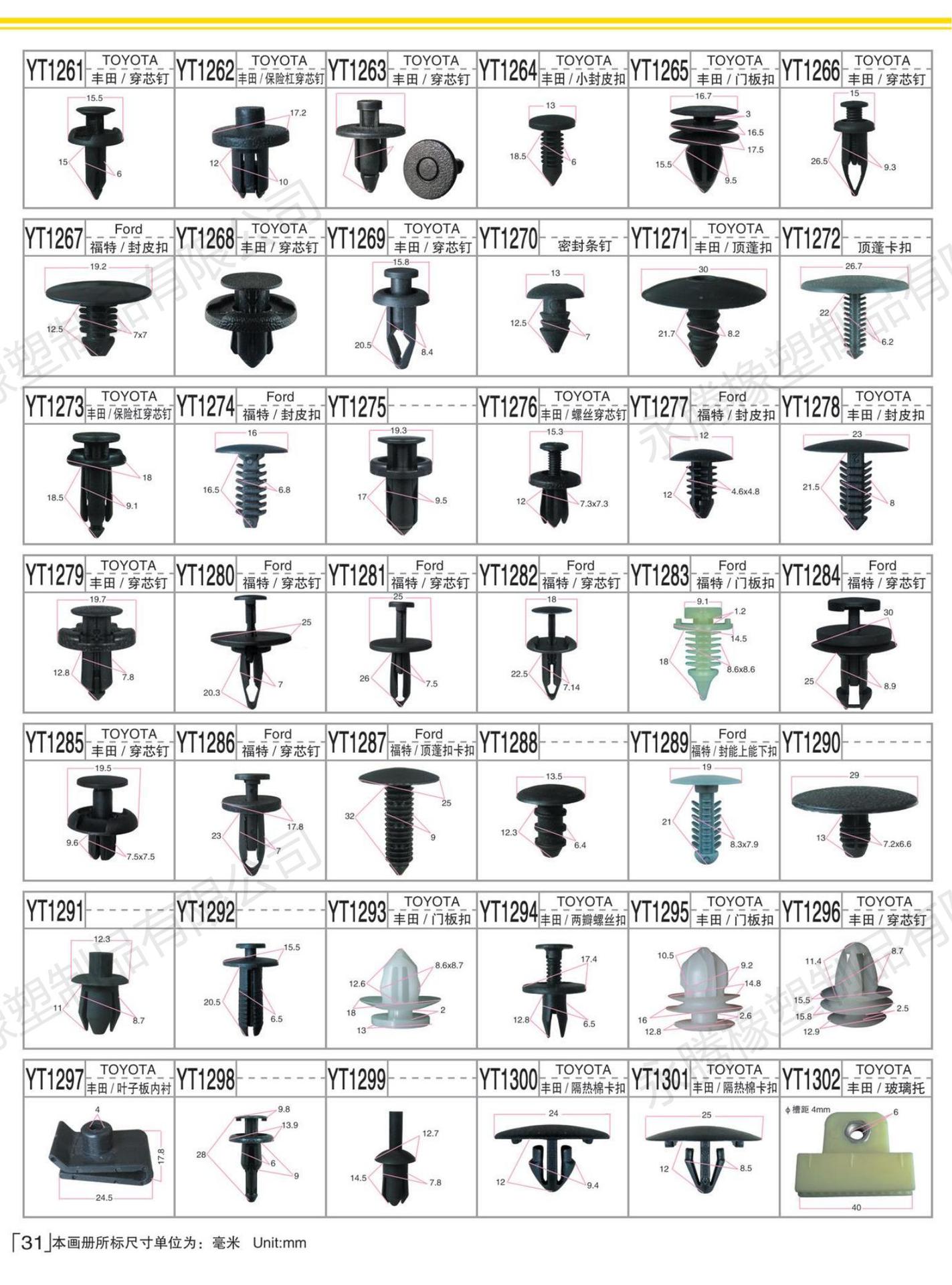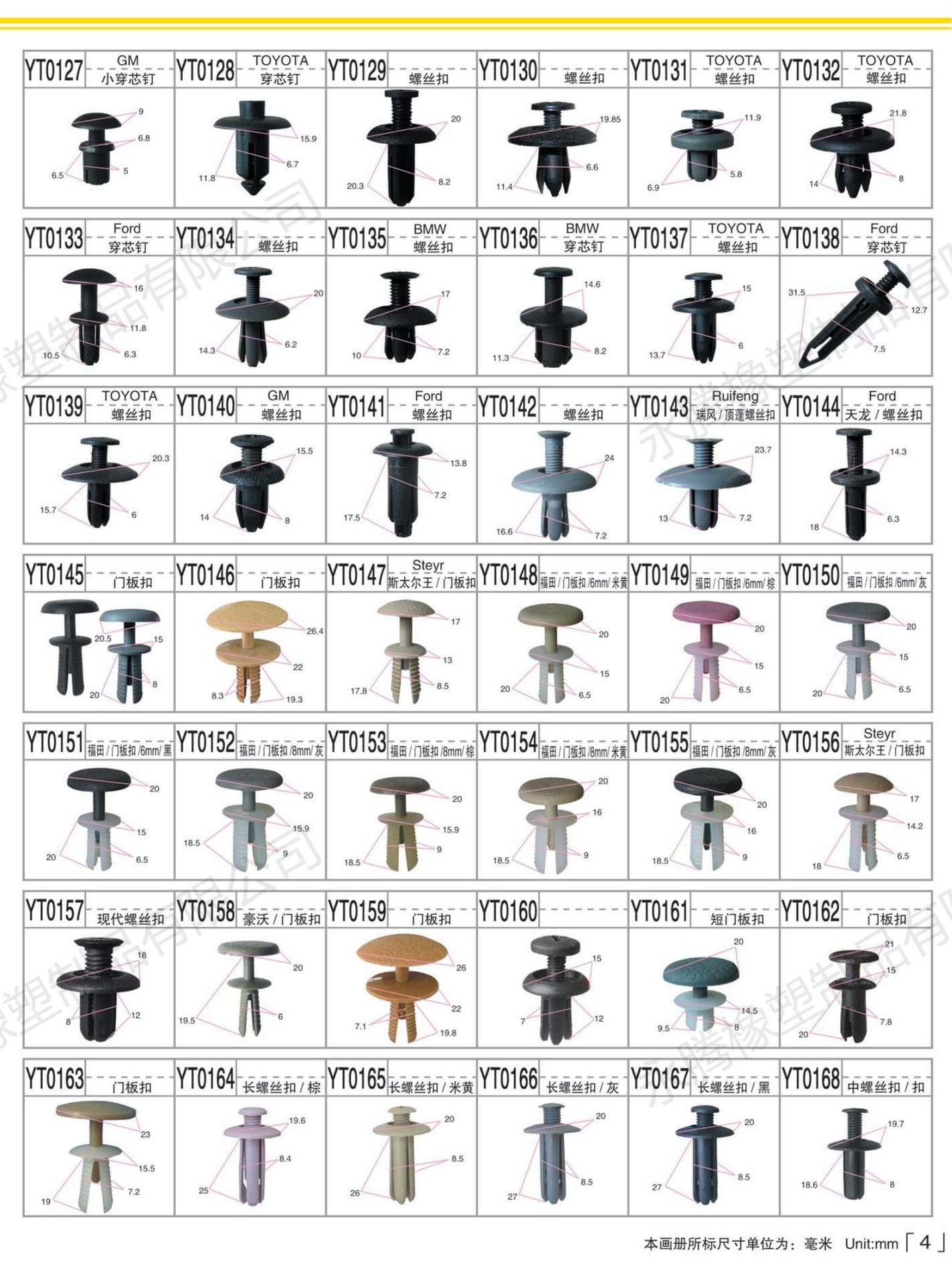南宫市永腾橡塑制品有限公司主营汽车塑料卡扣、汽车卡扣、塑料卡扣、汽车铆钉、倒刺卡扣、门板卡扣、密封条钉、膨胀螺丝扣、汽车顶棚卡扣、仪表盘固定卡扣、穿心钉卡扣、不锈钢喉箍、尼龙扎带、线束卡子、管束卡子、汽车锁扣、自攻丝座、汽车玻璃托、玻璃开窗器、汽车摇柄、机盖隔热棉卡扣、支撑杆卡扣、叶子板卡扣汽车门内饰固定卡扣、装饰板固定卡扣、家具安装卡扣、线束固定卡扣、树形倒刺卡扣、定位夹卡扣、尼龙扎带、推进式膨胀卡扣等多种塑料卡扣等。