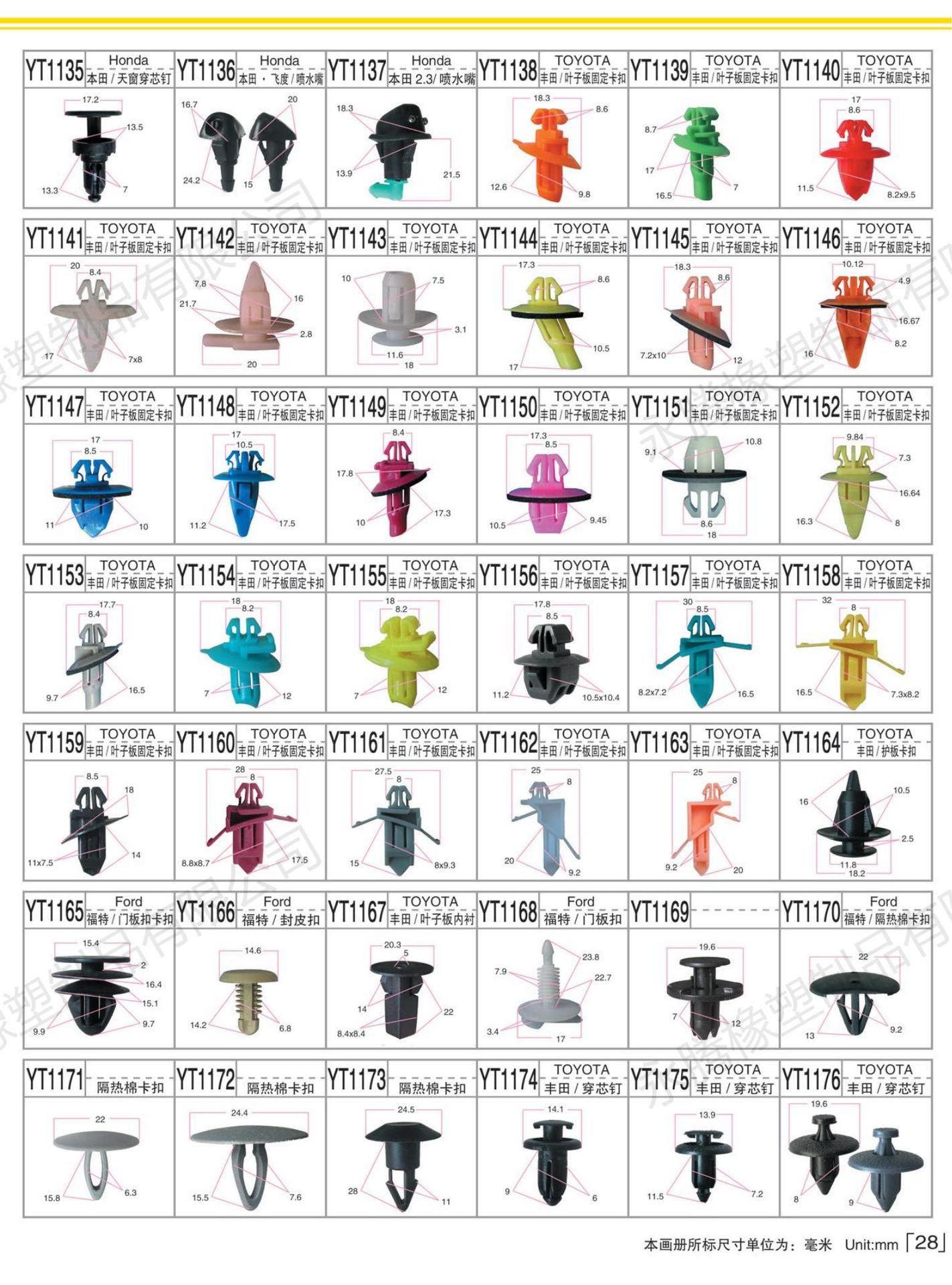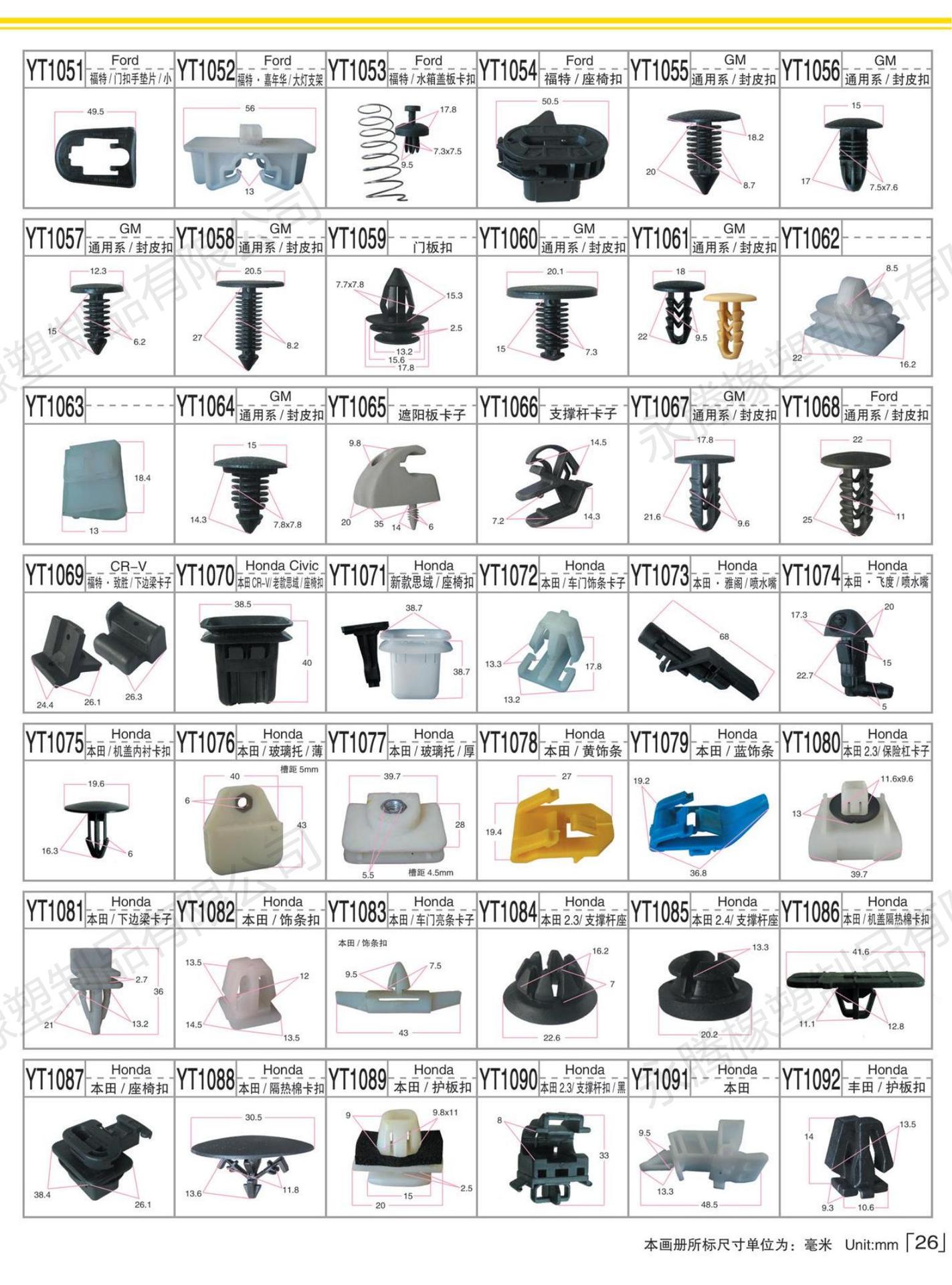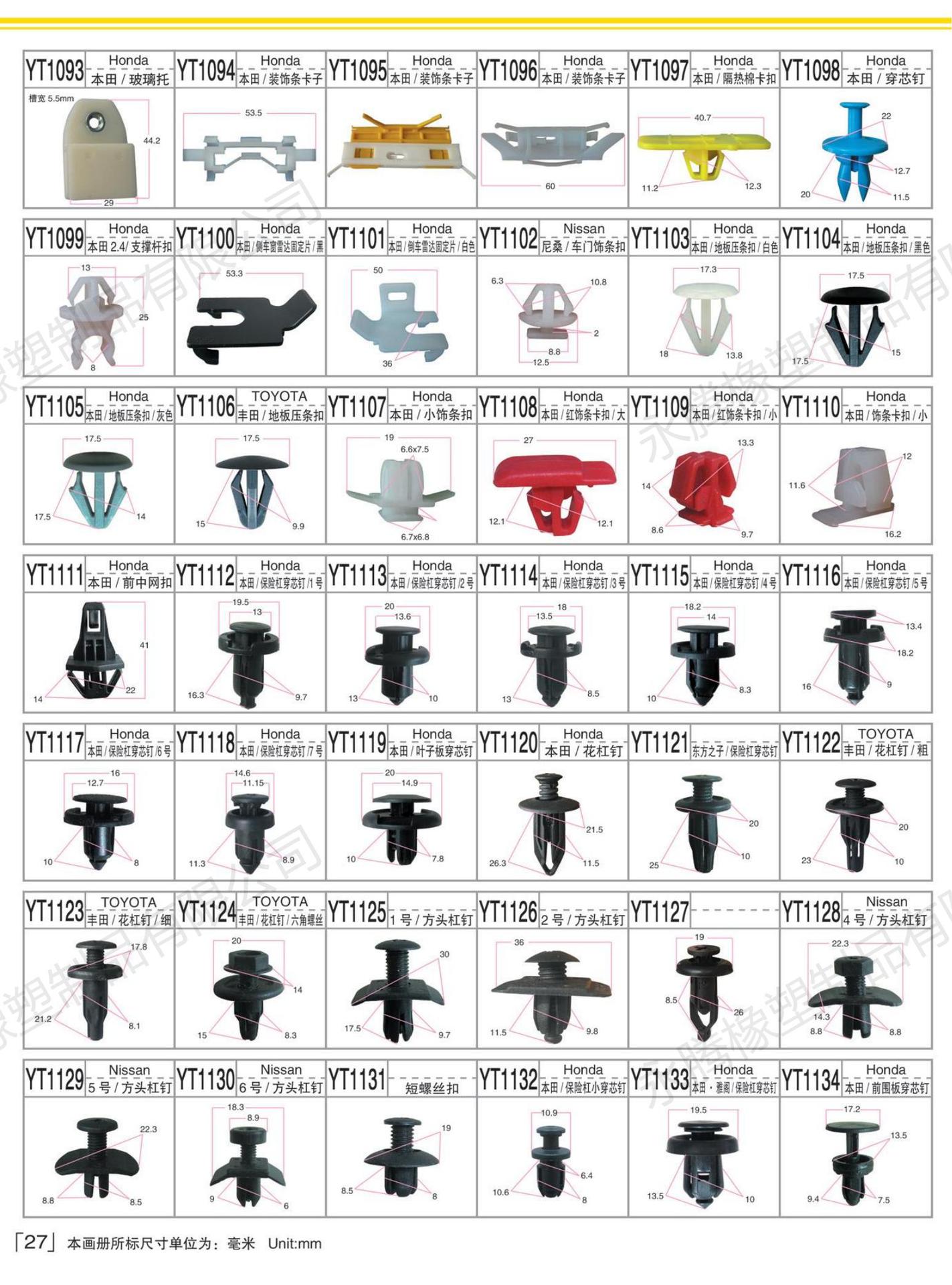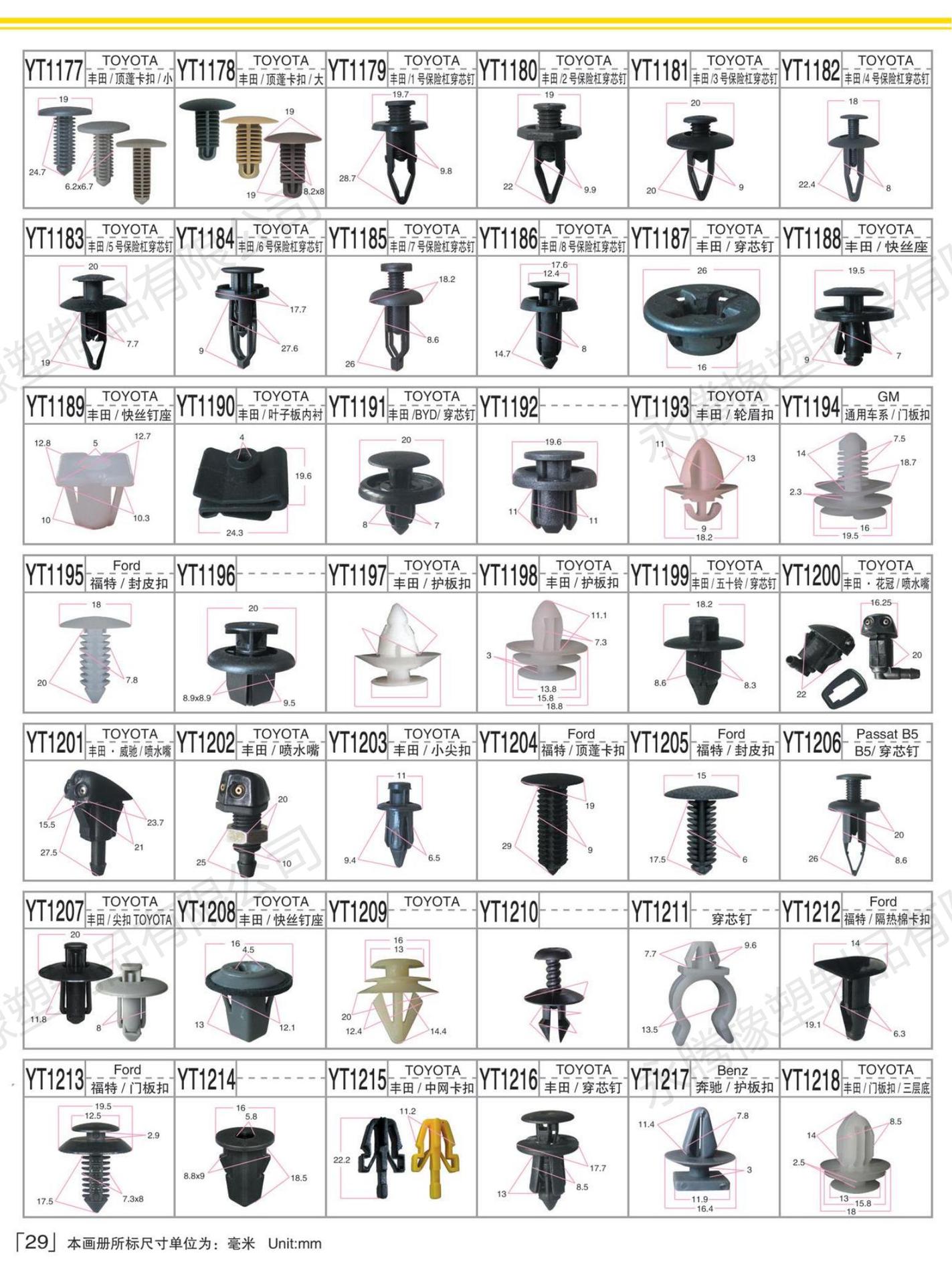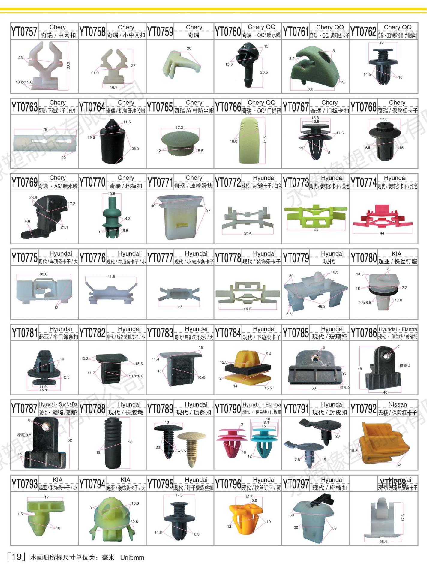南宫市永腾橡塑制品有限公司主营汽车塑料卡扣、汽车卡扣、塑料卡扣、汽车铆钉、倒刺卡扣、门板卡扣、密封条钉、膨胀螺丝扣、汽车顶棚卡扣、仪表盘固定卡扣、穿心钉卡扣、不锈钢喉箍、尼龙扎带、线束卡子、管束卡子、汽车锁扣、自攻丝座、汽车玻璃托、玻璃开窗器、汽车摇柄、机盖隔热棉卡扣、支撑杆卡扣、叶子板卡扣汽车门内饰固定卡扣、装饰板固定卡扣、家具安装卡扣、线束固定卡扣、树形倒刺卡扣、定位夹卡扣、尼龙扎带、推进式膨胀卡扣等多种塑料卡扣等。