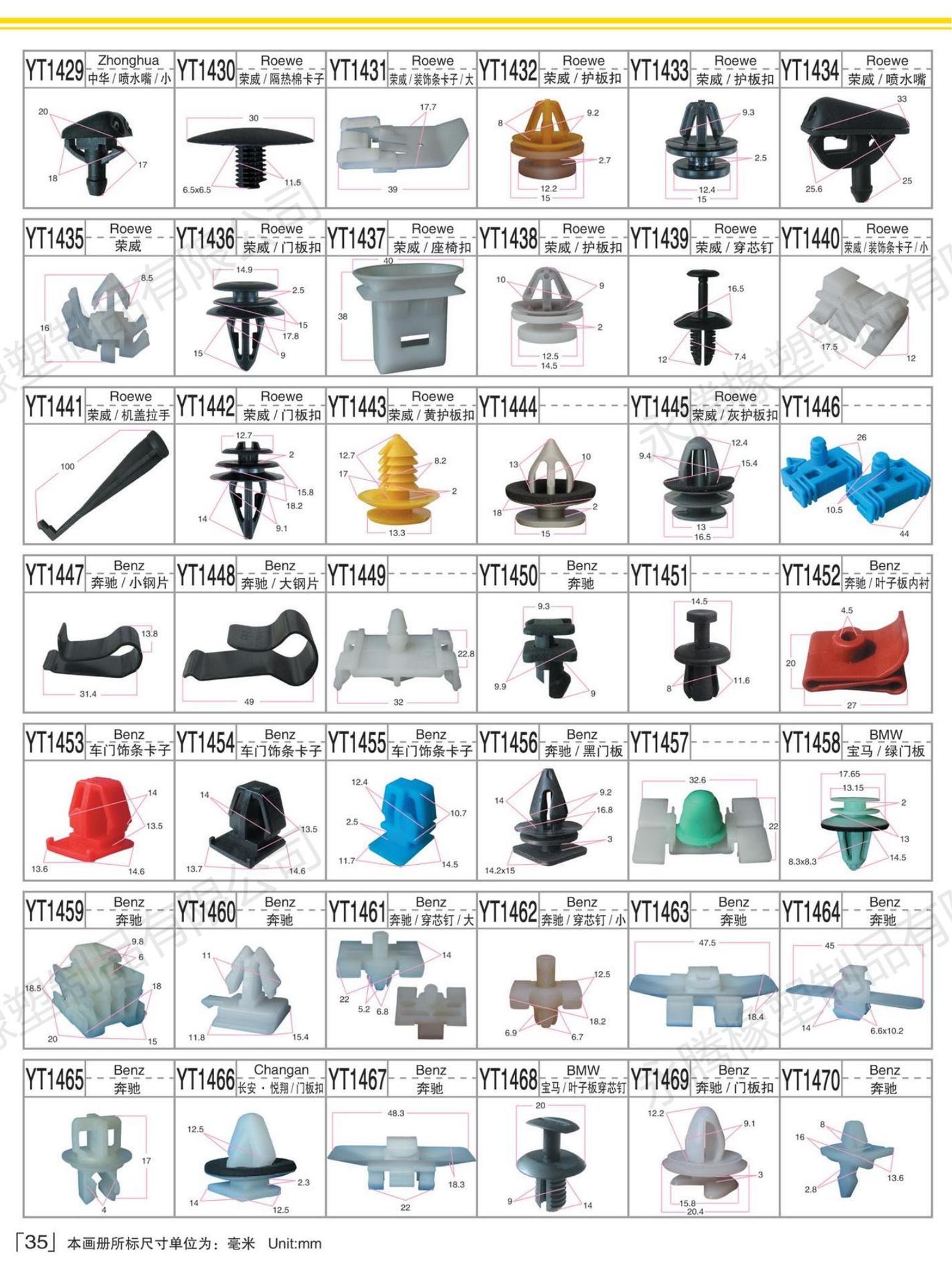 塑料卡扣在汽车上有广泛的应用。再小的产品在汽车上,就是汽车配件,必须接受严酷的汽车配件性能检测,因而永腾公司拥有完整、科学的质量管理体系。拥有老化箱、粘度计等部分化学检测设备及与相关院校有合作关系,对客户提供汽车卡扣的材料可进行化学分析,以便更好地了解汽车卡扣材料的性能。