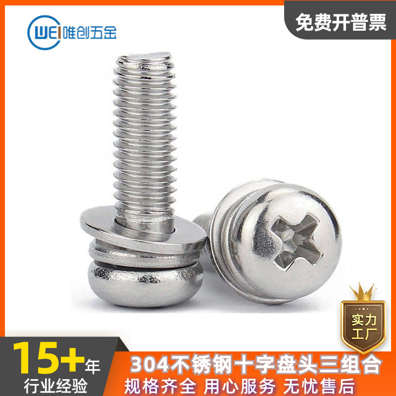 Оптовая Продажа с фабрики 304 из нержавеющей стали с поперечной головкой три комбинированных винта крест круглая головка плоская пружинная накладка комбинация Болт