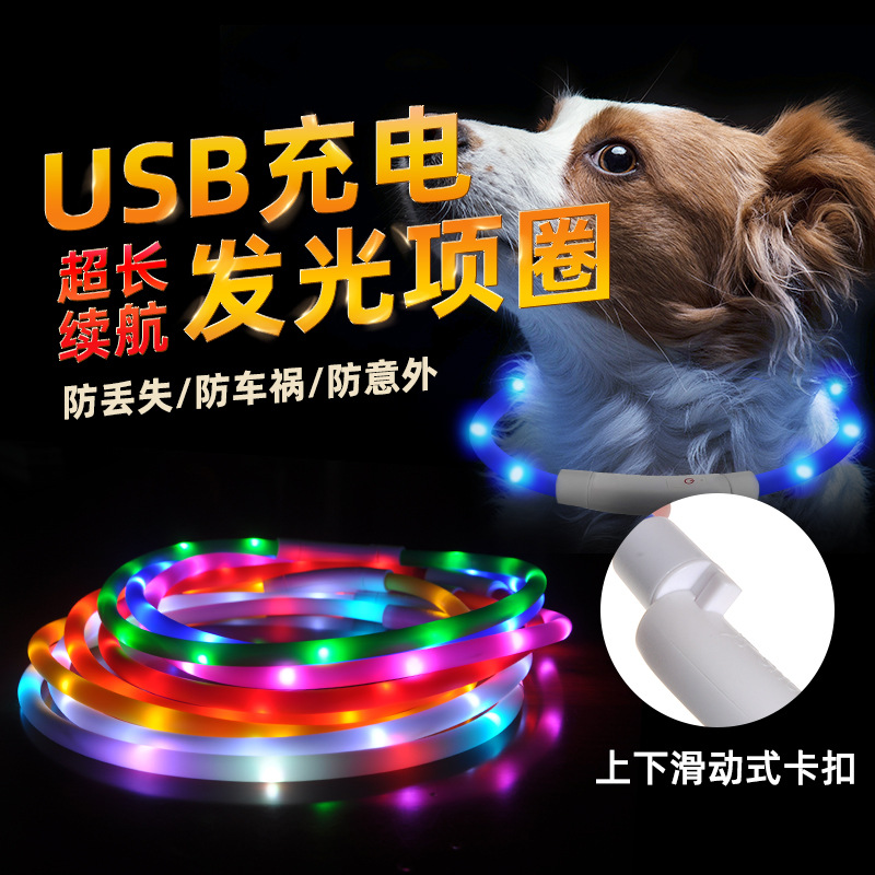 新款卡扣硅胶项圈 LED宠物发光项圈 可裁剪硅胶材质狗狗脖圈 直供