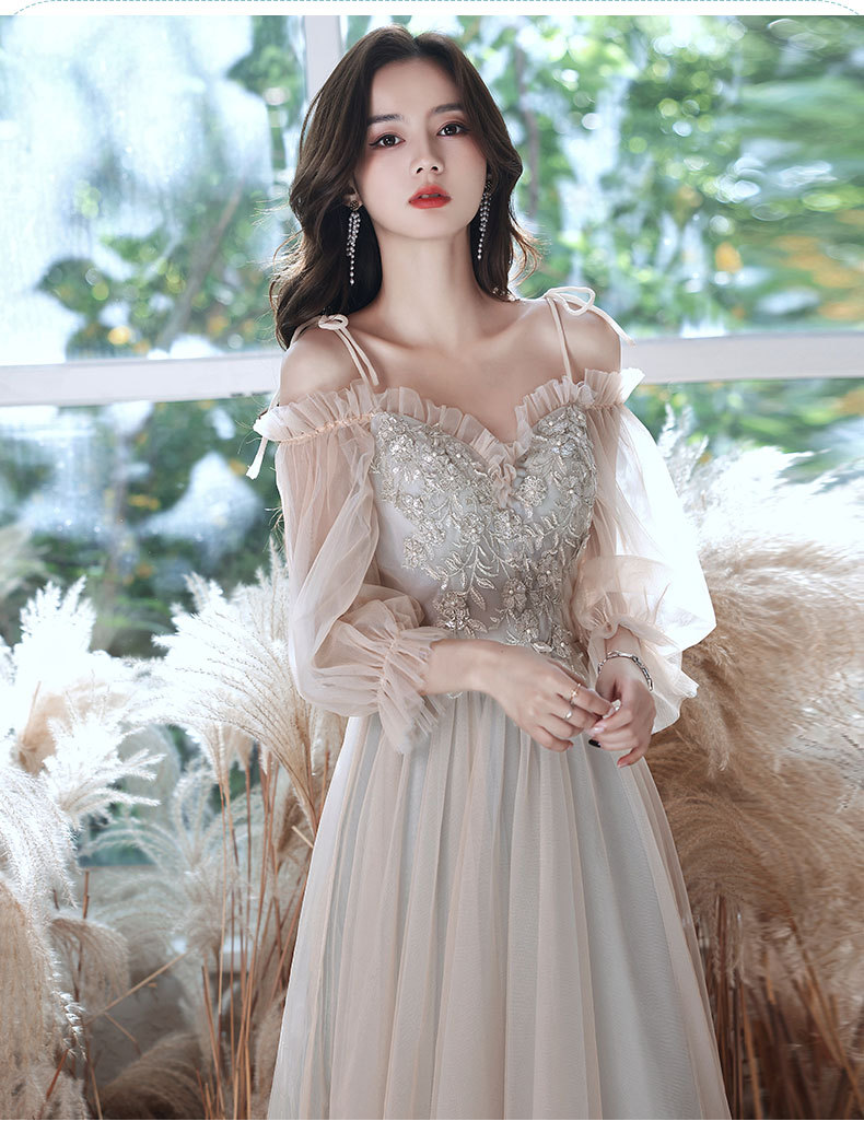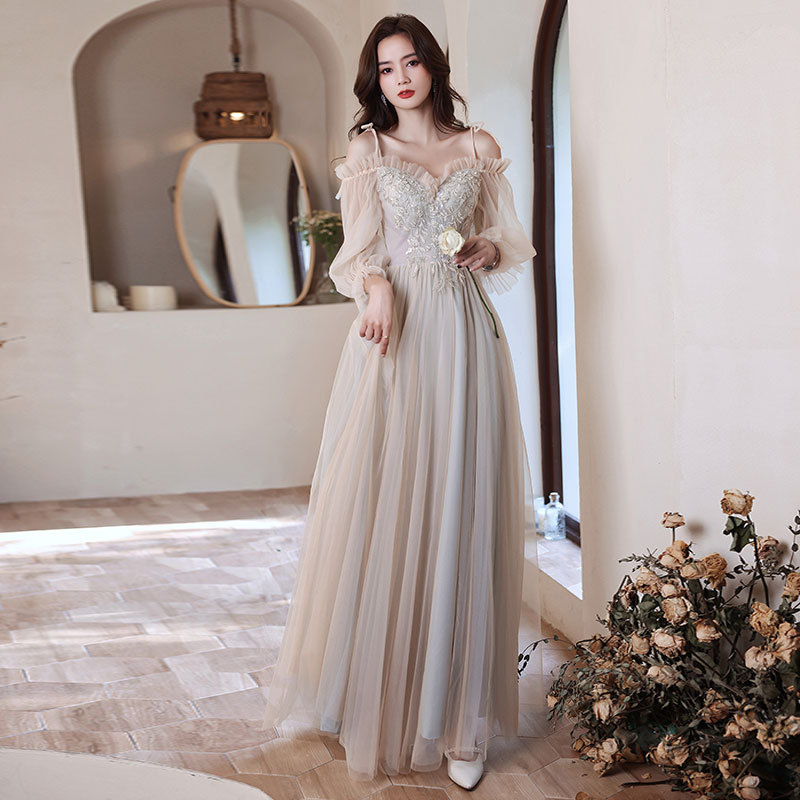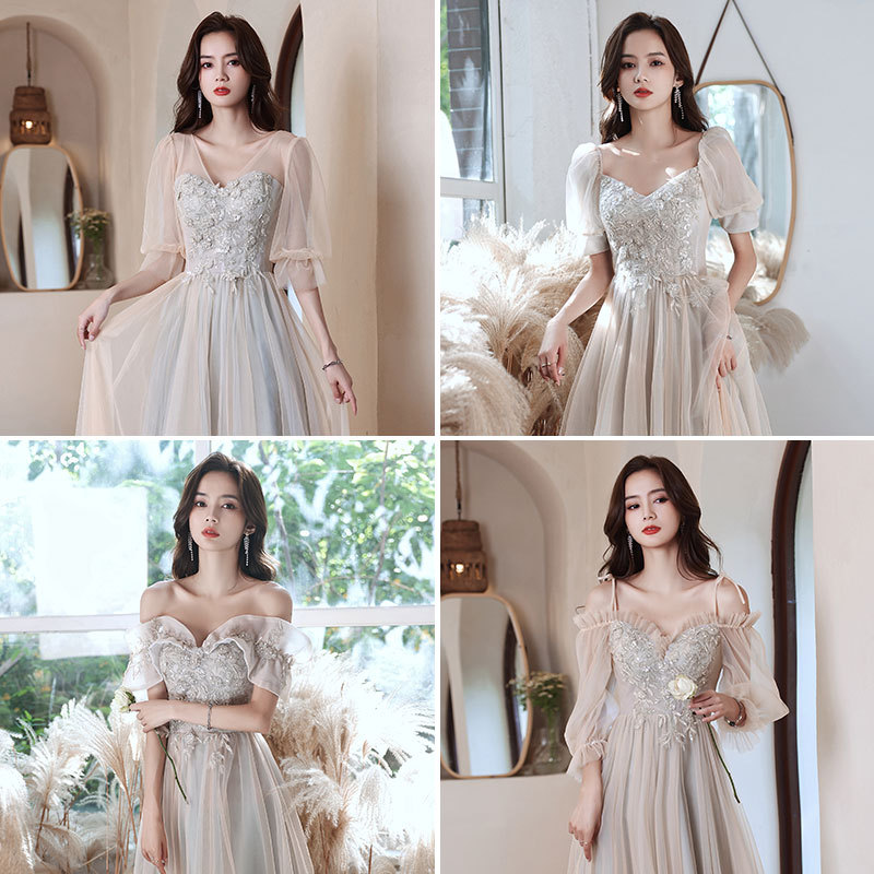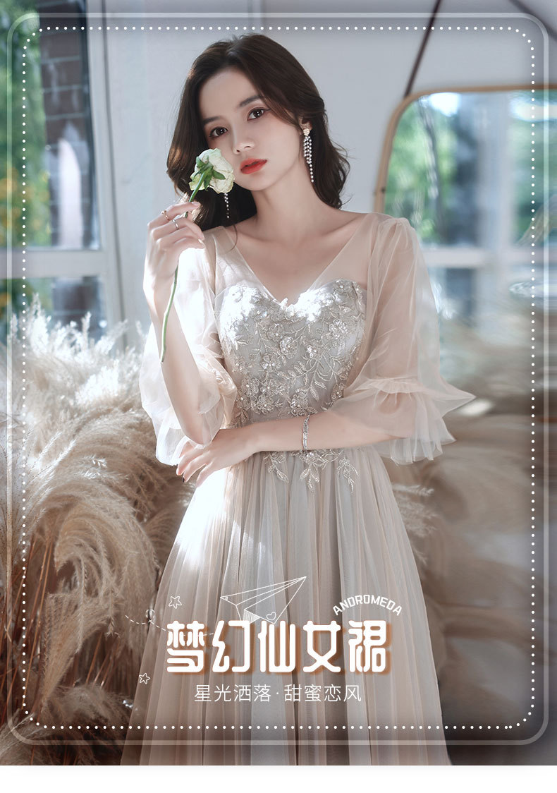 Серый костюм для подружек невесты 2024 новые сказочные девушки свадебные тонкие длинные платья летние волосы