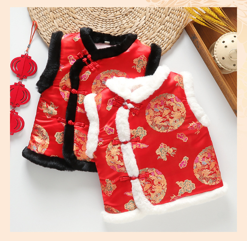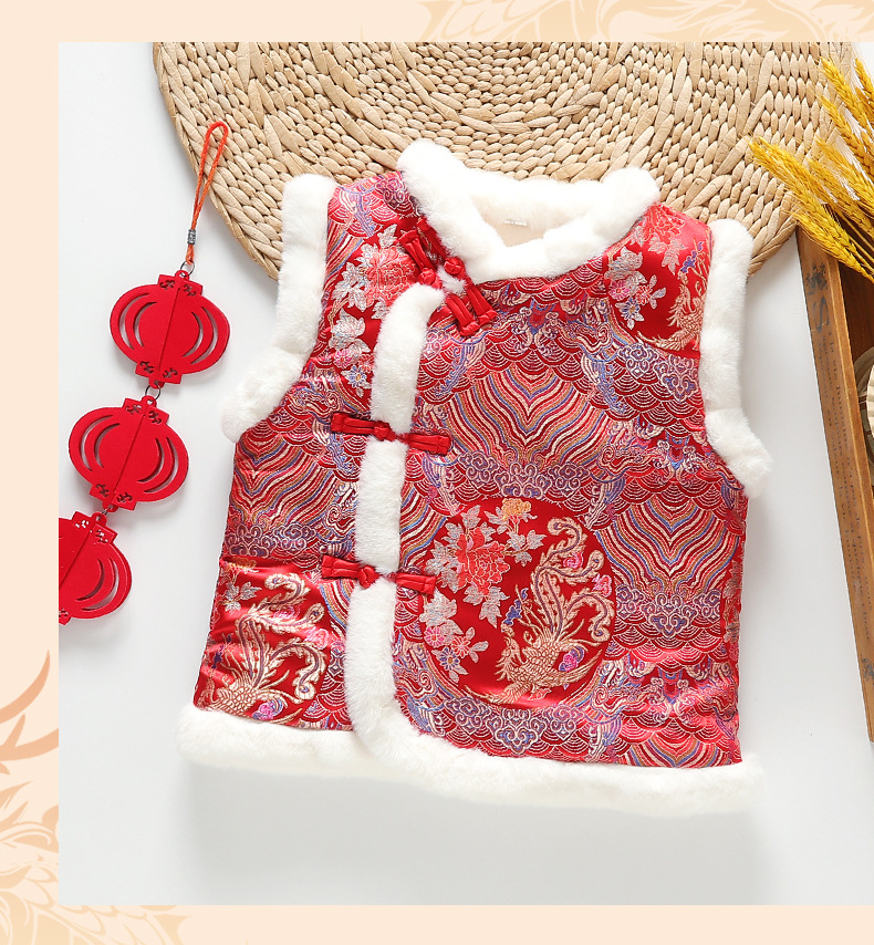 Ежегодная одежда в китайском стиле, детский жилет для мальчиков и девочек, мягкий жилет на флисовой подкладке, праздничный новогодний наряд, костюм Тан, жилет, производители оптом