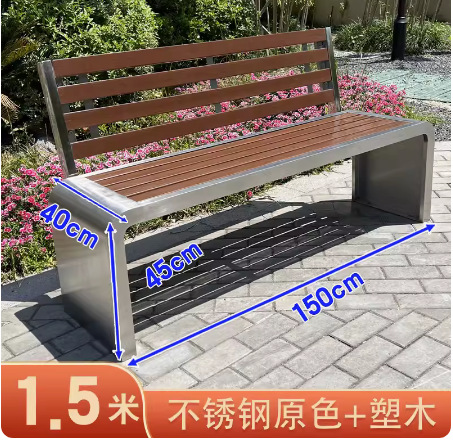 Парковый стул из нержавеющей стали Уличная скамья Сиденье для отдыха Железная рама Длинный пандус Стул Двор Квадратная скамья для отдыха под открытым небом