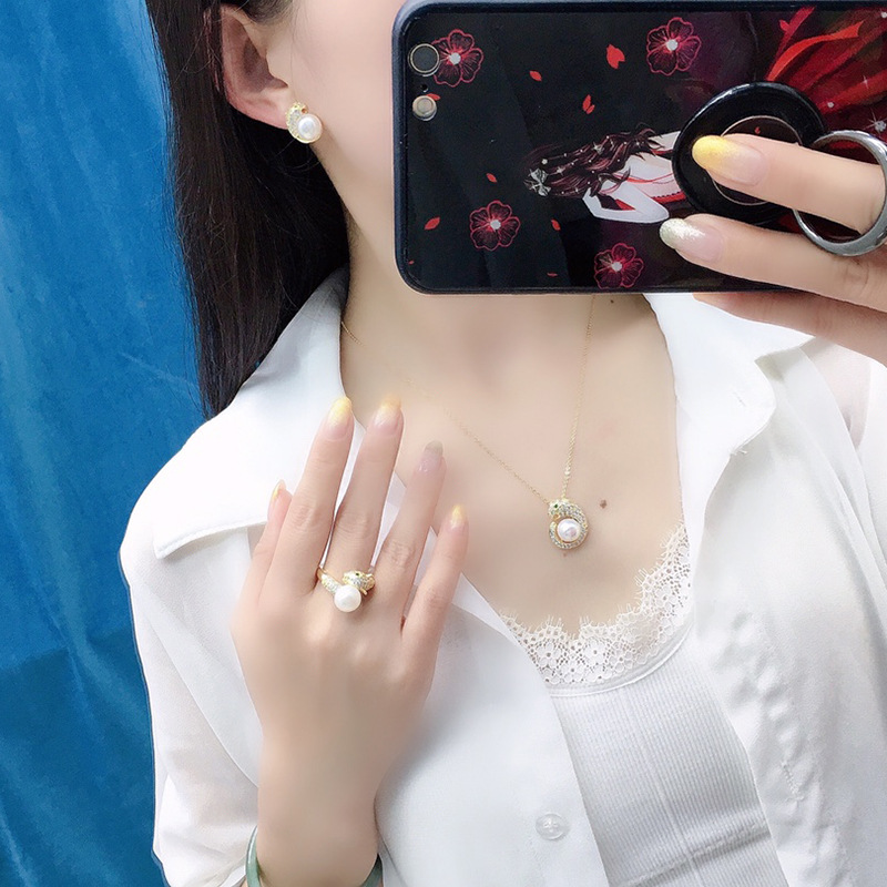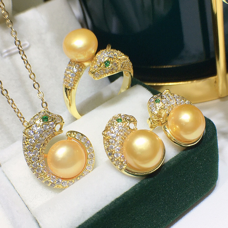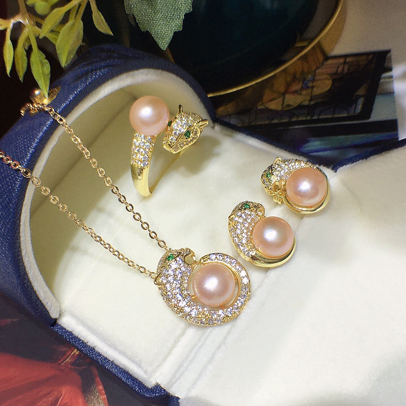 Женский летний костюм с инкрустацией пресноводным жемчугом, ювелирные изделия в Корейском стиле, комплект из трех предметов с головой леопарда Lucky, модный простой Универсальный 162
