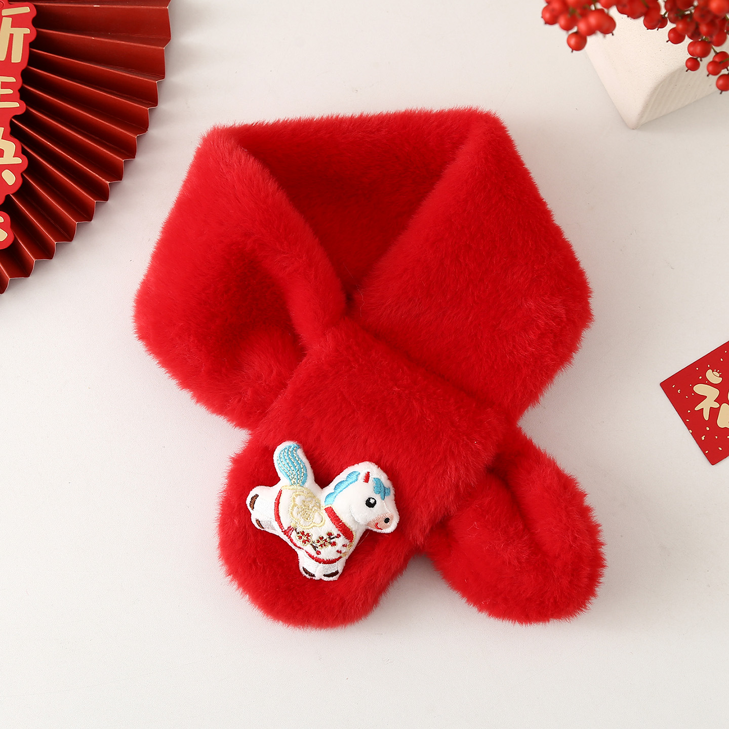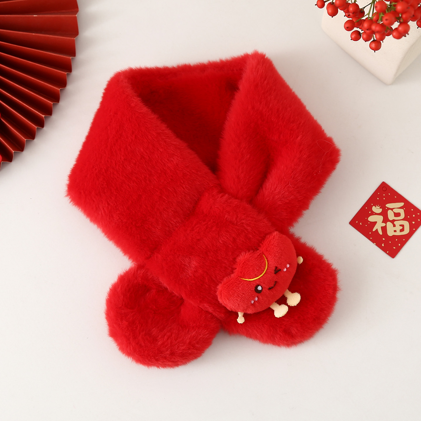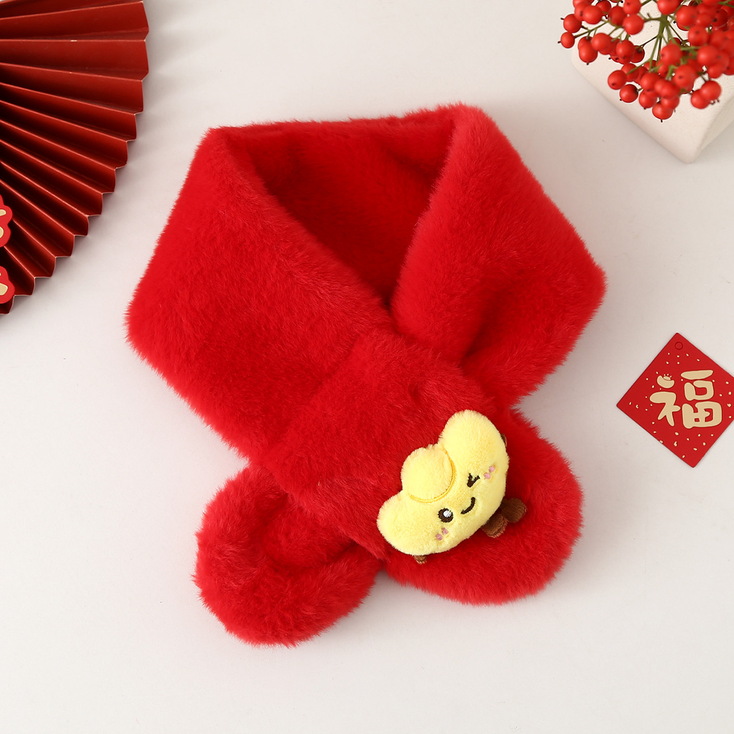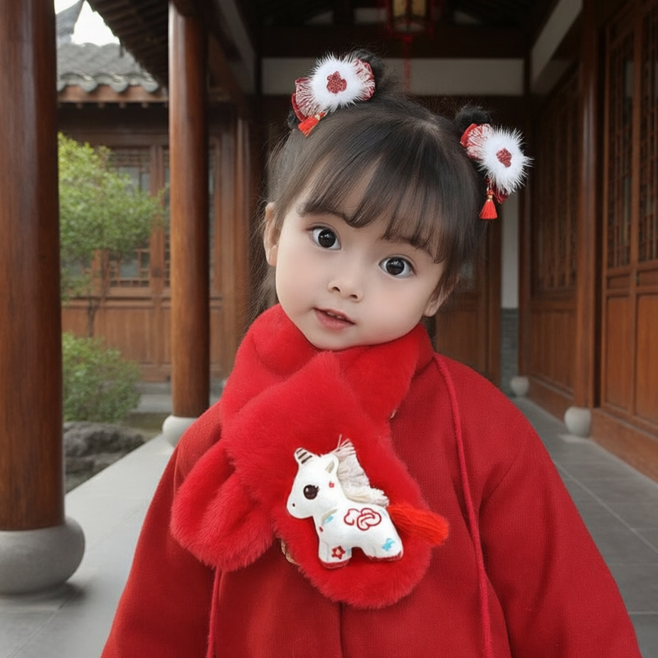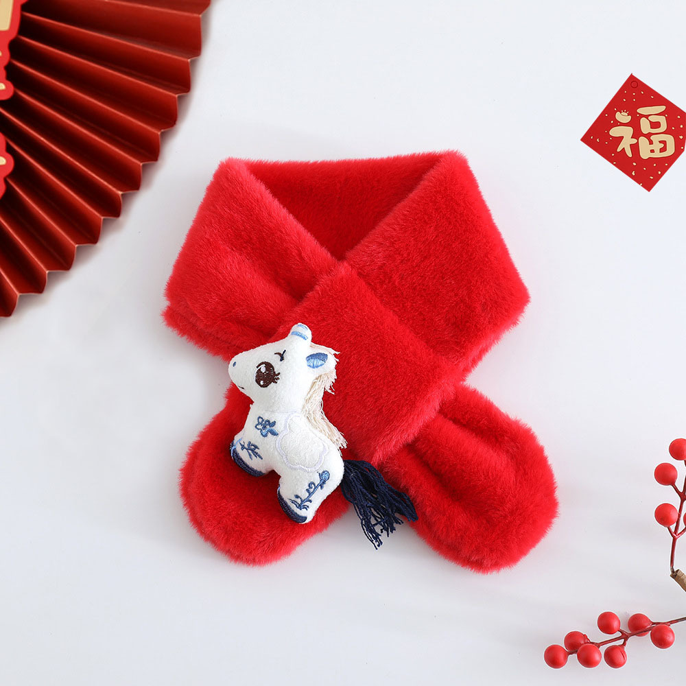 Детский шарф на осень-зиму 2025: плюшевый, утолщенный, из искусственного кроличьего меха, для малышей, в корейском стиле, с мультяшным принтом, теплый, для родителей и детей