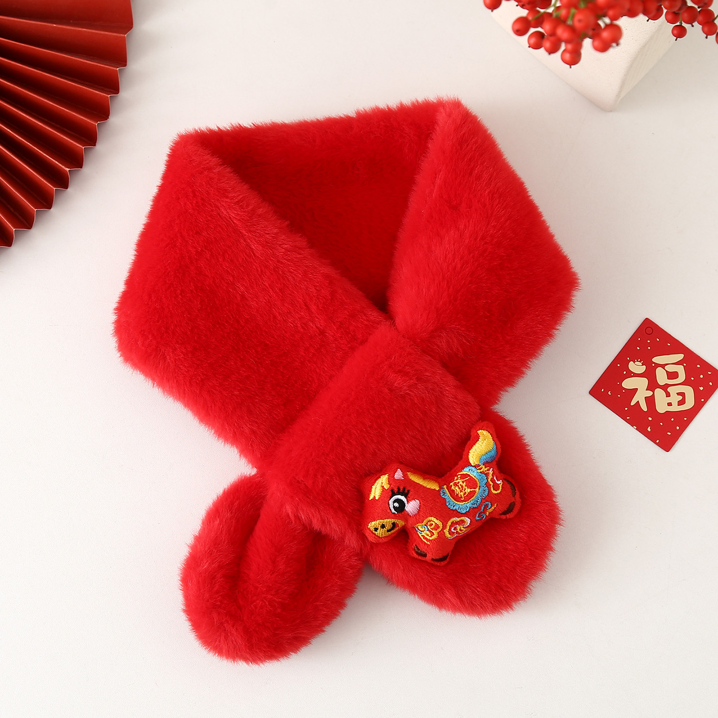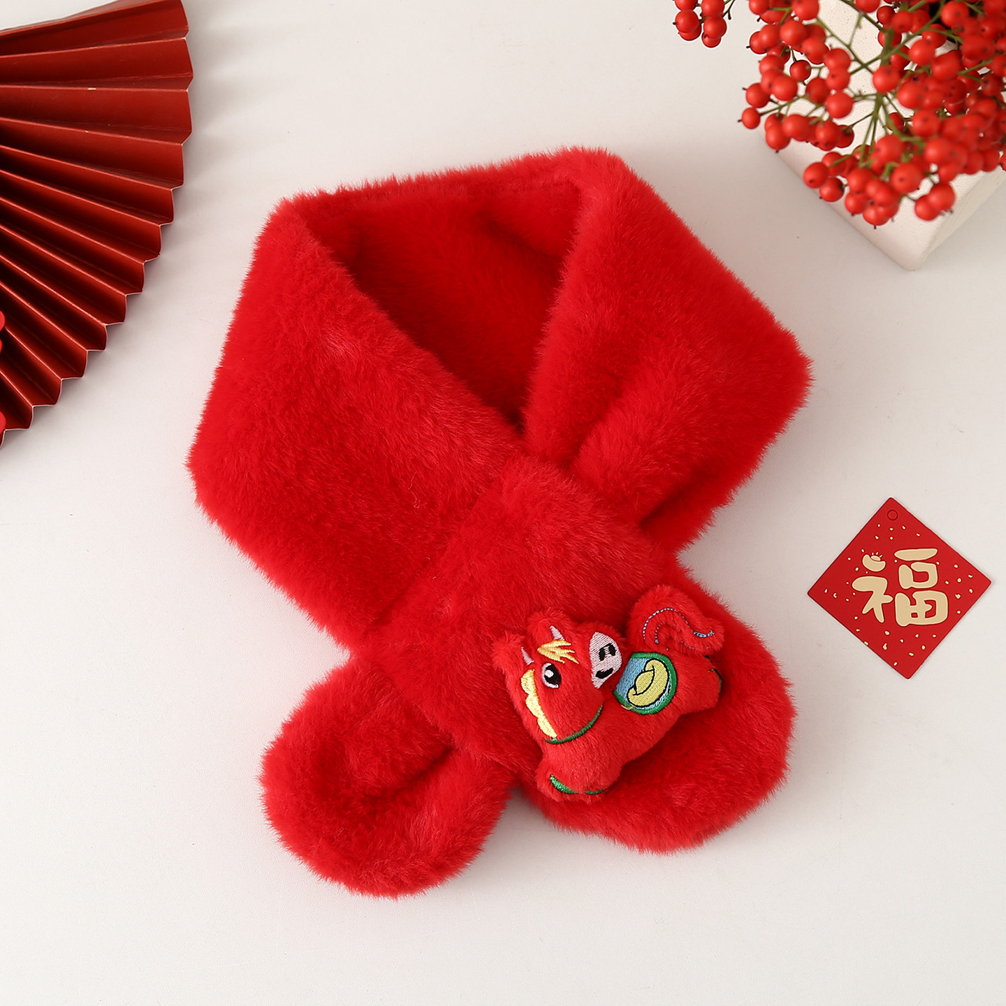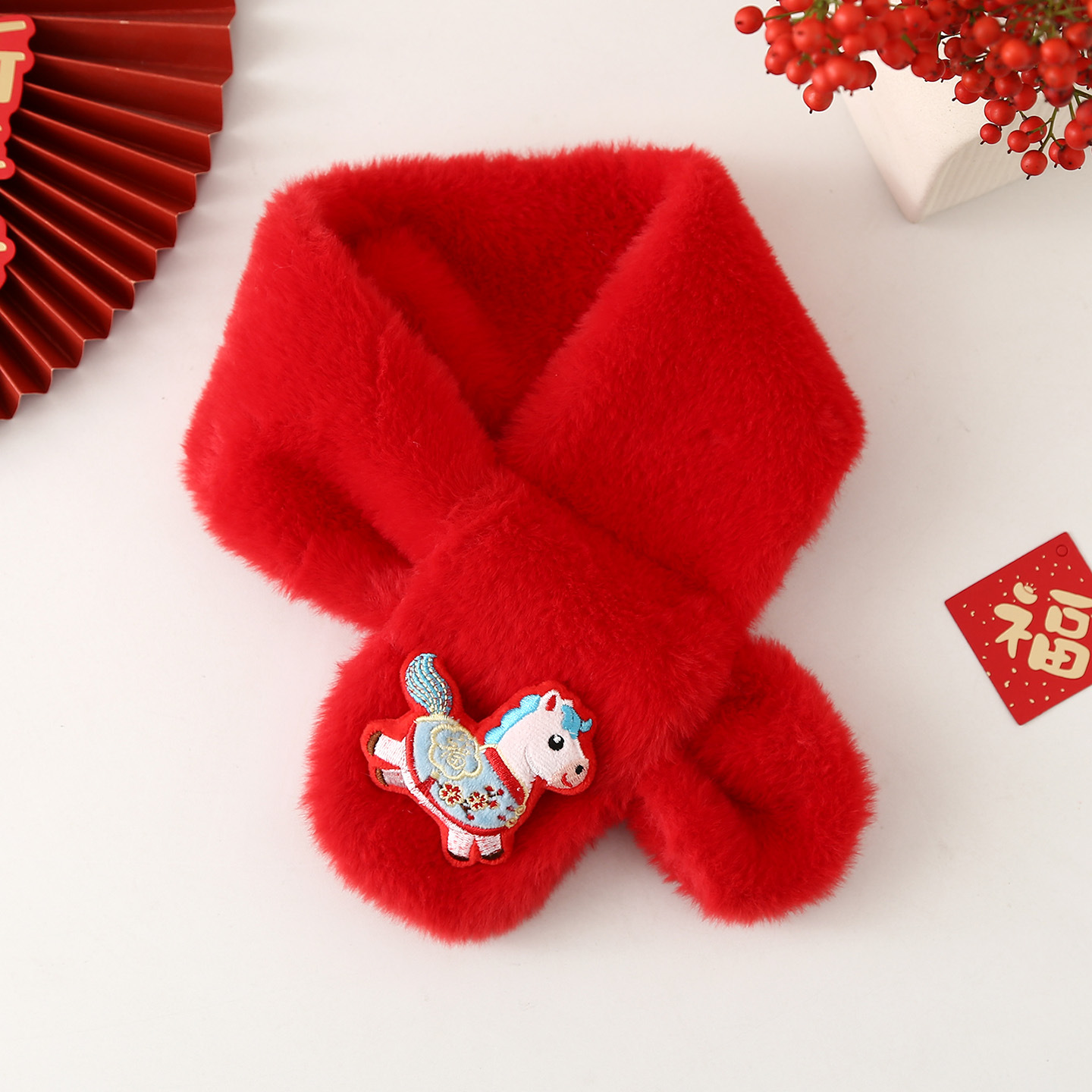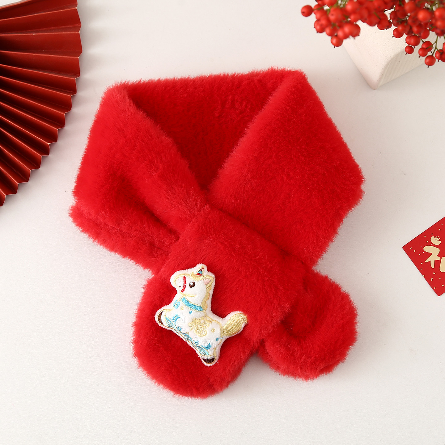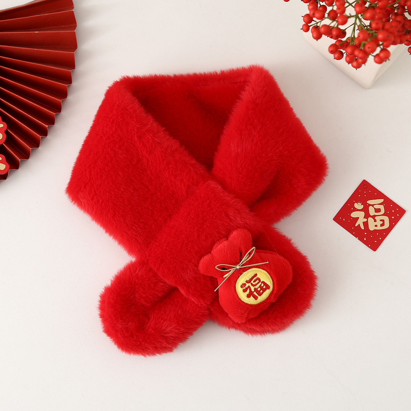 Детский шарф на осень-зиму 2025: плюшевый, утолщенный, из искусственного кроличьего меха, для малышей, в корейском стиле, с мультяшным принтом, теплый, для родителей и детей