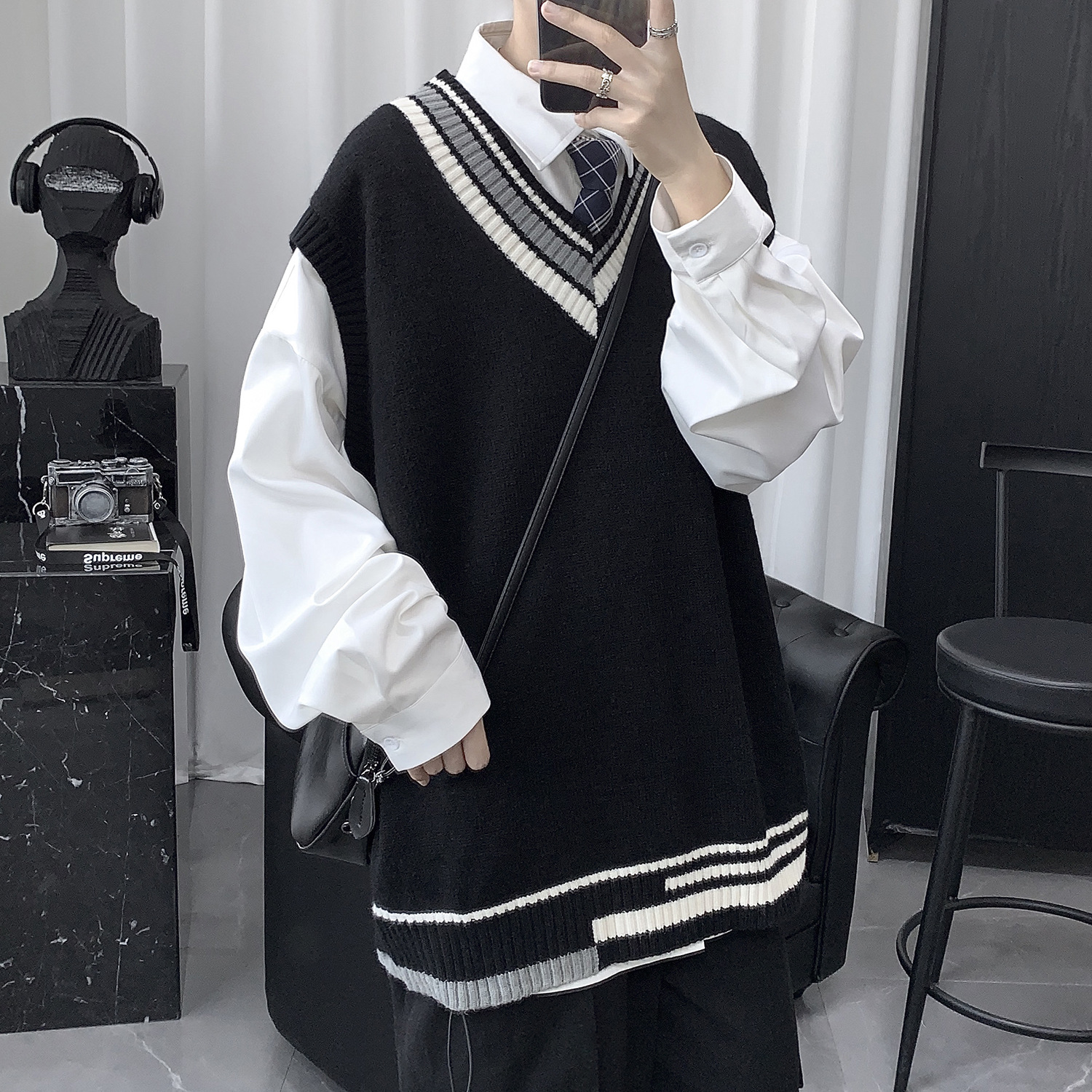 Колледж ветер пары литературно-художественное вязание без рукавов свитер жилет мужской шерстяной жилет мужской осенне-зимний тренд