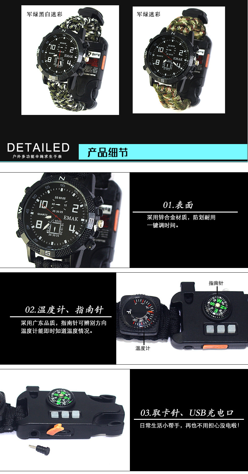 品名:AK17。一款可充电的多功能求生手链。