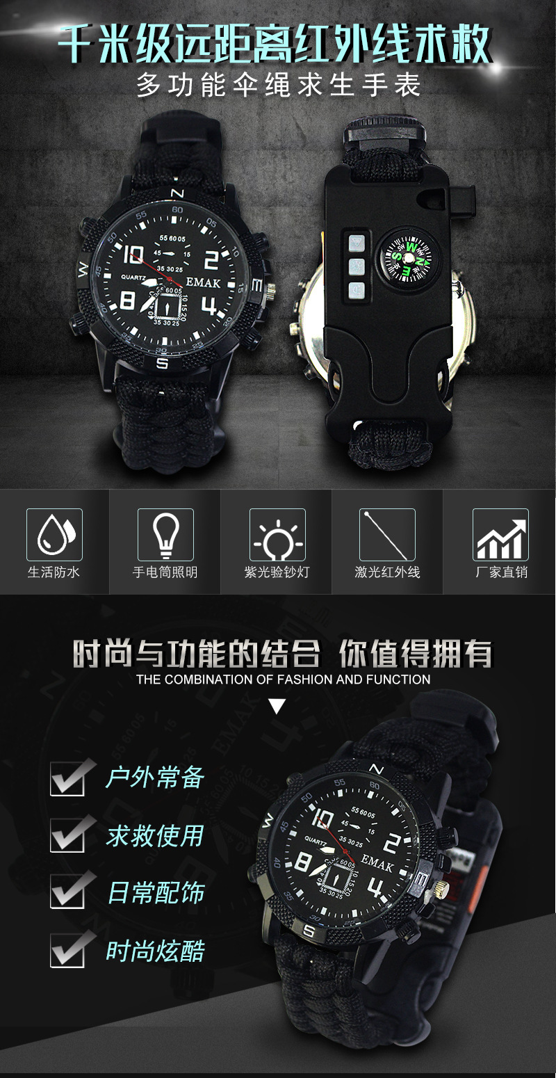 Спортивные часы на открытом воздухе, многофункциональные часы для спасения SOS с лазером, свисток для выживания, часы для альпинизма из паракорда ручной работы