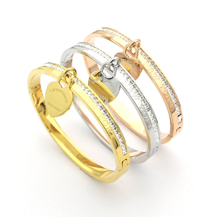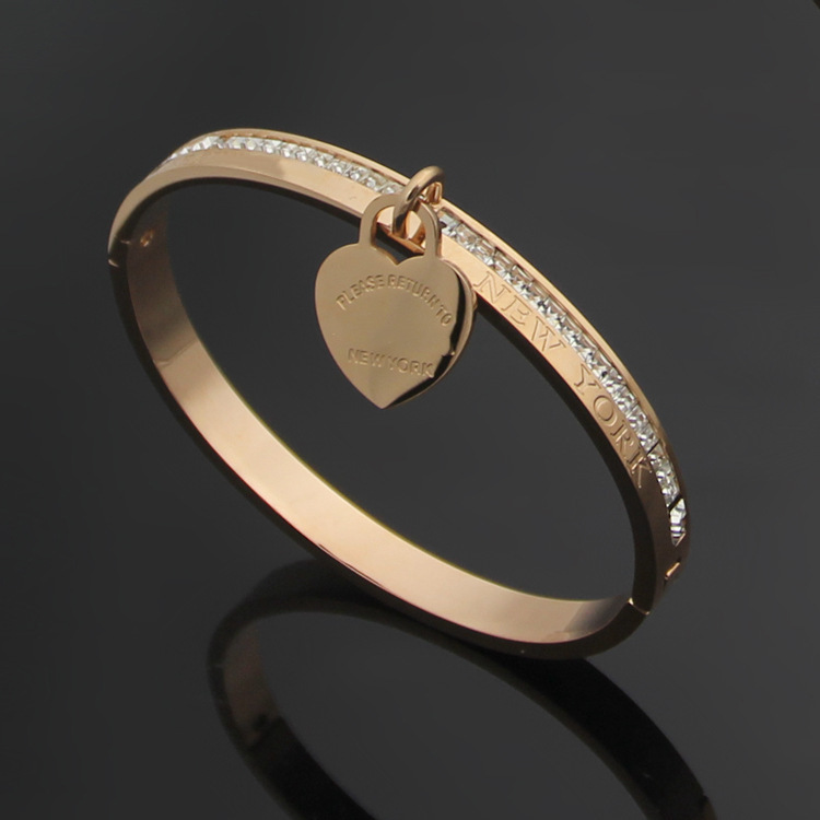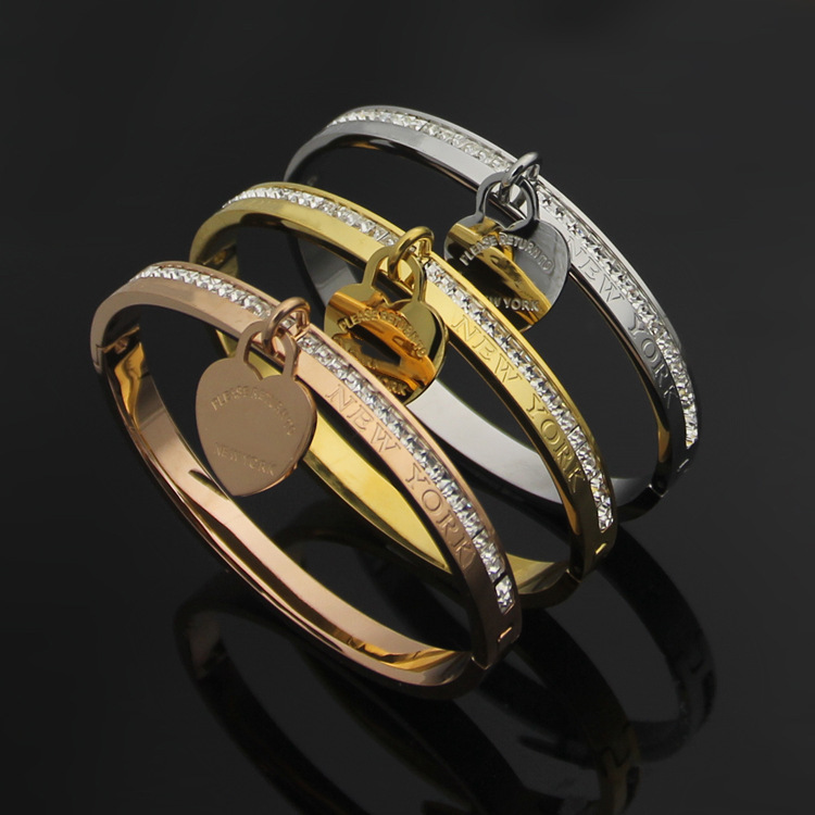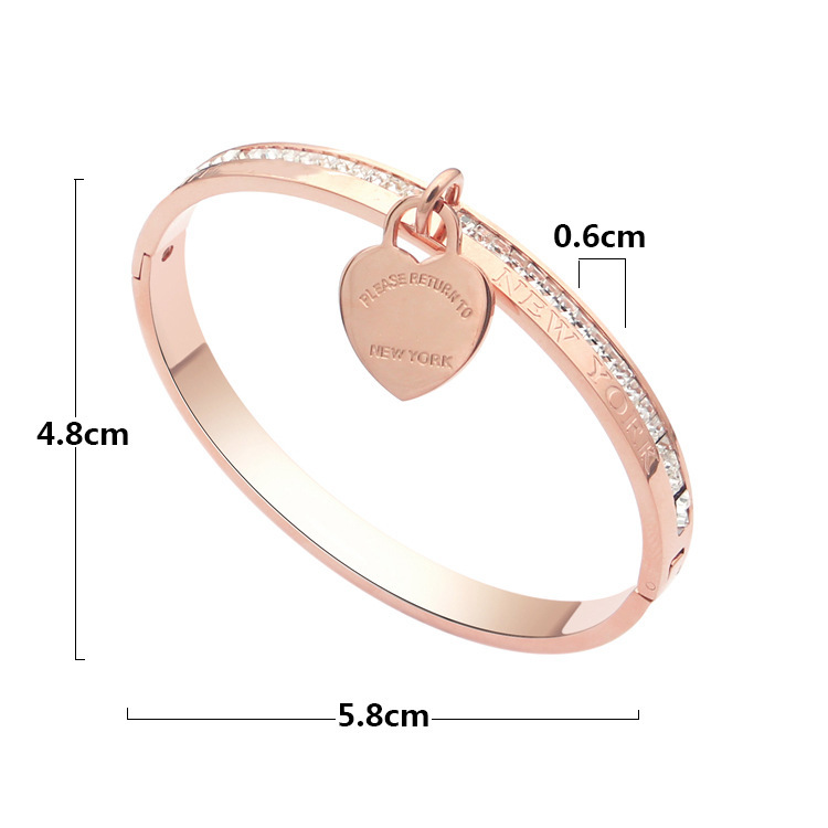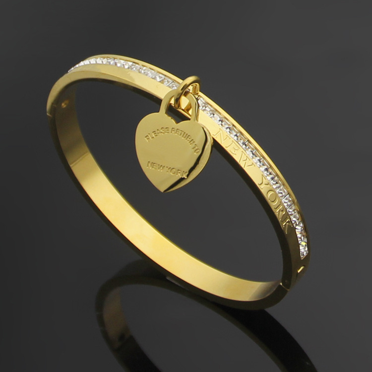 Заводская цена оптом популярный браслет с бриллиантами в форме буквы Т, одинарный ряд, браслет с одним персиковым сердцем, 18К золото, корейский стиль, женский браслет