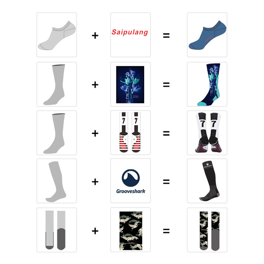 Все виды носков логотип вышивка носки цифровая печать длинная трубка высокие резиновые хлопчатобумажные носки Завод прямых продаж
