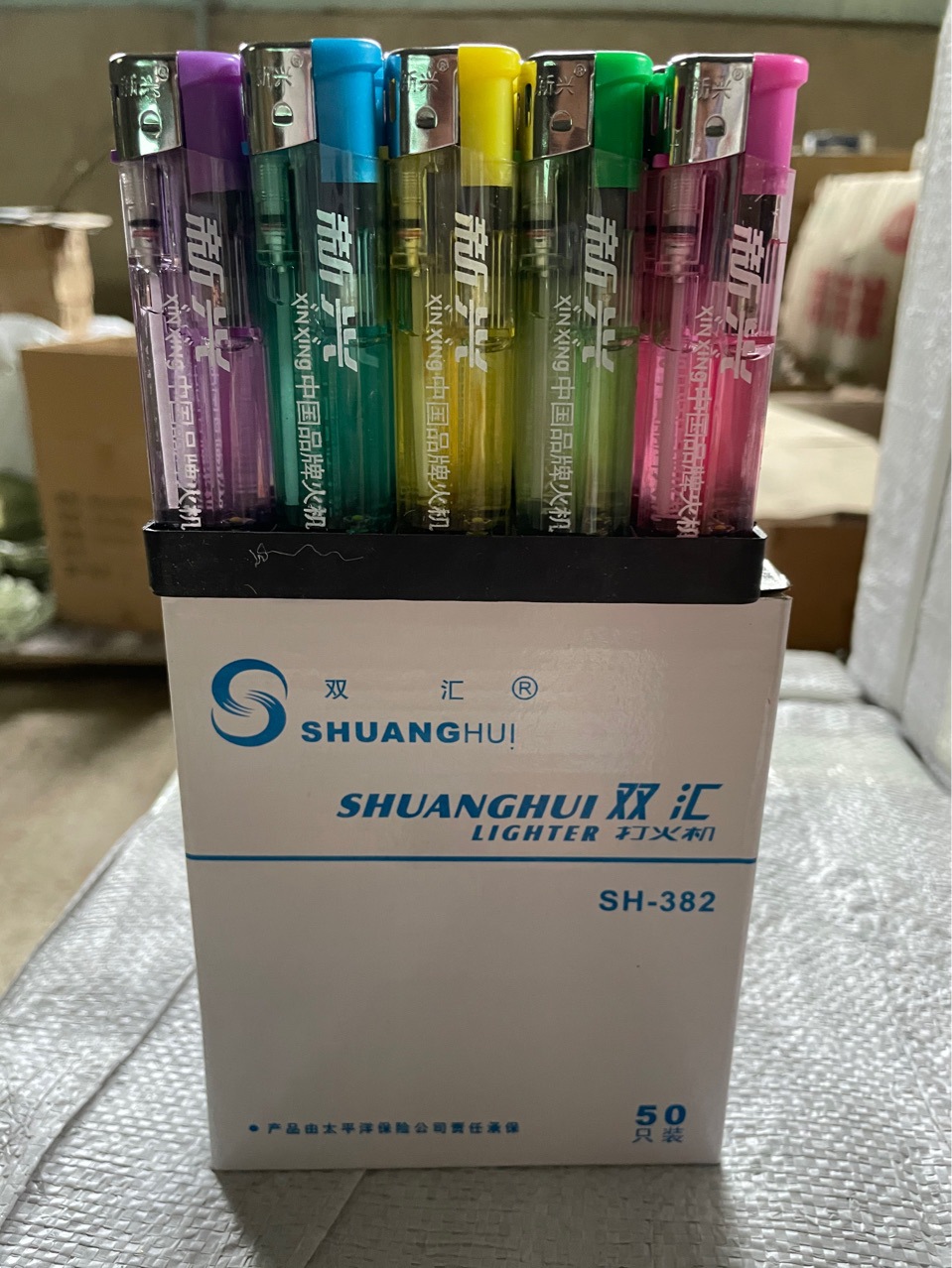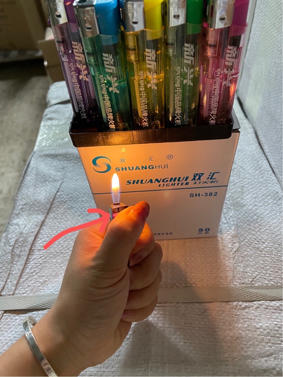 Прямые продажи с фабрики, утолщенный пластик Shuanghui 382, со встроенной стойкой и нижней зарядкой, зажигалка с открытым пламенем и высоким дном, подлинная гарантия