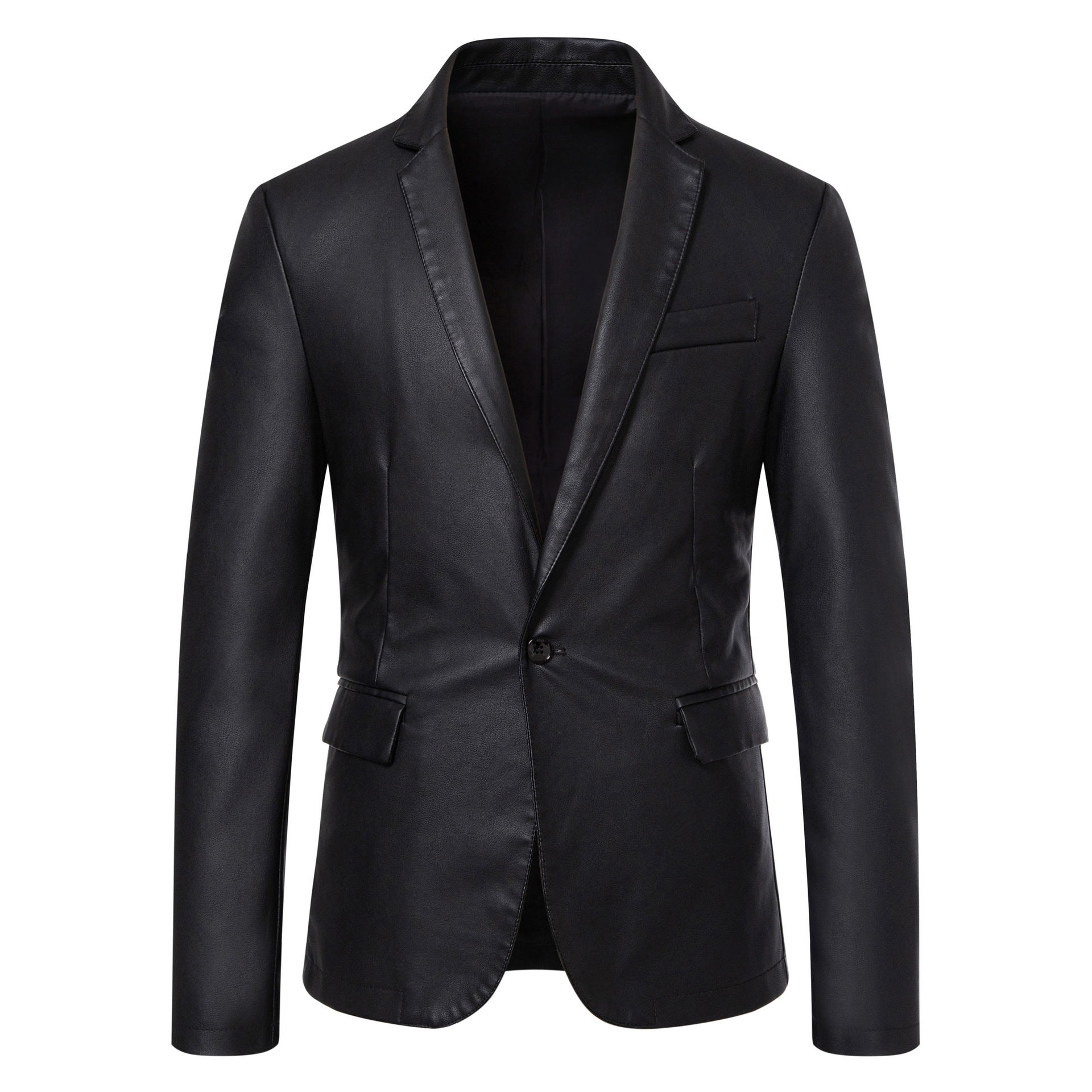 2025 новый модный стройный кожаный костюм Мужское кожаное пальто повседневное маленькое платье мужское корейское поп-куртка