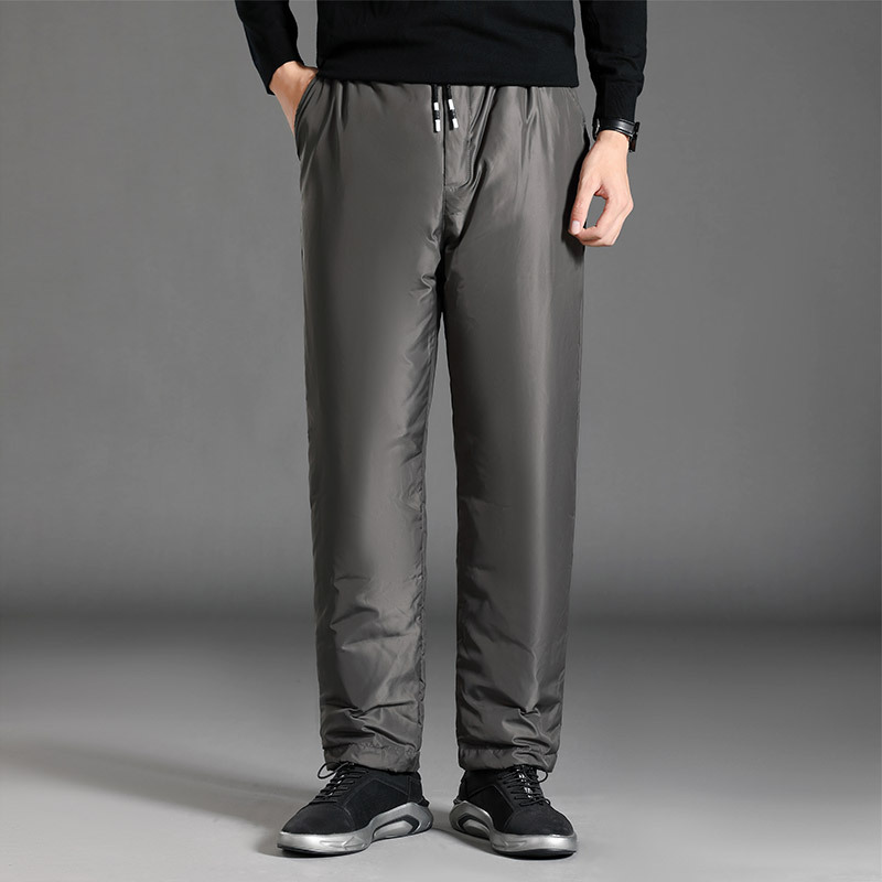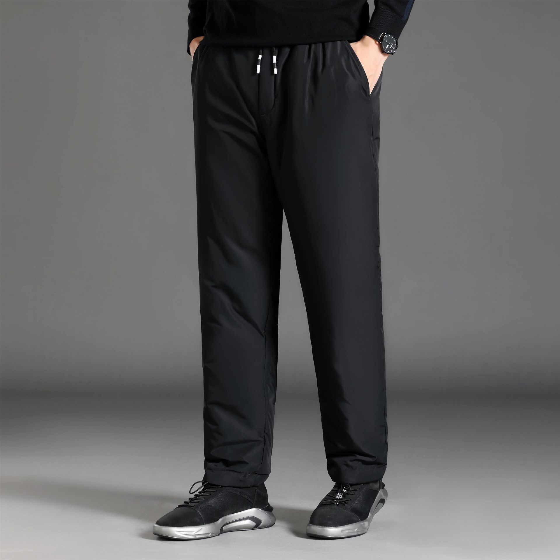 Зимние мужские белые утолщенные повседневные пуховые штаны для молодых и средних лет, теплые уличные мужские брюки для папы среднего и пожилого возраста, производитель одежды