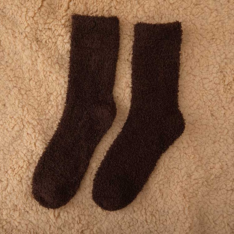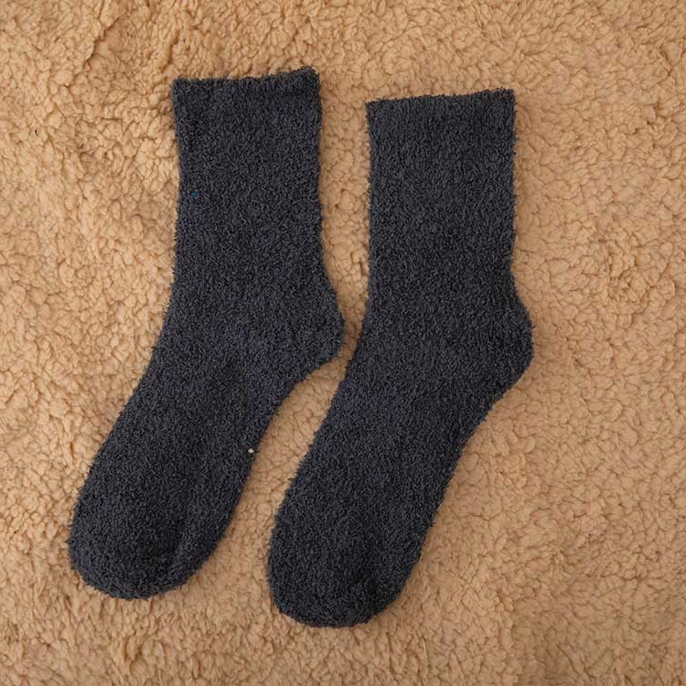 Носки мужские и женские осенне-зимние на флисовой подкладке утолщенные до середины икры бархатные носки до середины икры однотонные теплые коралловые бархатные носки Спальные Носки в пол