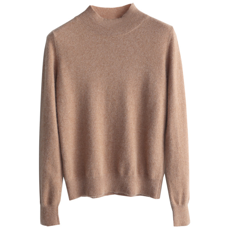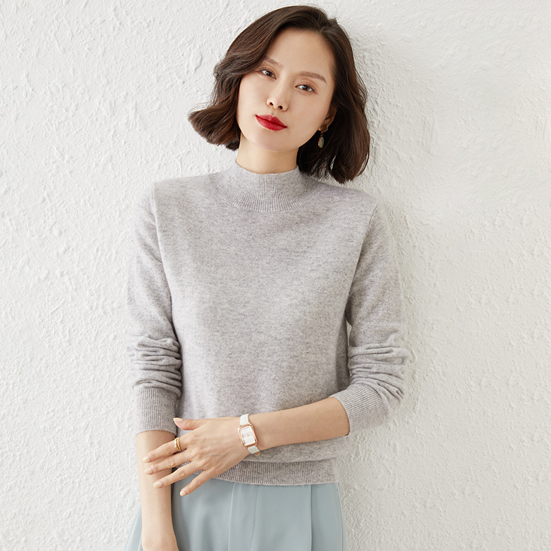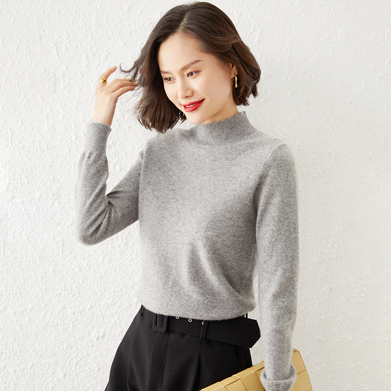 Оптовая продажа: Новинка осени-зимы 2025 – женский свитер-базовая кофта из шерсти с воротником-стойкой, однотонный трикотаж, большие размеры