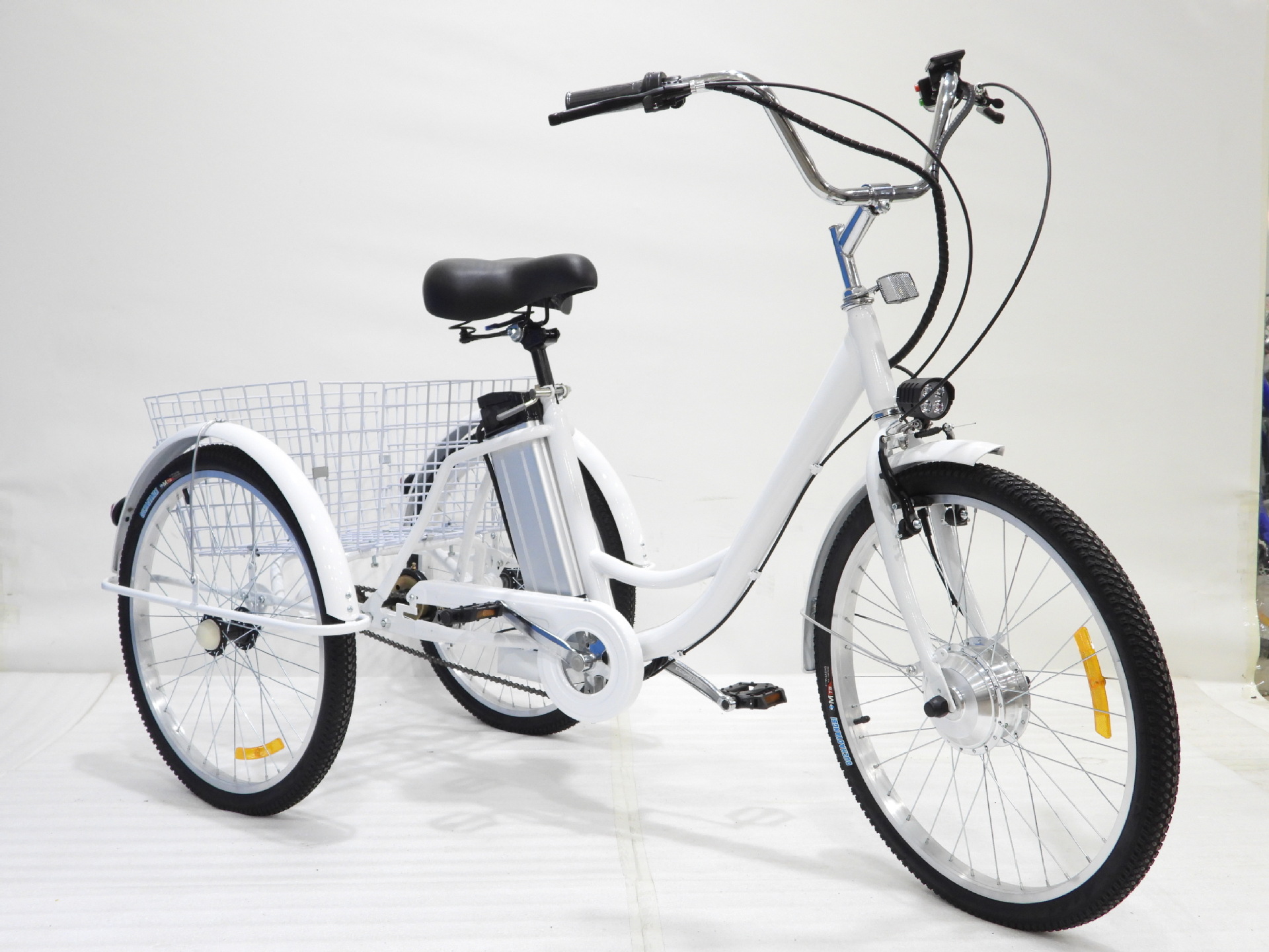 В наличии 24-дюймовый пожилой трехколесный велосипед с литиевой педалью и электроприводом 36V250W
