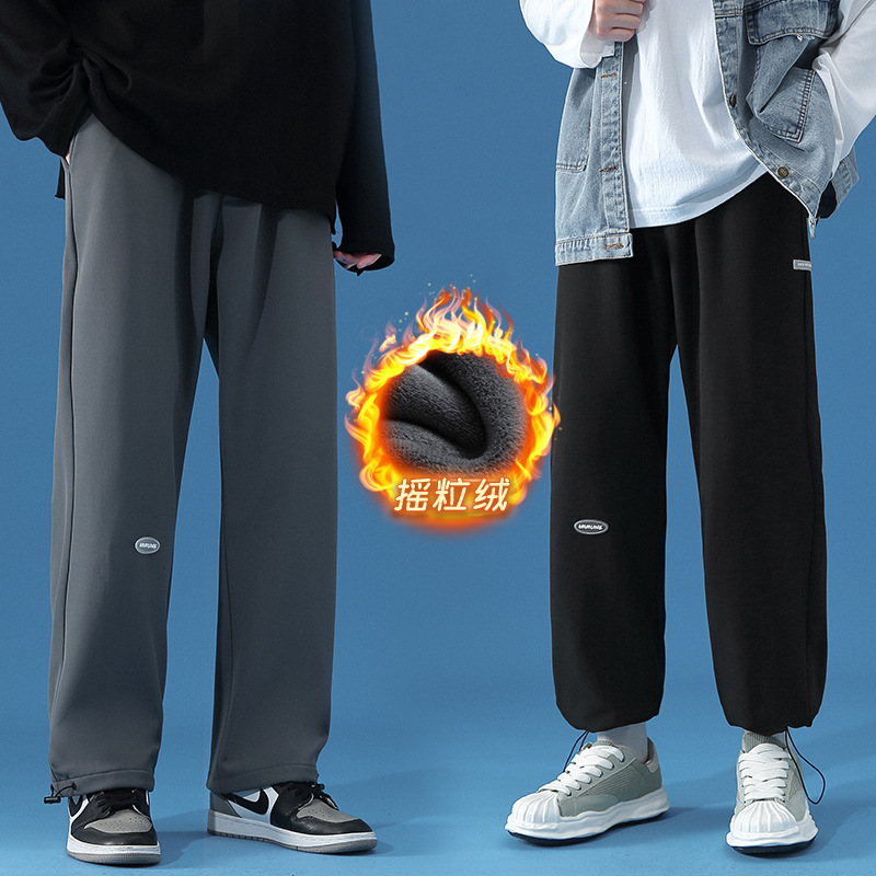 Tao Factory Мужские спортивные штаны Мужские брюки Свободные тонкие прямые трубки Впитывающие пот Универсальные вязаные утепленные повседневные Модные на флисовой подкладке