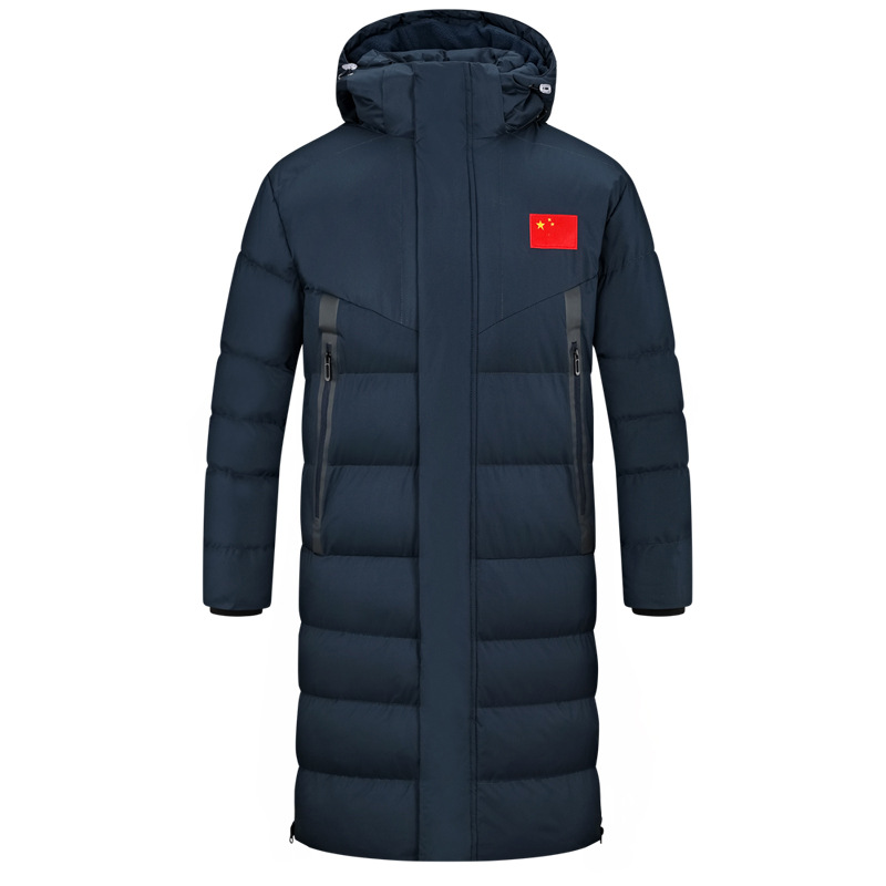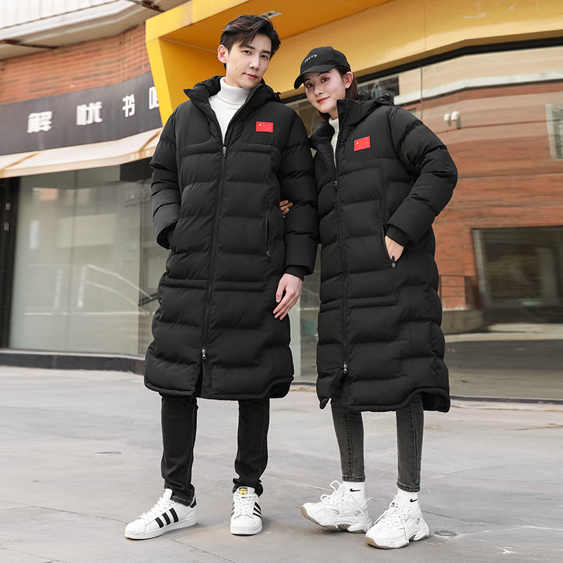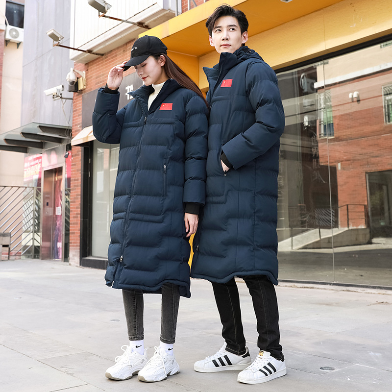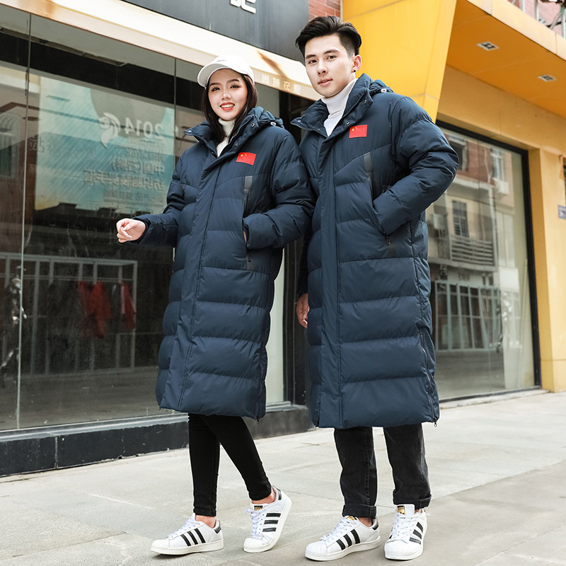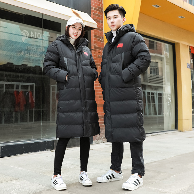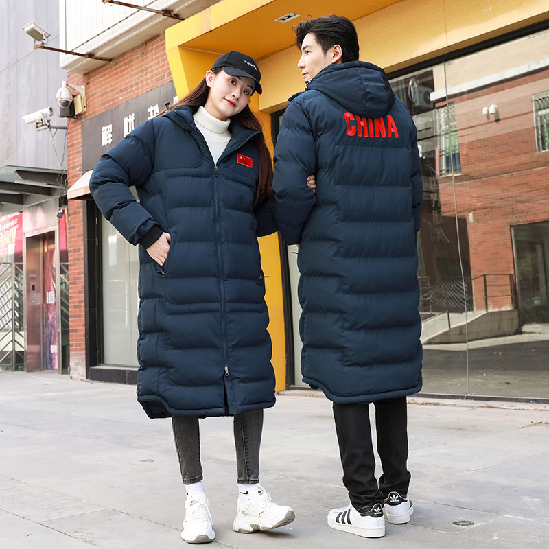 Зимняя китайская командная пуховая куртка с хлопковой подкладкой, мужская длинная Экипировка для влюбленных до колен, спортивное зимнее тренировочный пальто, спортивное студенческое тренировочный пальто