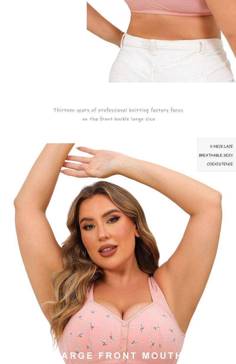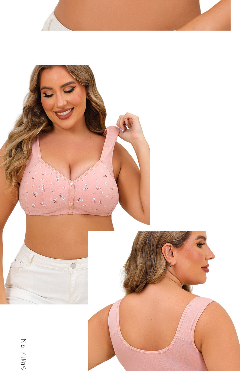 Формованная чашка с пряжкой спереди, женский жилет среднего и пожилого возраста с принтом, без проводов, широкий плечевой ремень, новый бюстгальтер большого размера