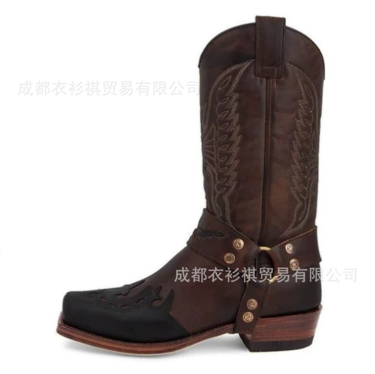 Независимая станция Внешняя торговля, Новые мужские кожаные сапоги с квадратным носком, европейские и американские вышитые мужские кожаные сапоги, сапоги рыцаря, теплые мужские туфли на низком каблуке, большие размеры