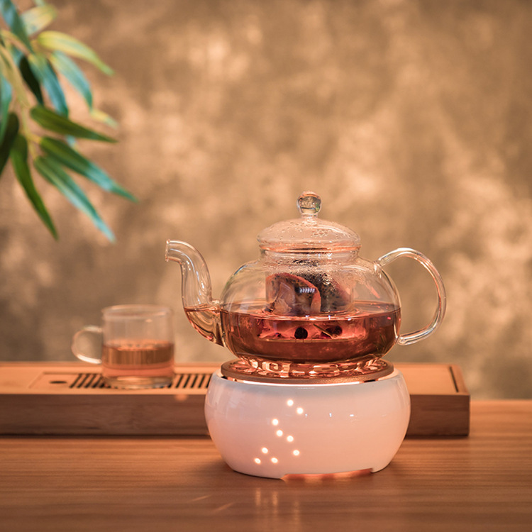 Чайный сервиз с подогревателем, керамической подставкой, стеклянной чайницей, подсвечником, цветочным чаем, простой чайный набор в китайском стиле