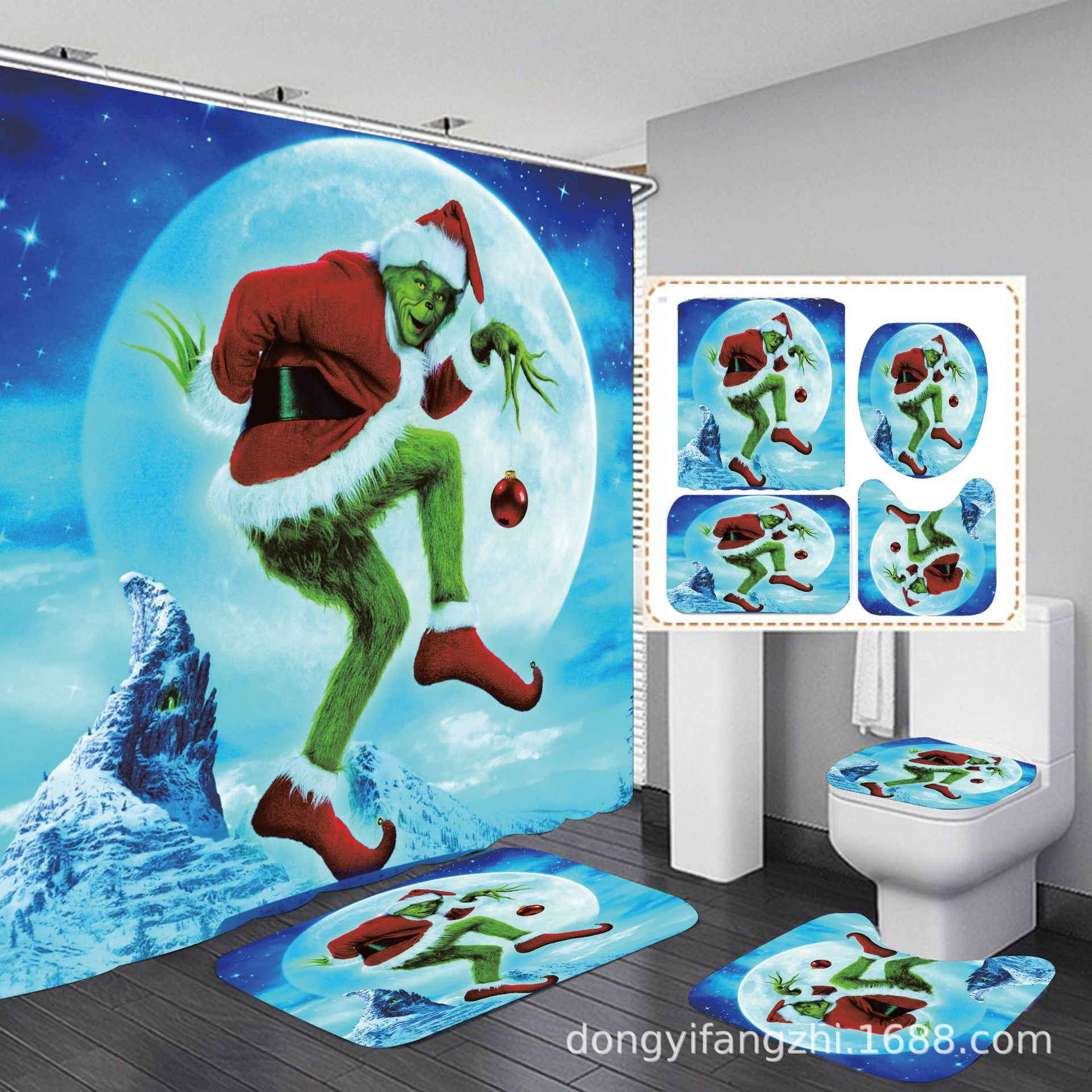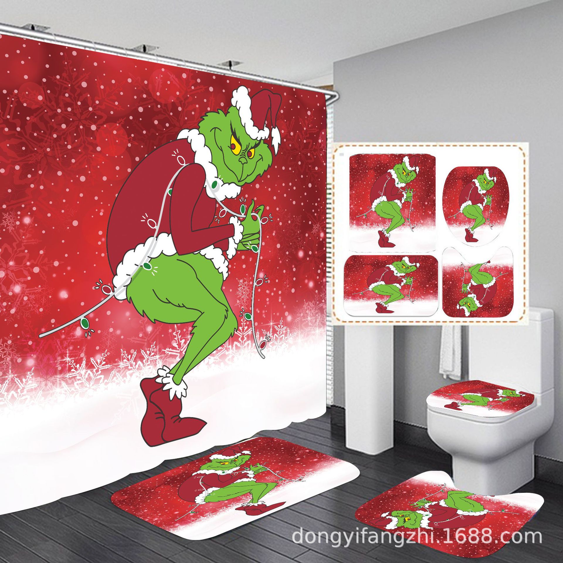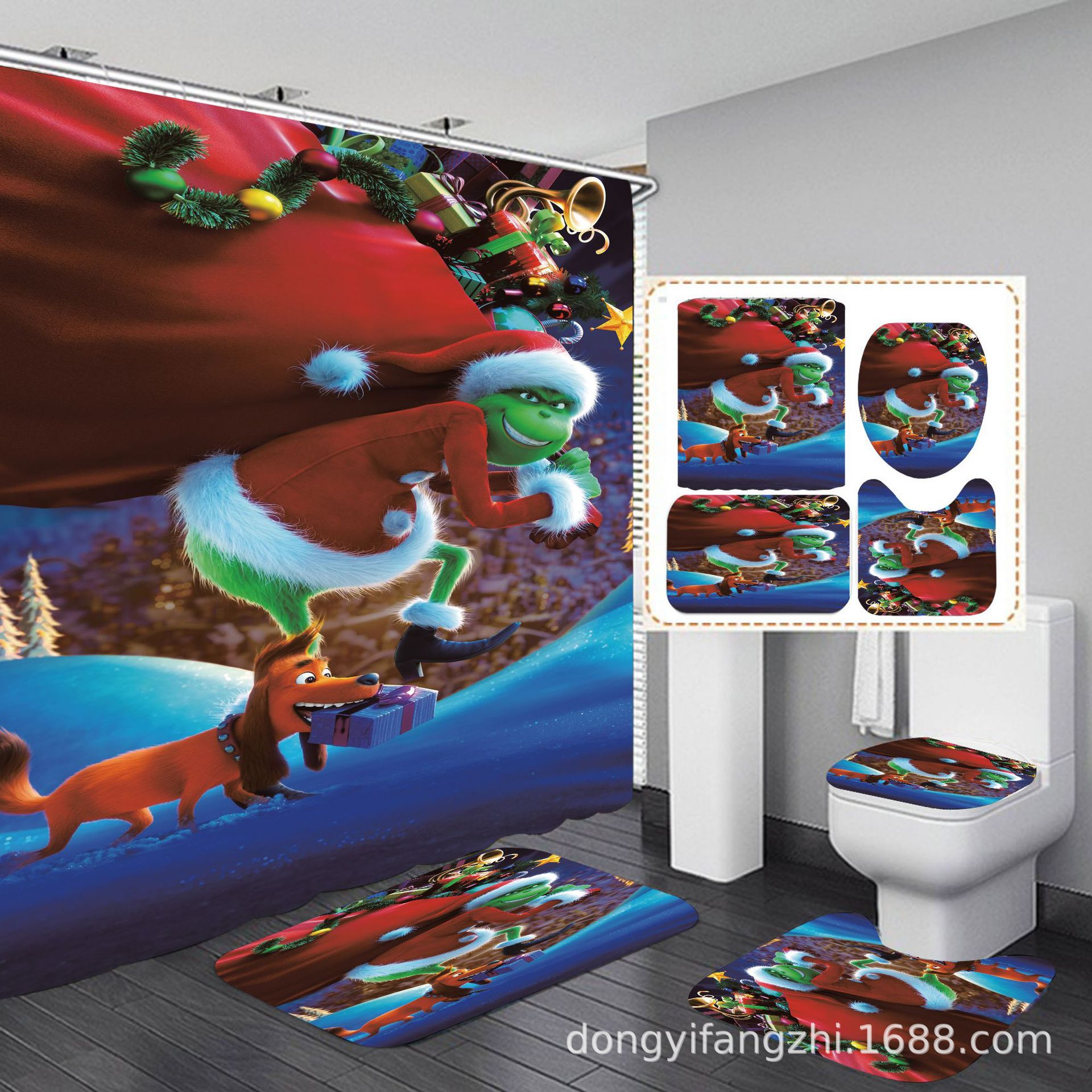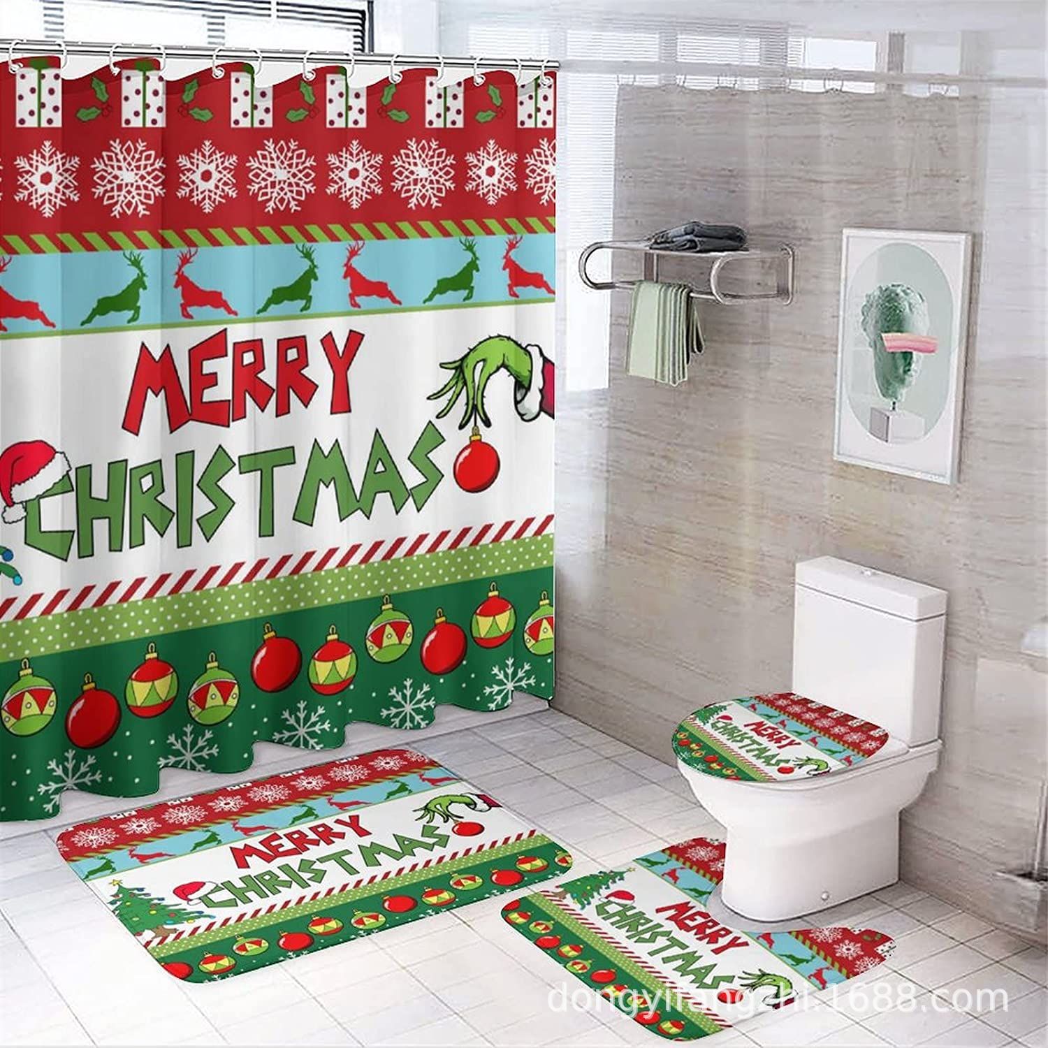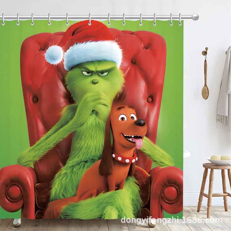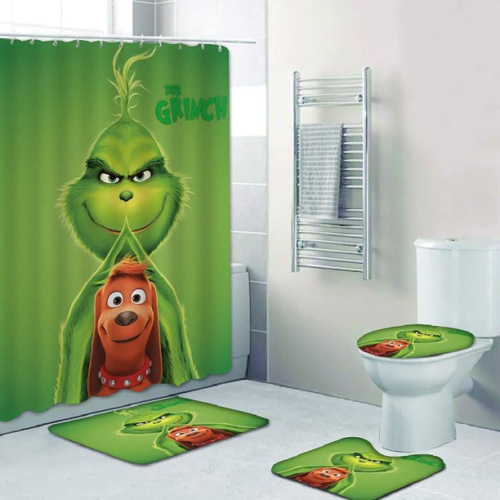 Трансграничная Рождественская занавеска для душа с цифровой печатью Amazon Набор из четырех предметов для ванной комнаты Костюм без перфорации Занавеска для душа Водонепроницаемая и устойчивая к плесени