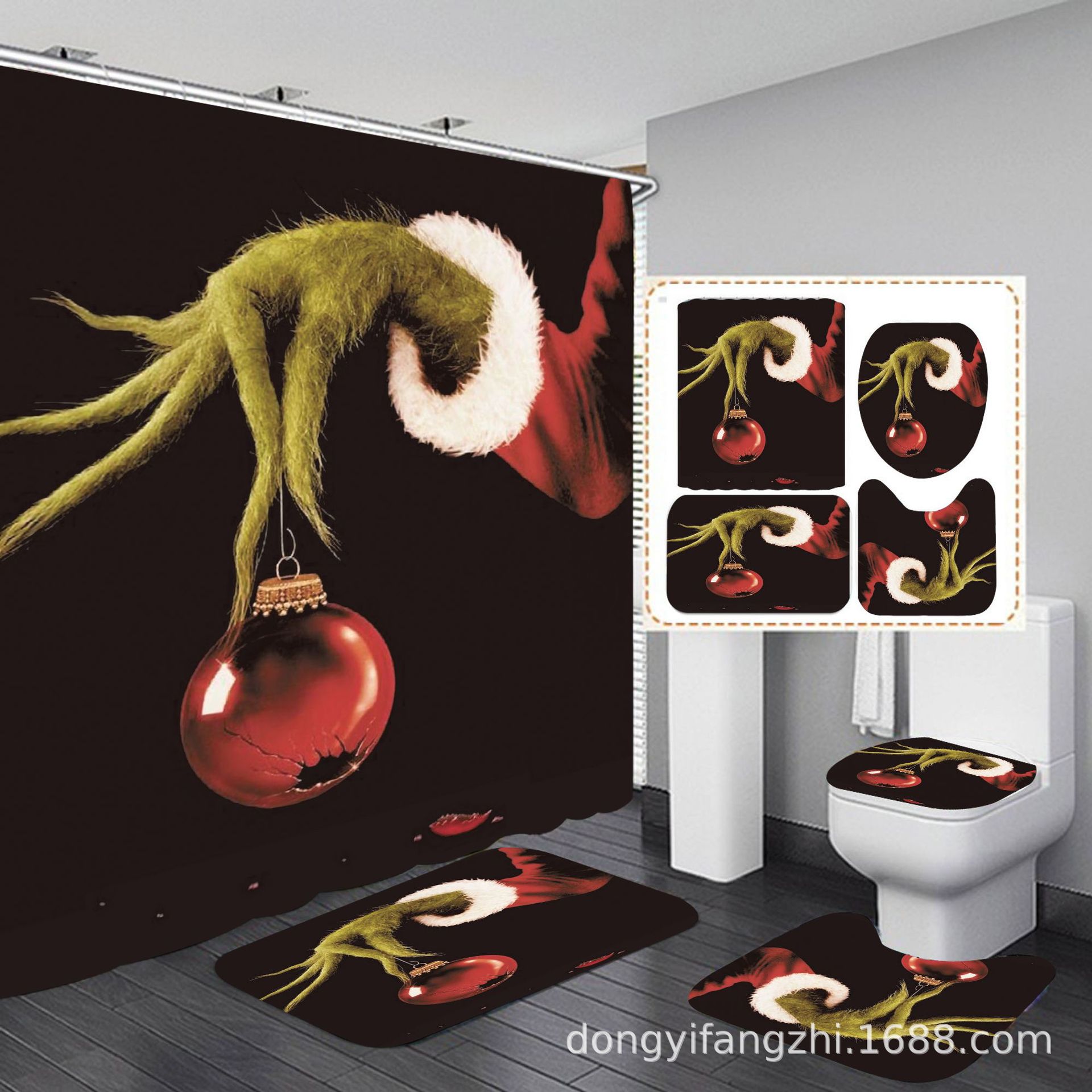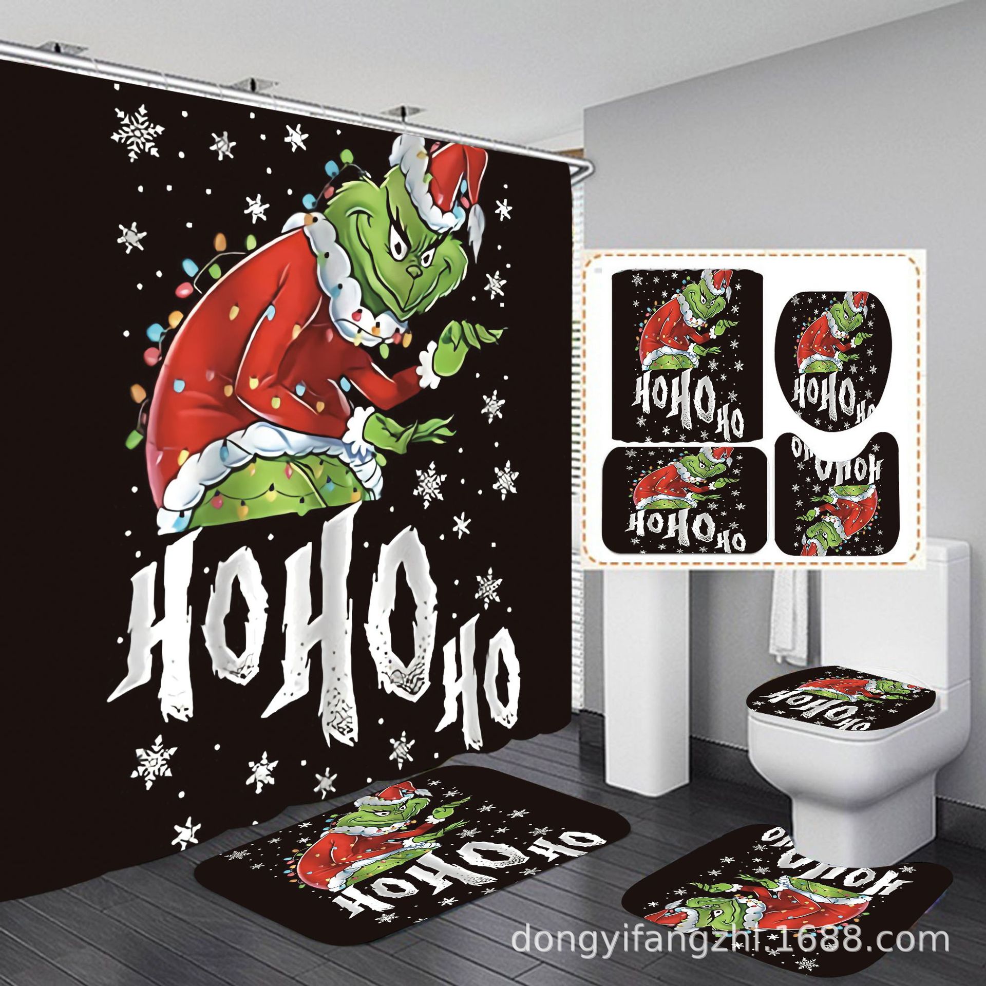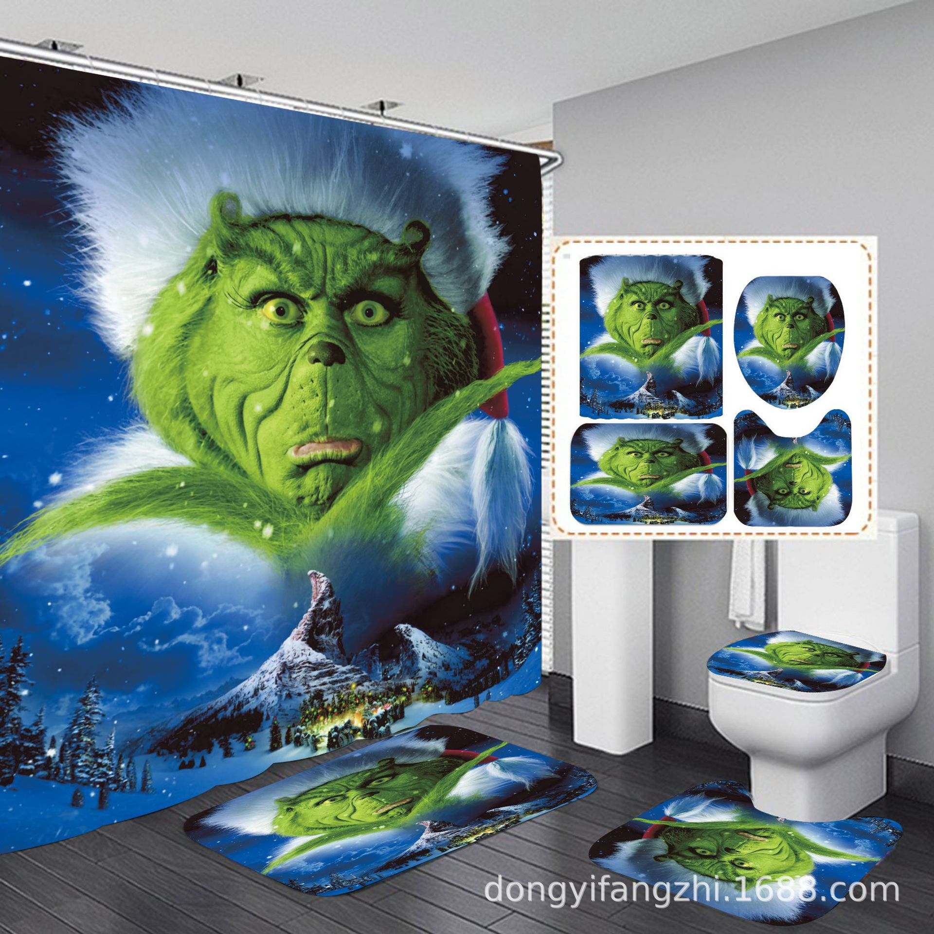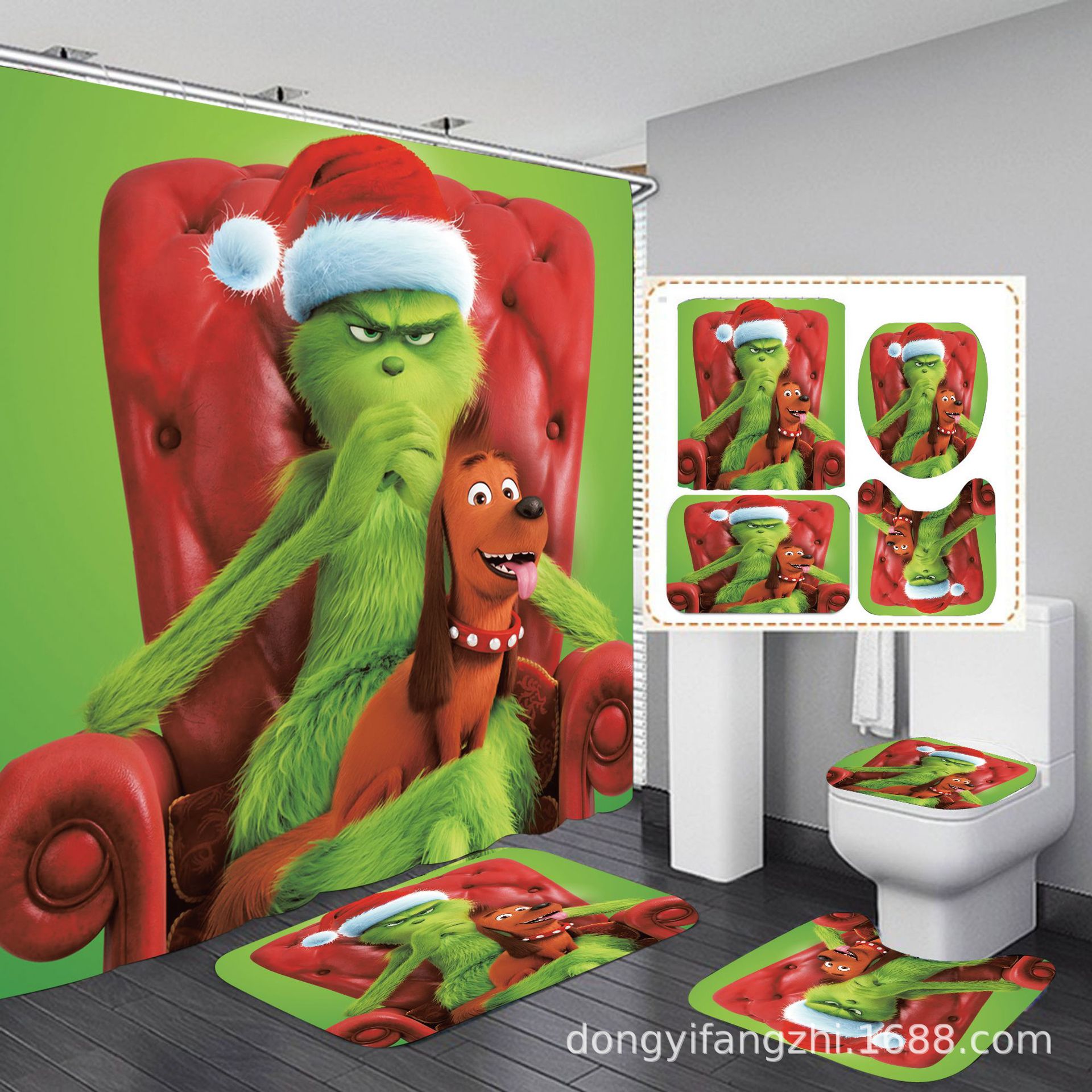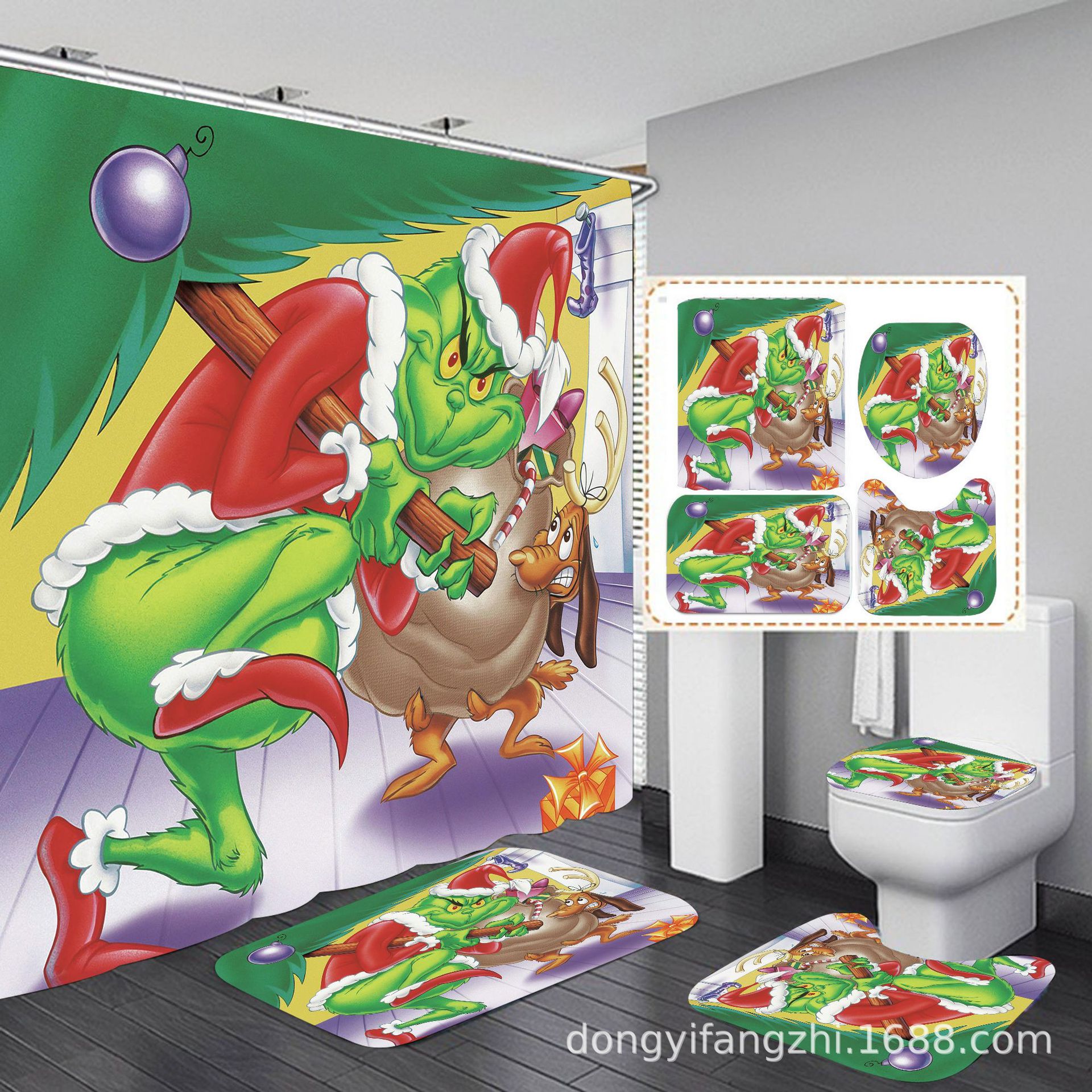 Трансграничная Рождественская занавеска для душа с цифровой печатью Amazon Набор из четырех предметов для ванной комнаты Костюм без перфорации Занавеска для душа Водонепроницаемая и устойчивая к плесени