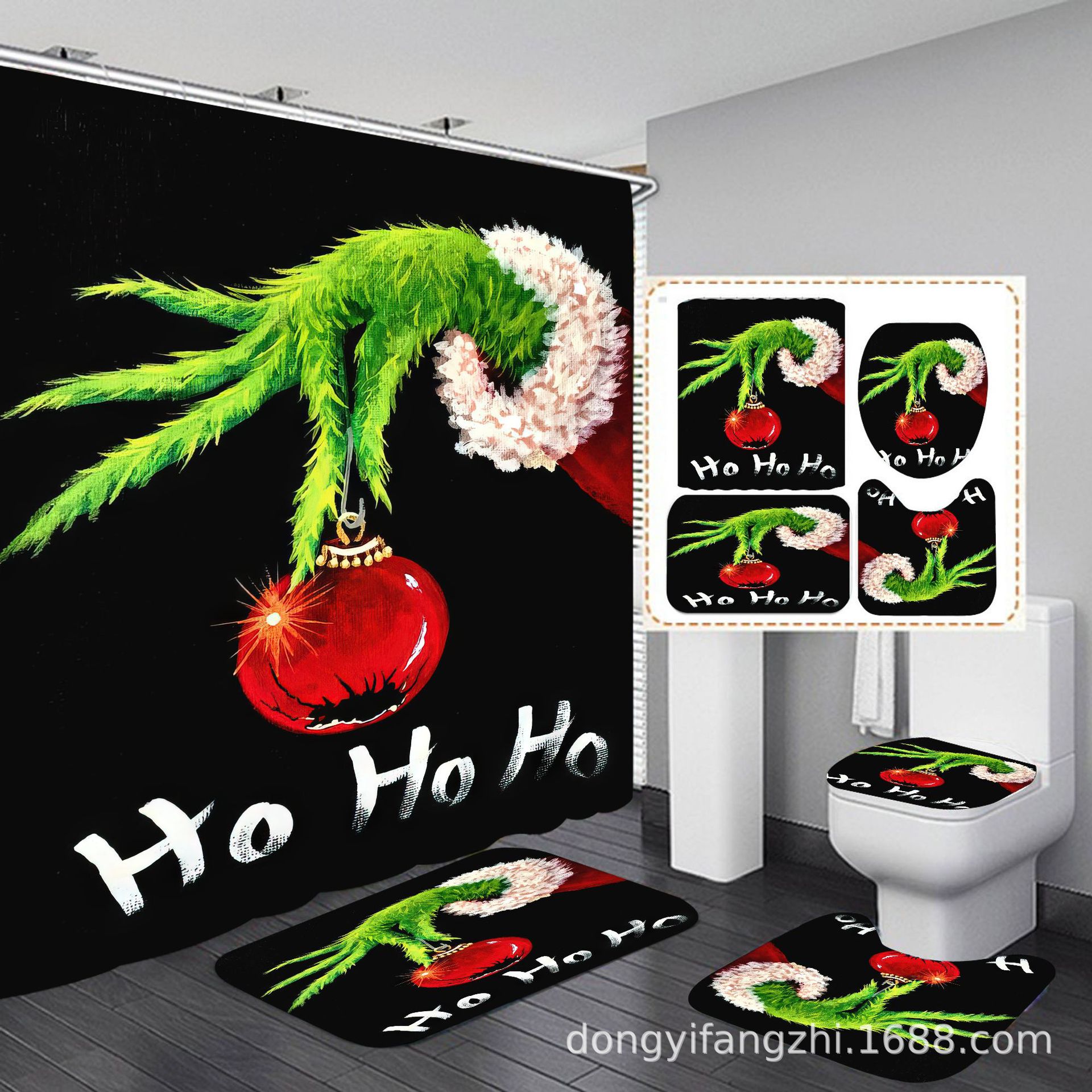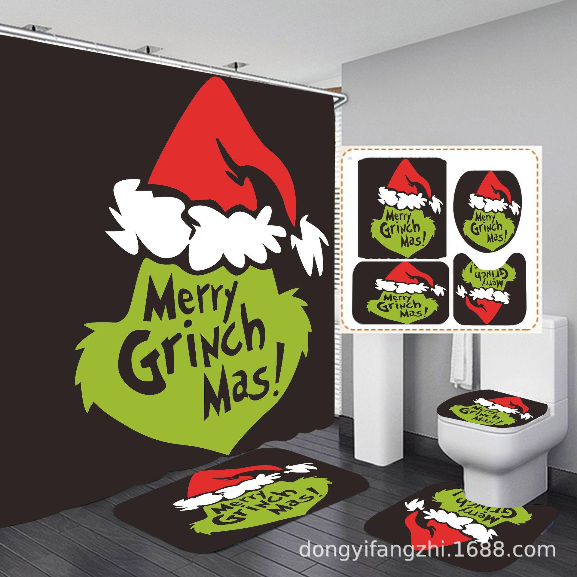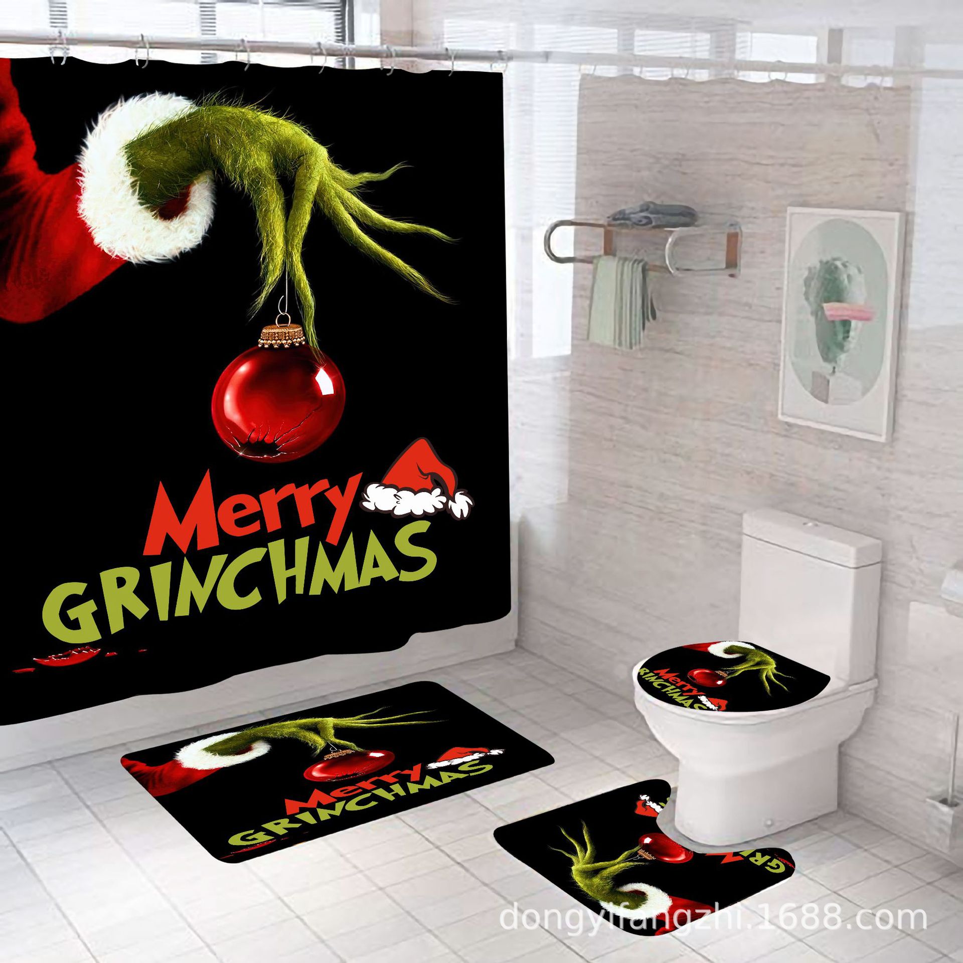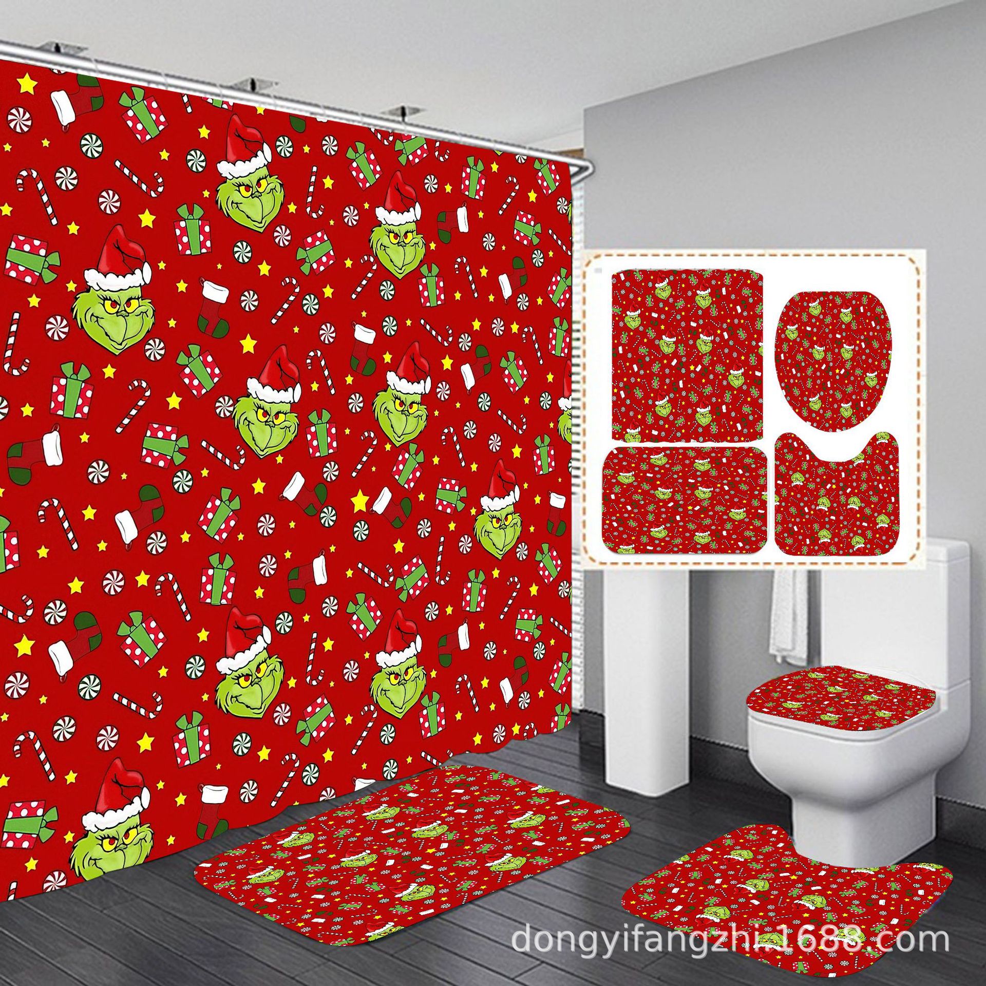 Трансграничная Рождественская занавеска для душа с цифровой печатью Amazon Набор из четырех предметов для ванной комнаты Костюм без перфорации Занавеска для душа Водонепроницаемая и устойчивая к плесени