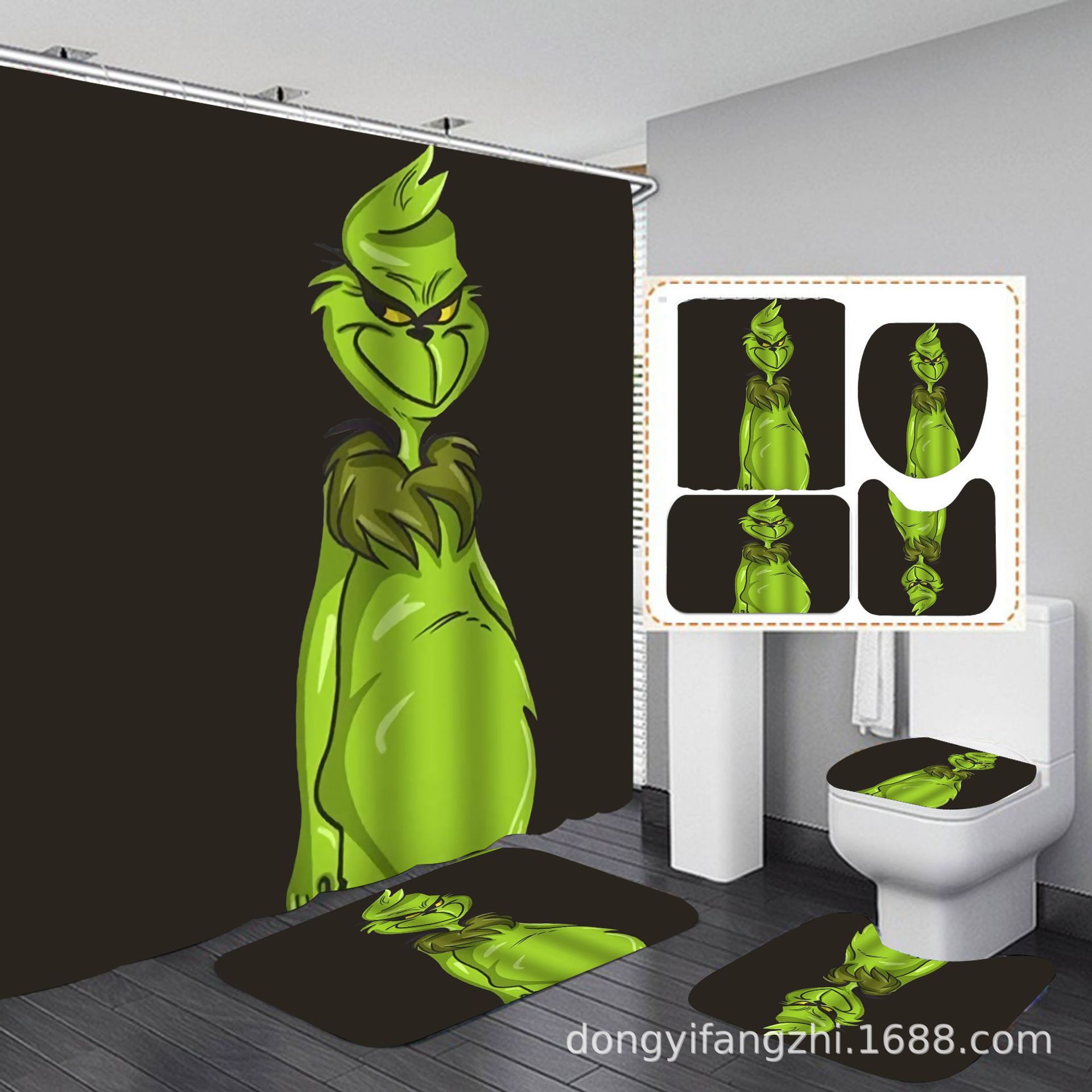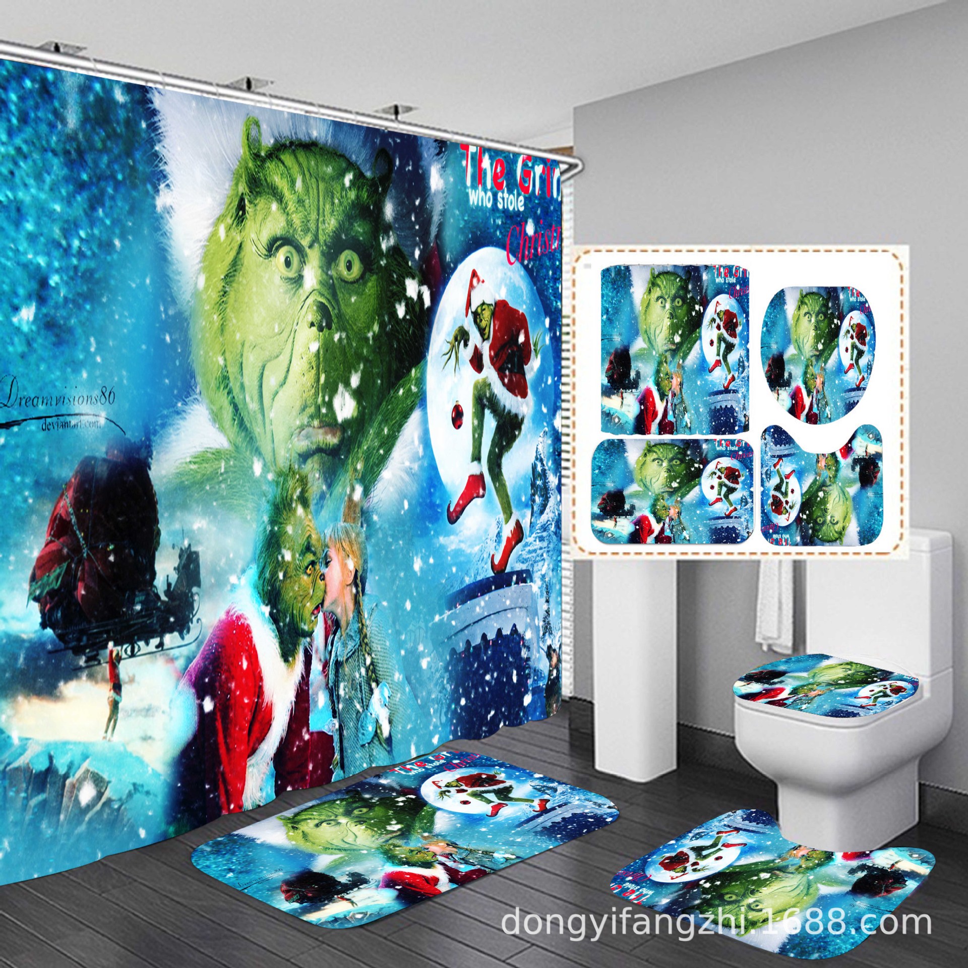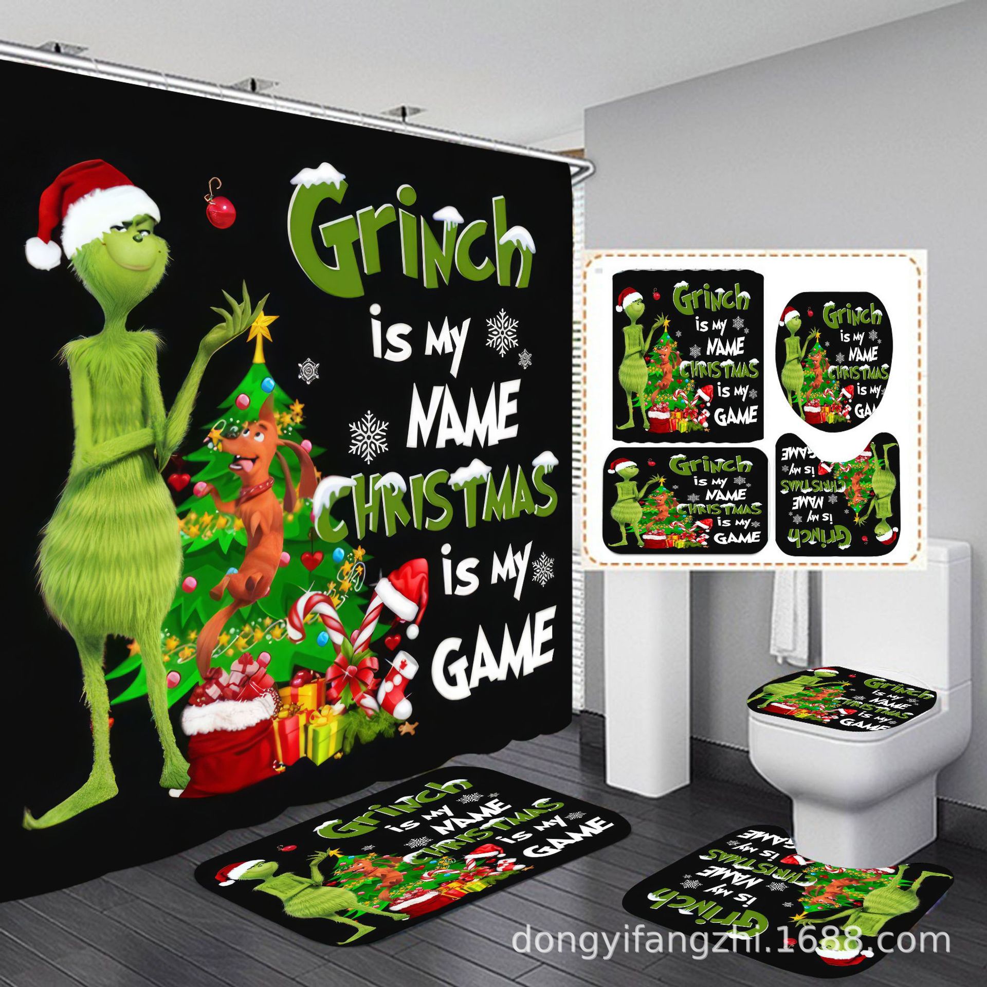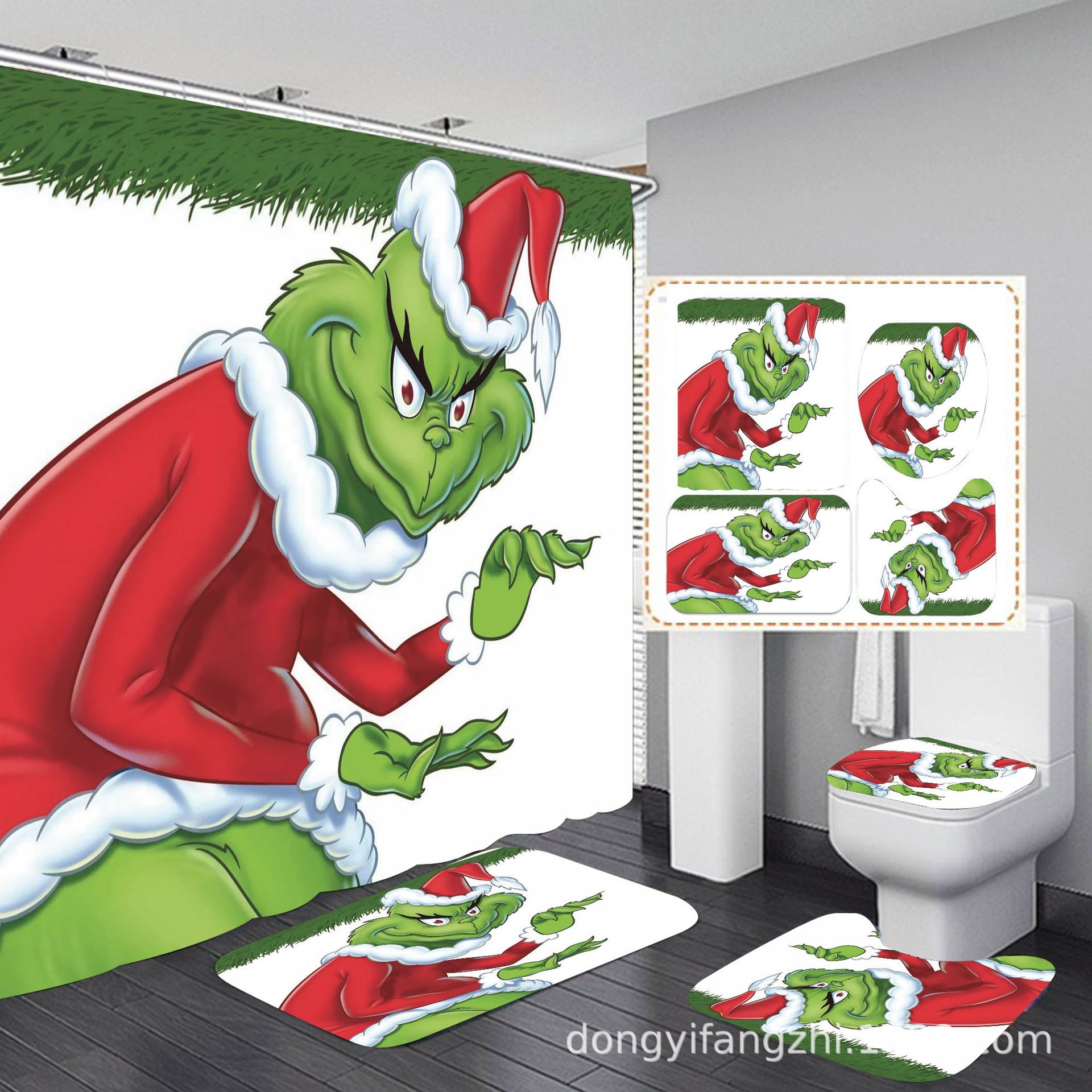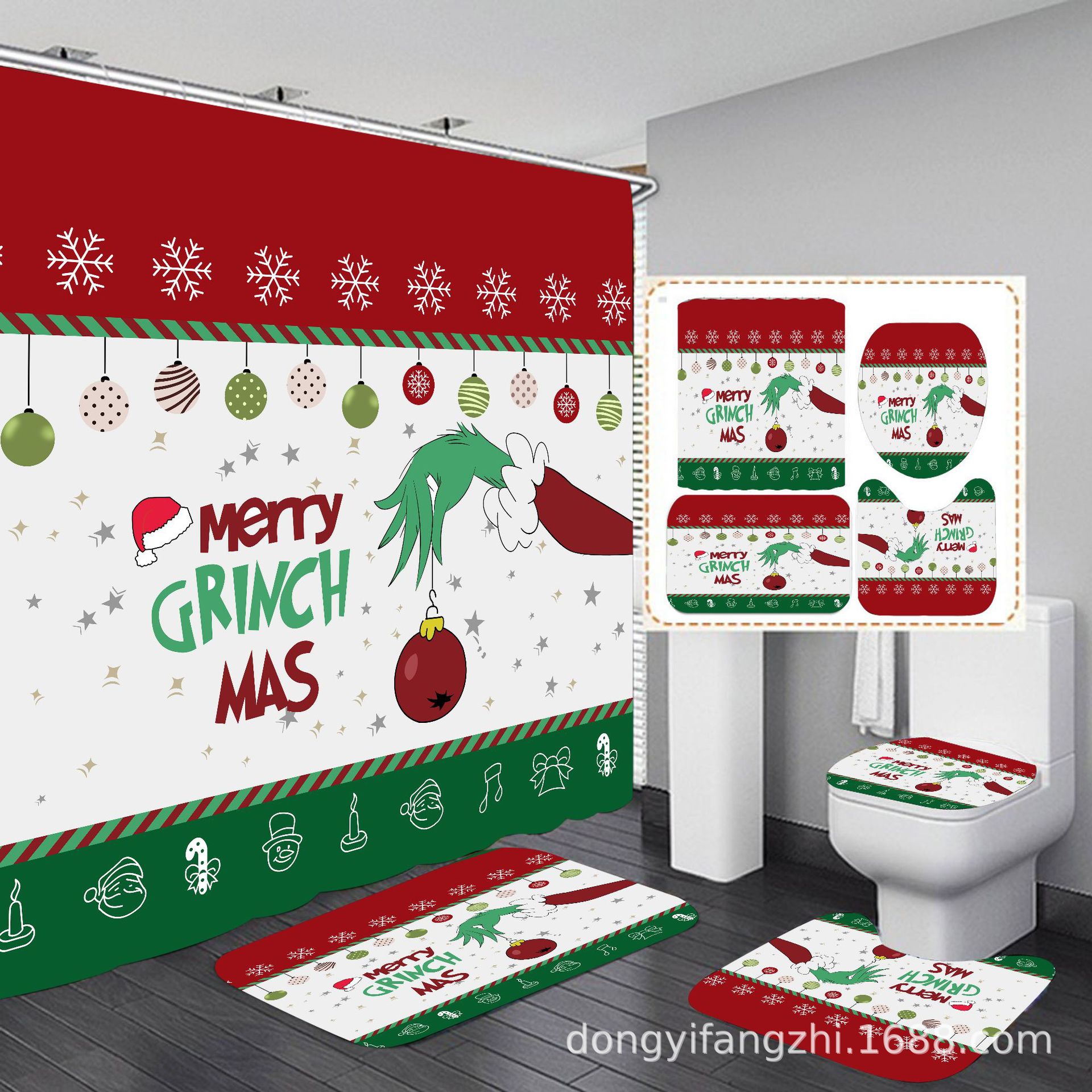 Трансграничная Рождественская занавеска для душа с цифровой печатью Amazon Набор из четырех предметов для ванной комнаты Костюм без перфорации Занавеска для душа Водонепроницаемая и устойчивая к плесени