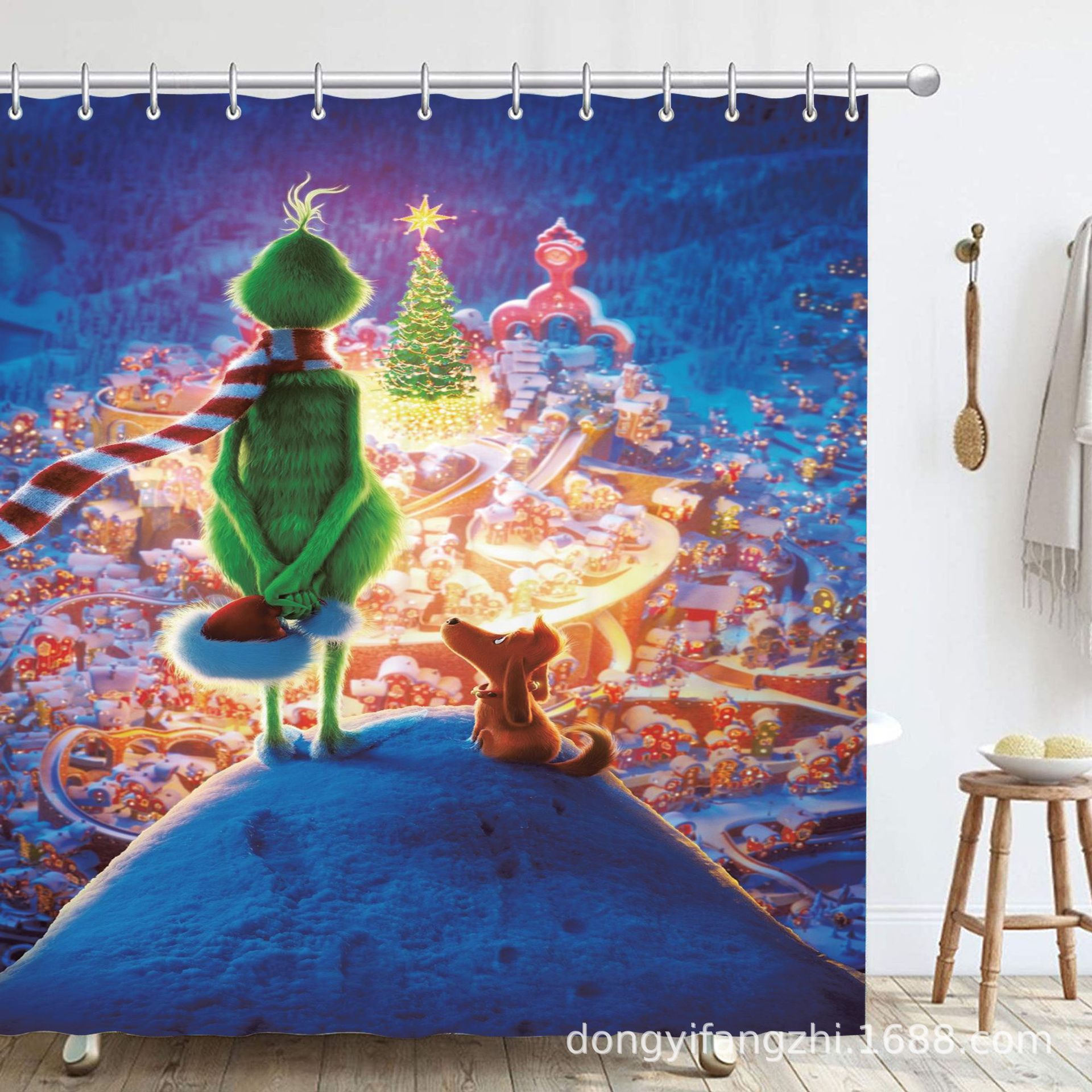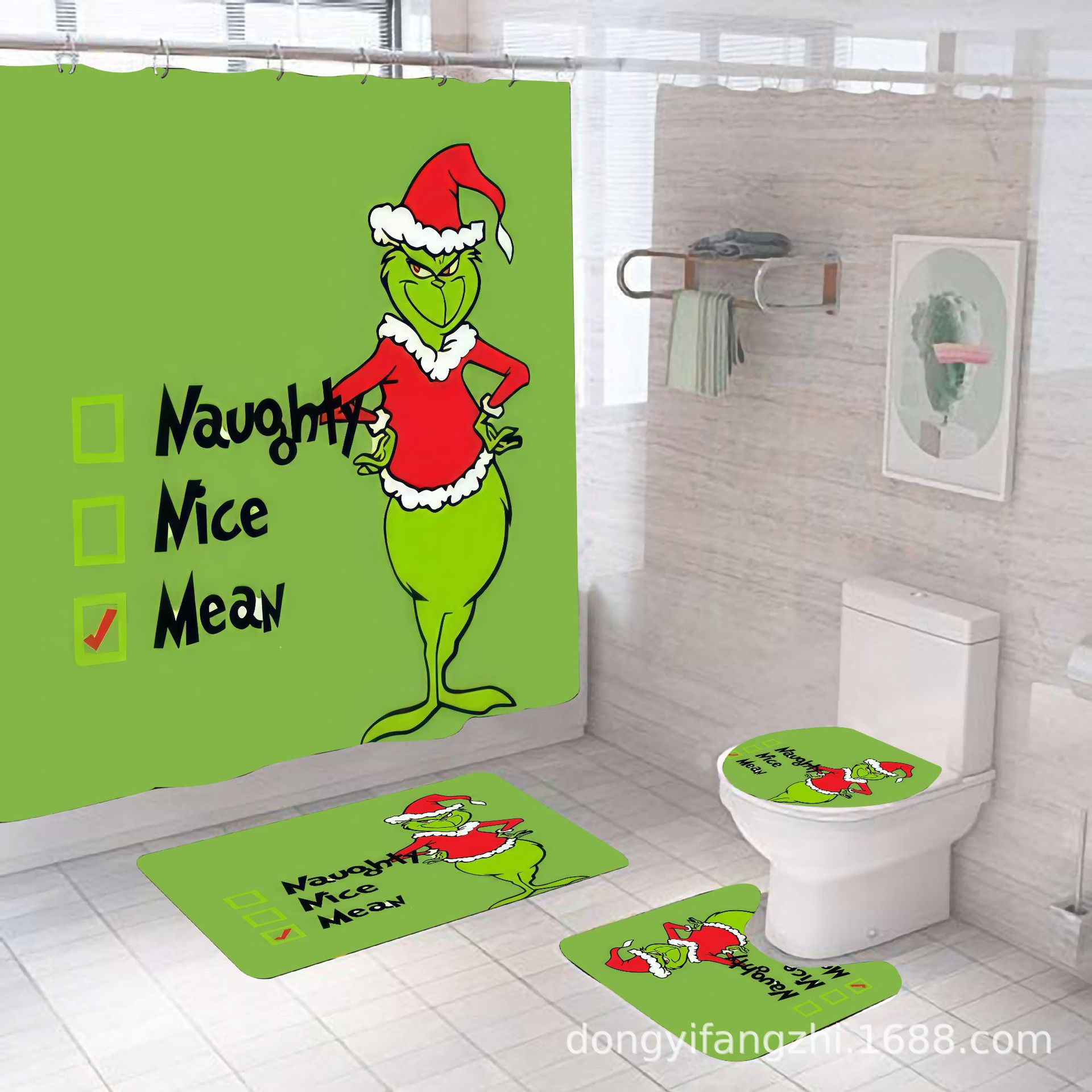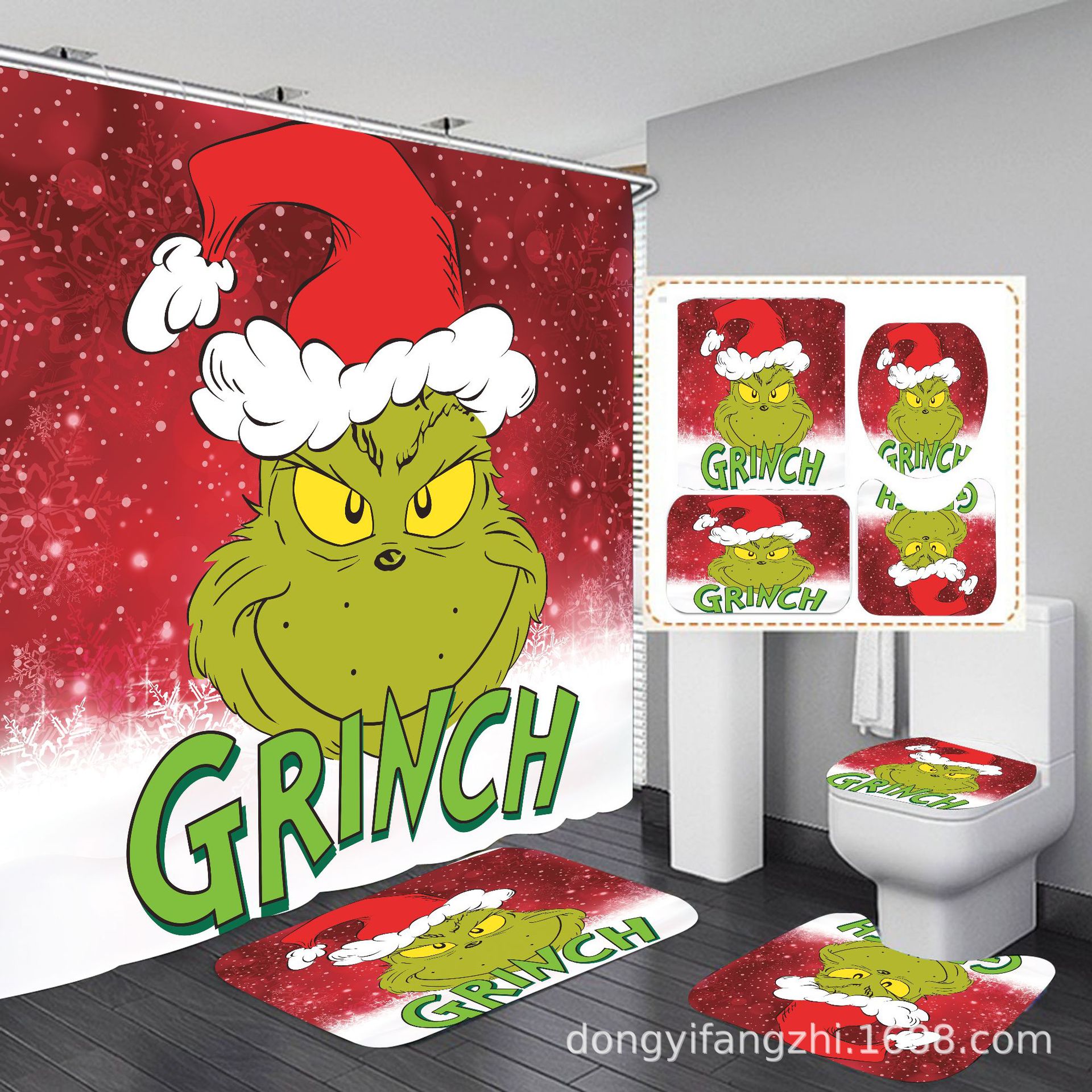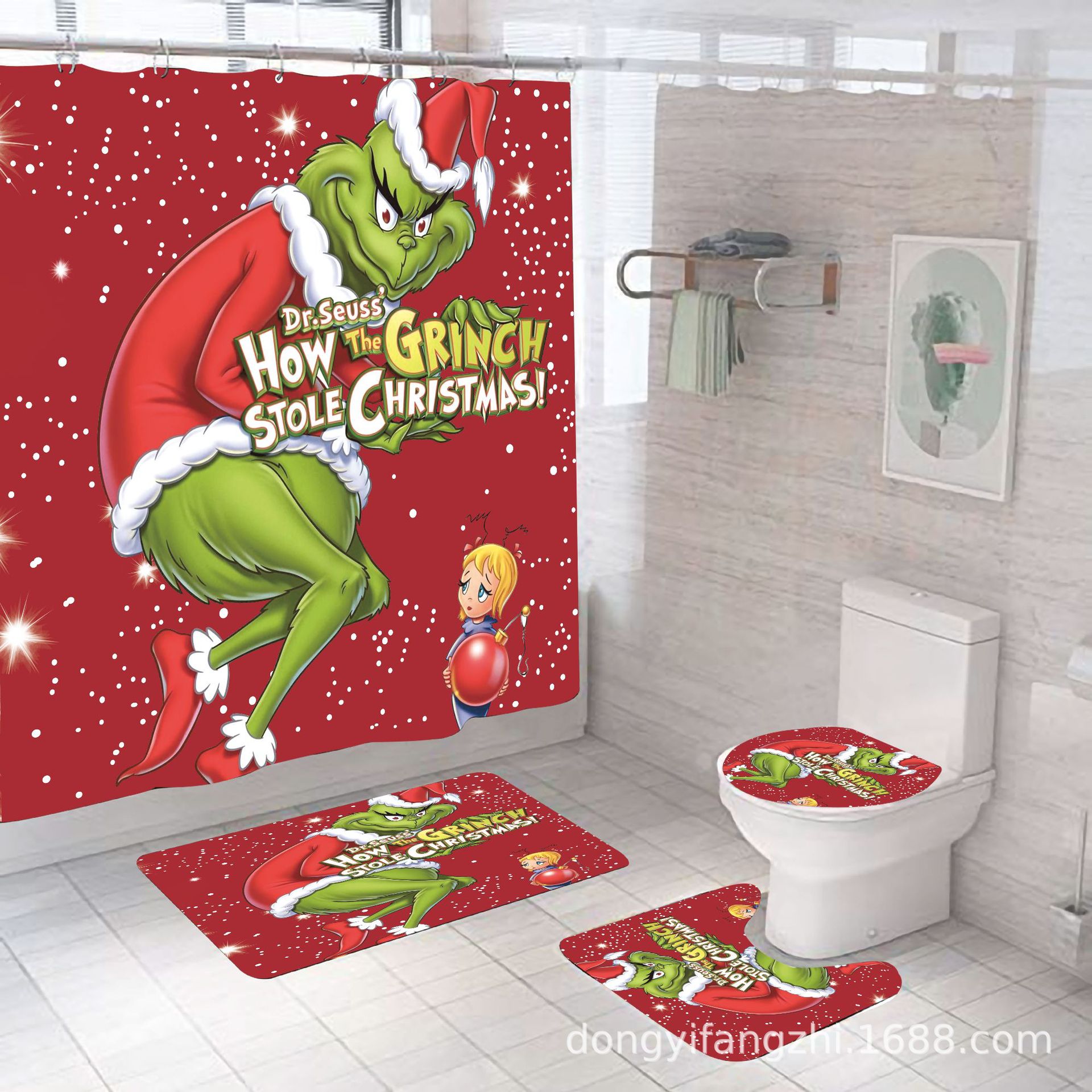 Трансграничная Рождественская занавеска для душа с цифровой печатью Amazon Набор из четырех предметов для ванной комнаты Костюм без перфорации Занавеска для душа Водонепроницаемая и устойчивая к плесени