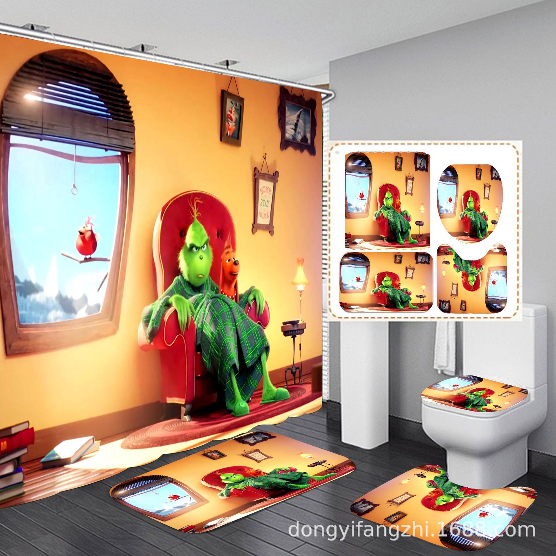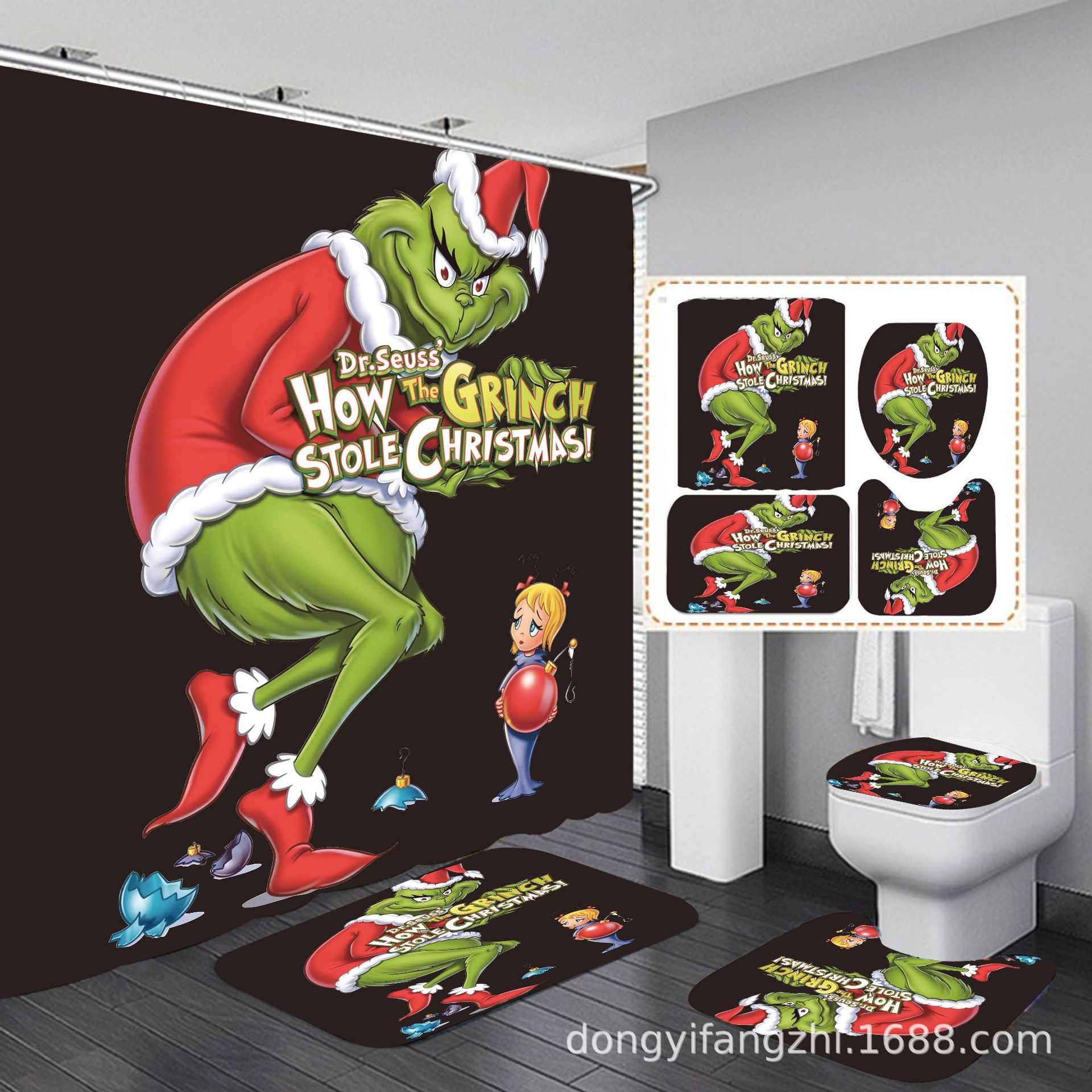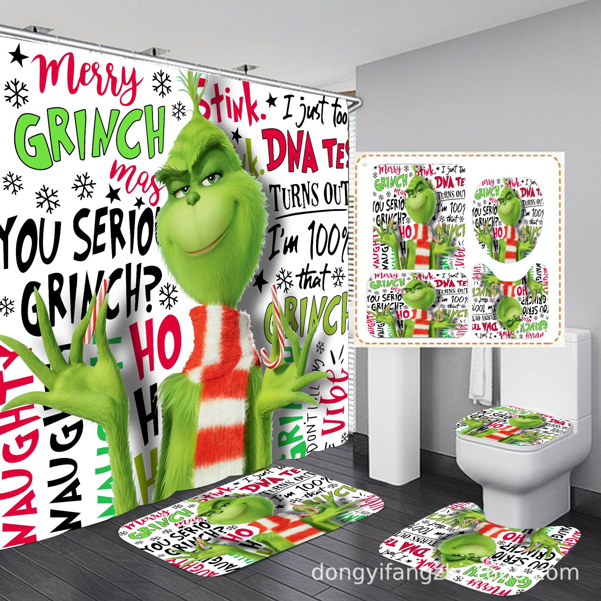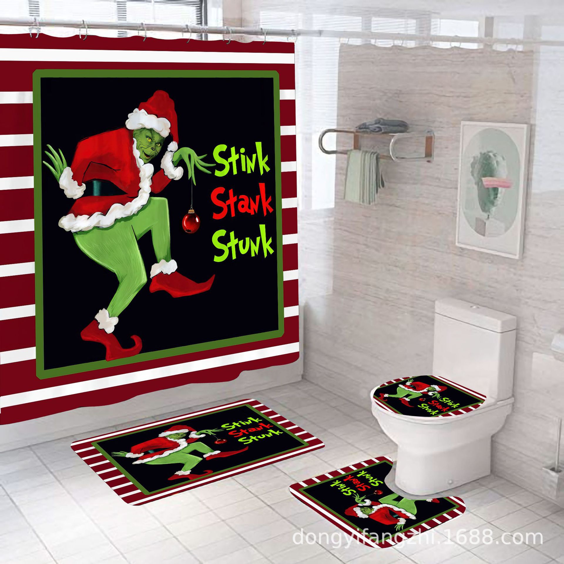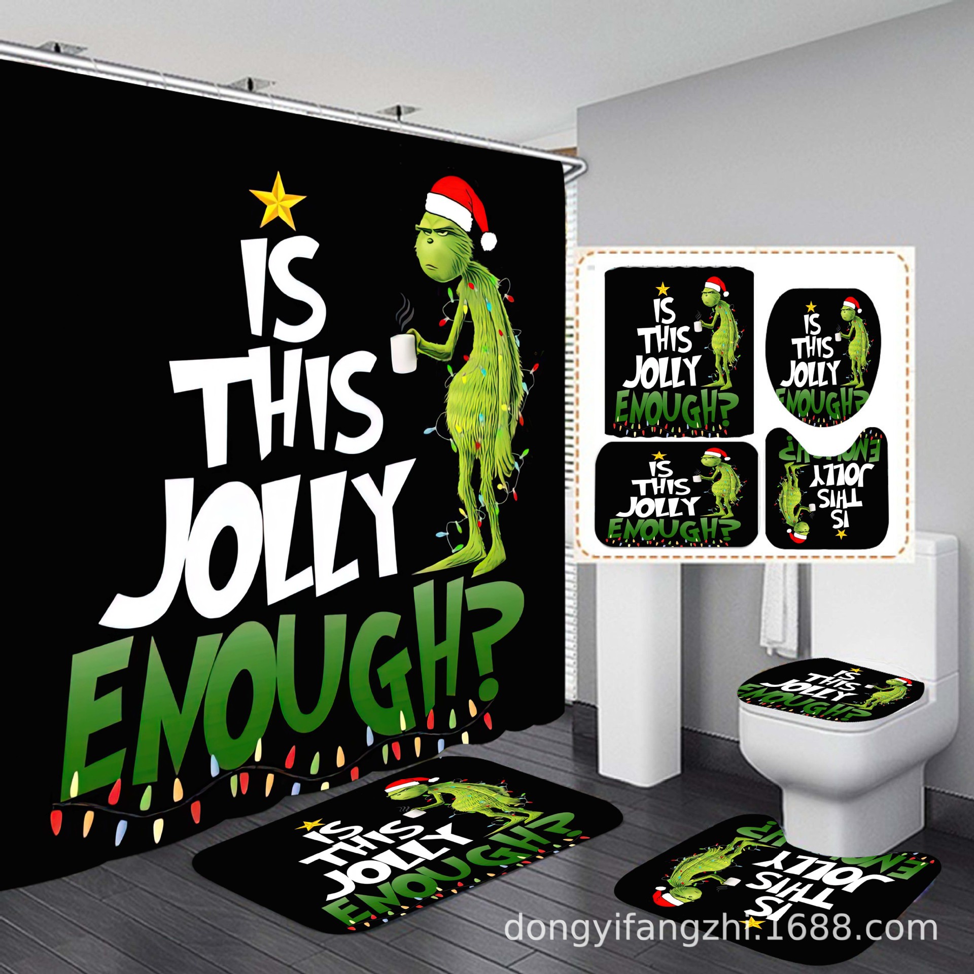 Трансграничная Рождественская занавеска для душа с цифровой печатью Amazon Набор из четырех предметов для ванной комнаты Костюм без перфорации Занавеска для душа Водонепроницаемая и устойчивая к плесени