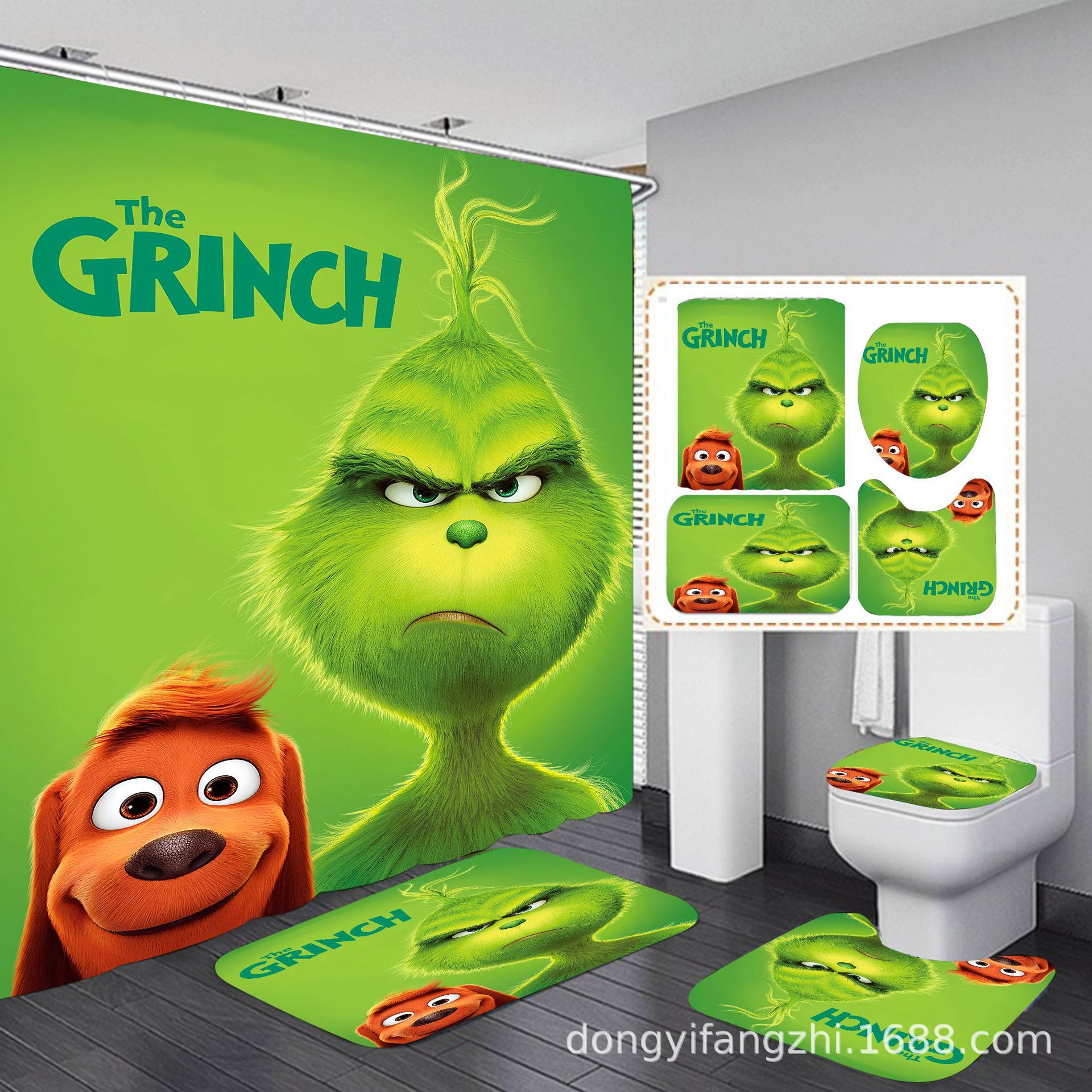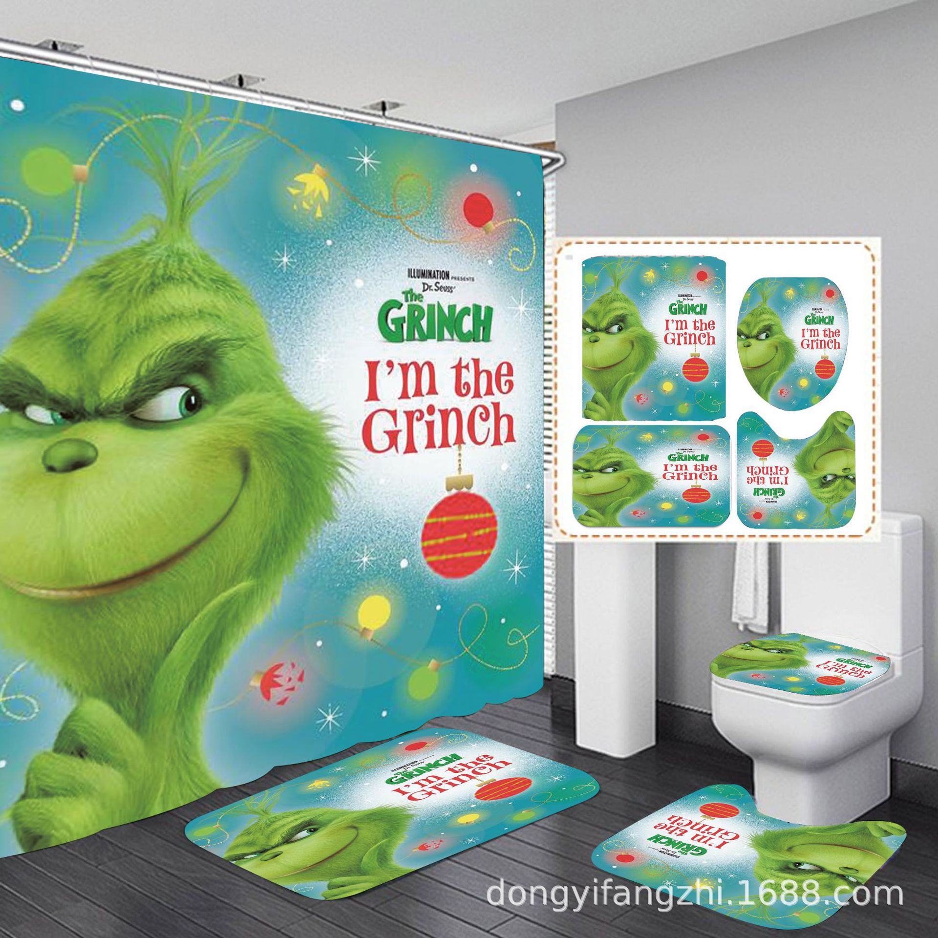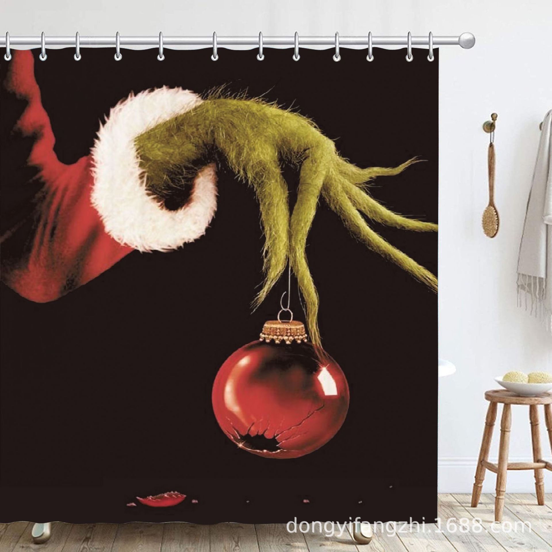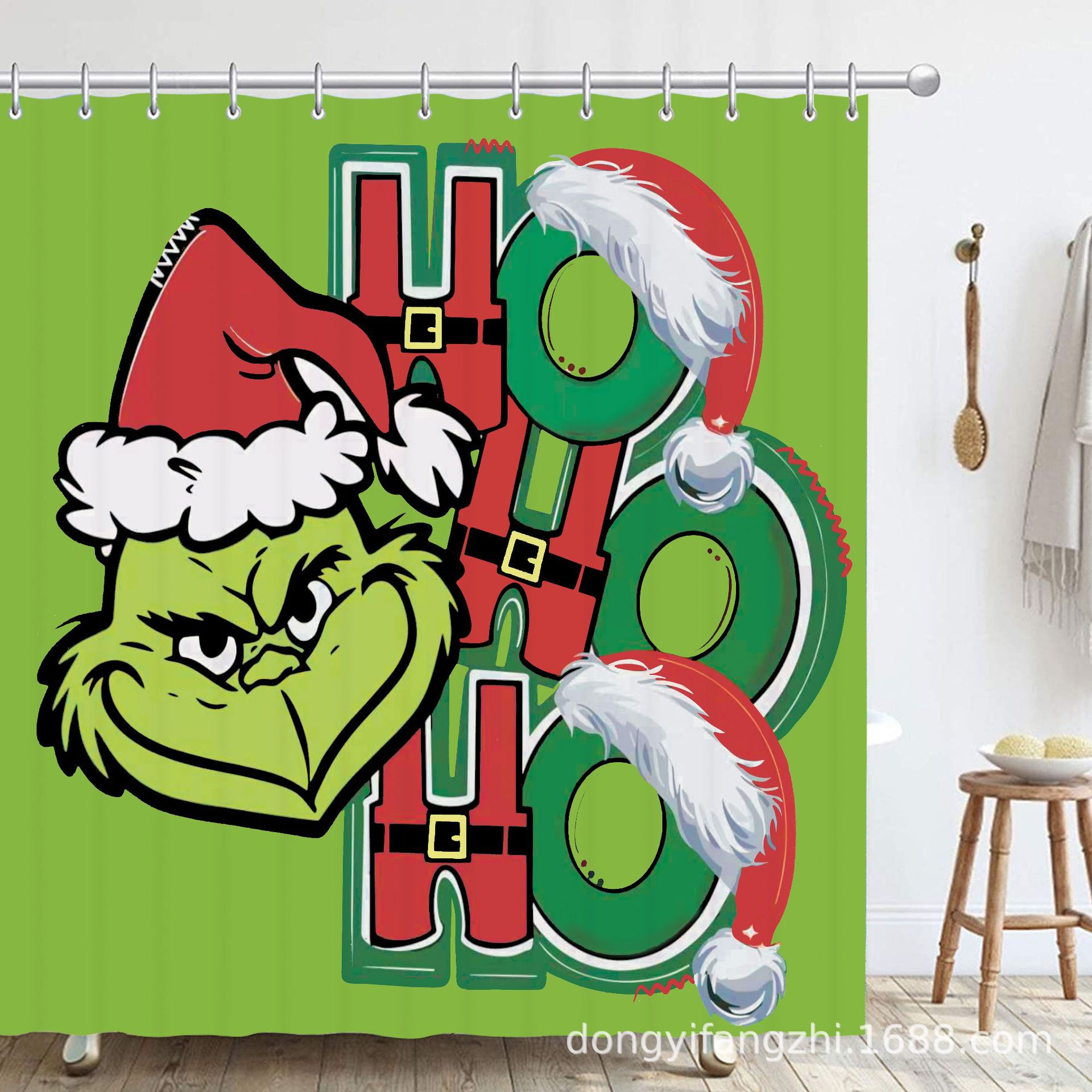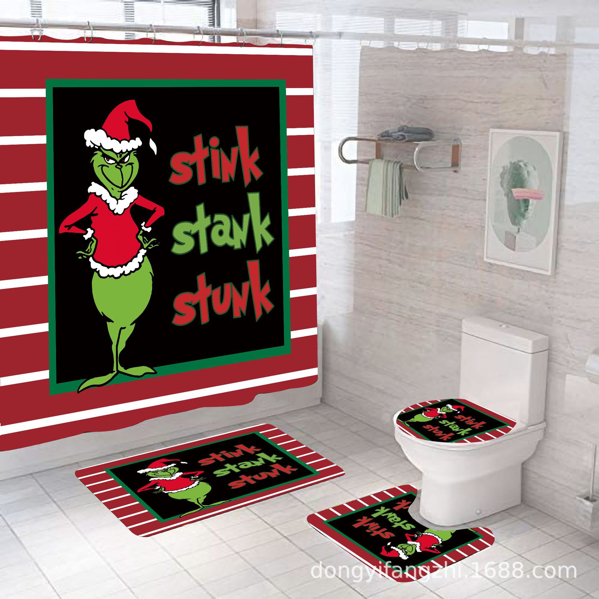 Трансграничная Рождественская занавеска для душа с цифровой печатью Amazon Набор из четырех предметов для ванной комнаты Костюм без перфорации Занавеска для душа Водонепроницаемая и устойчивая к плесени