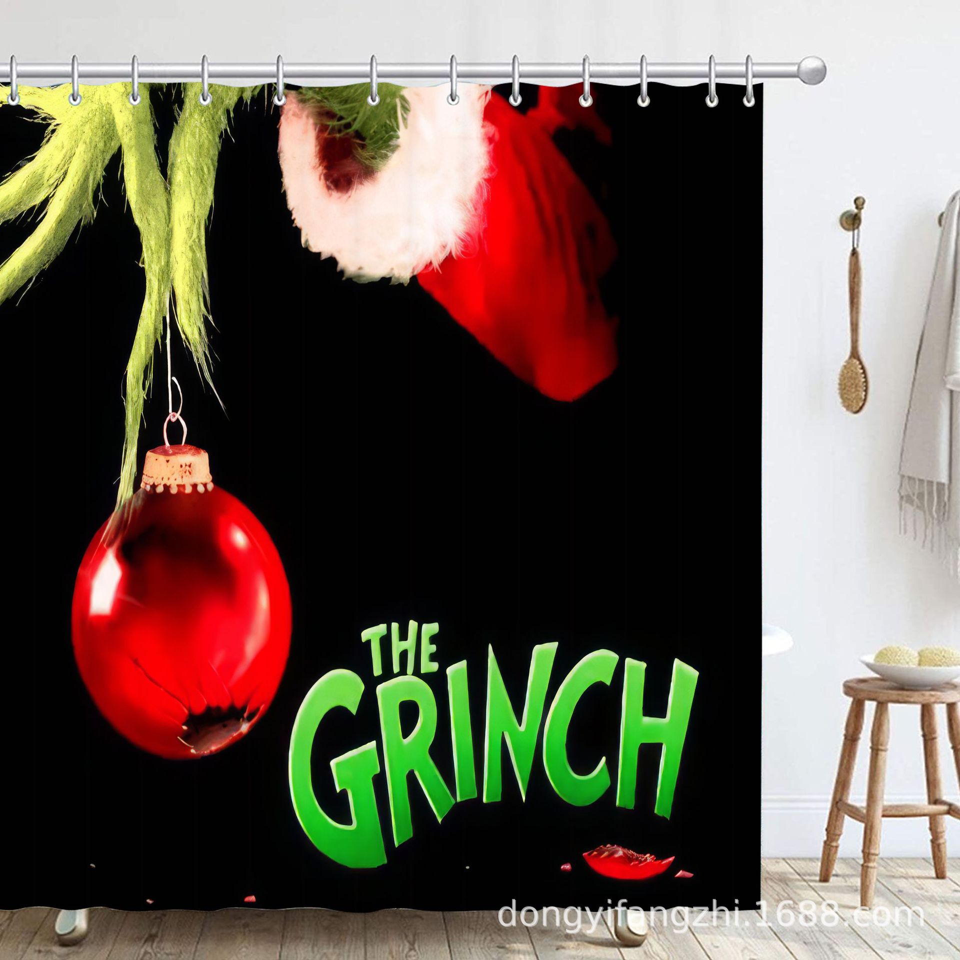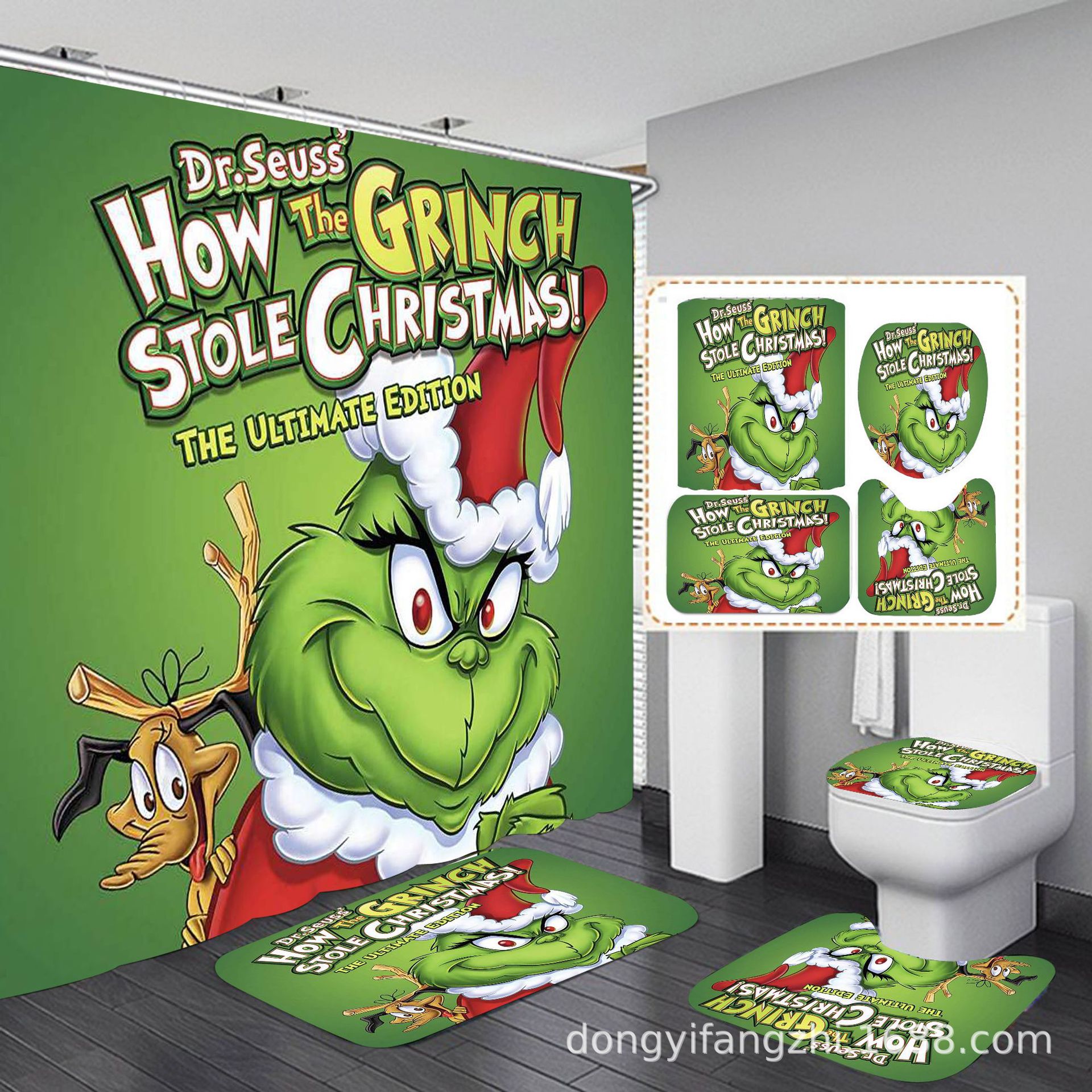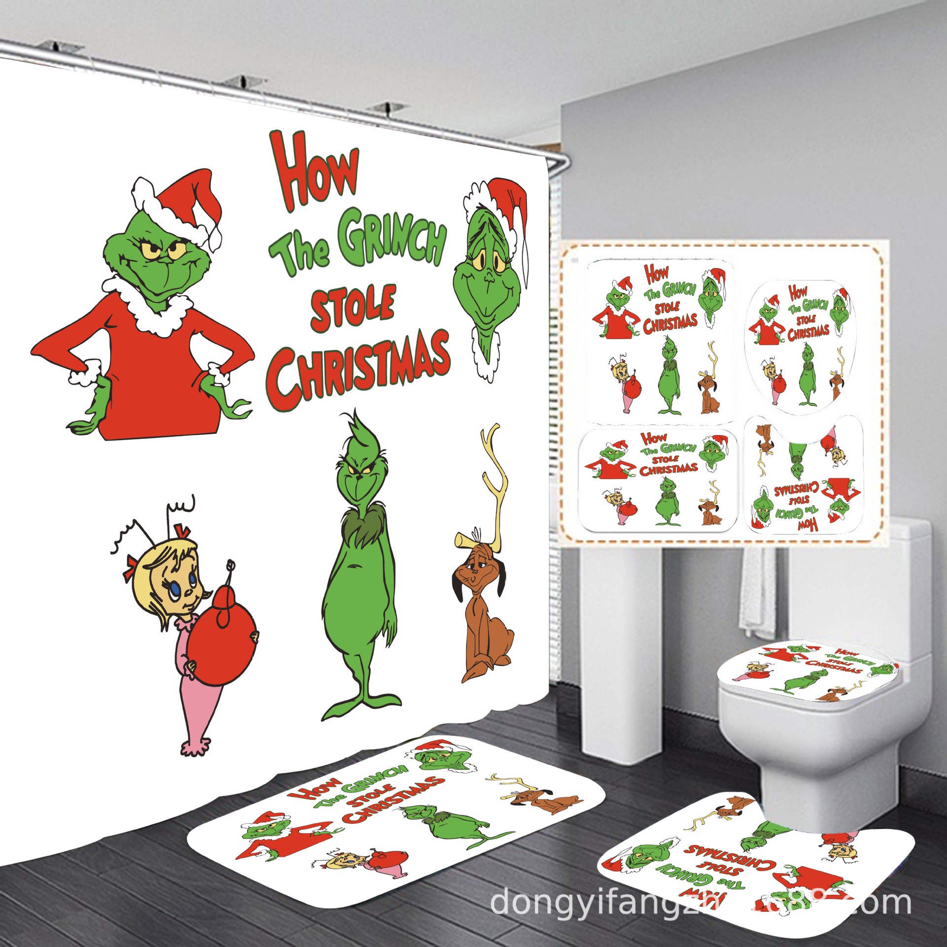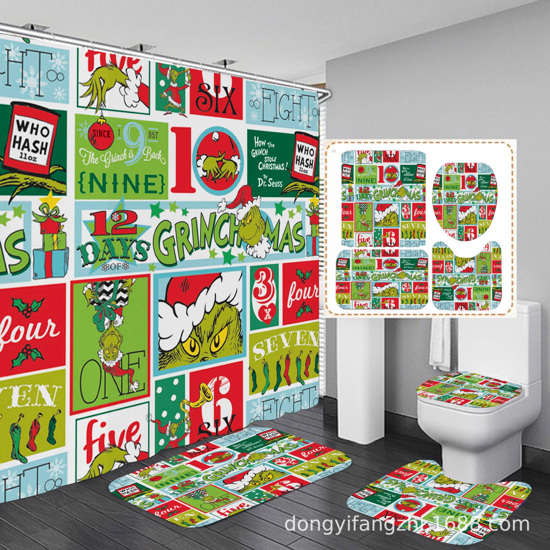 Трансграничная Рождественская занавеска для душа с цифровой печатью Amazon Набор из четырех предметов для ванной комнаты Костюм без перфорации Занавеска для душа Водонепроницаемая и устойчивая к плесени