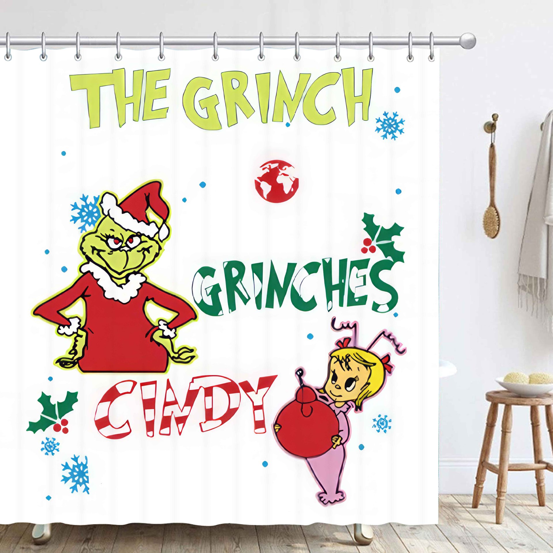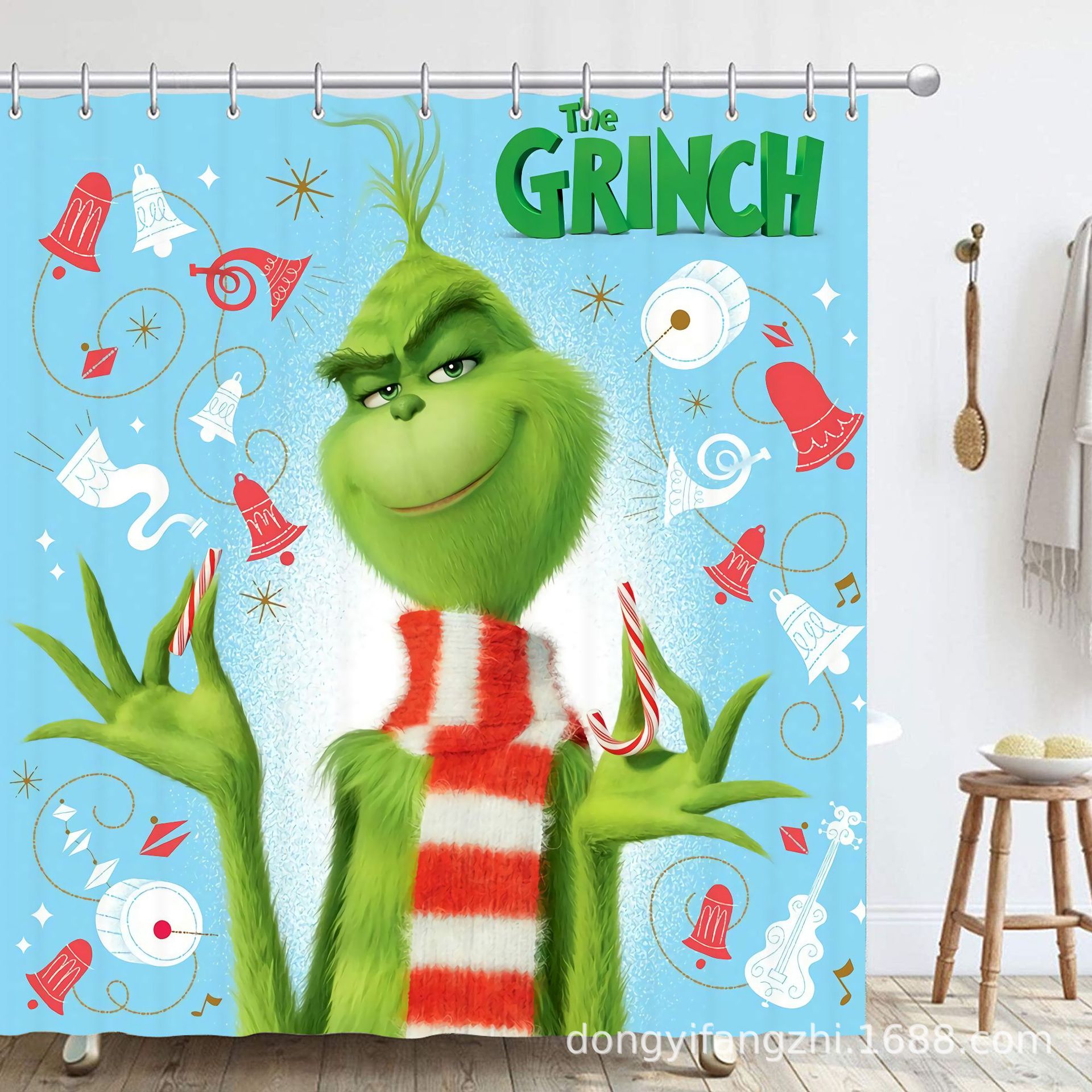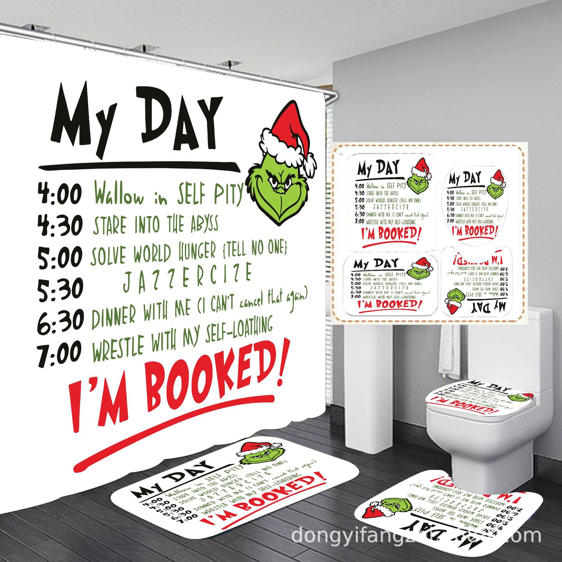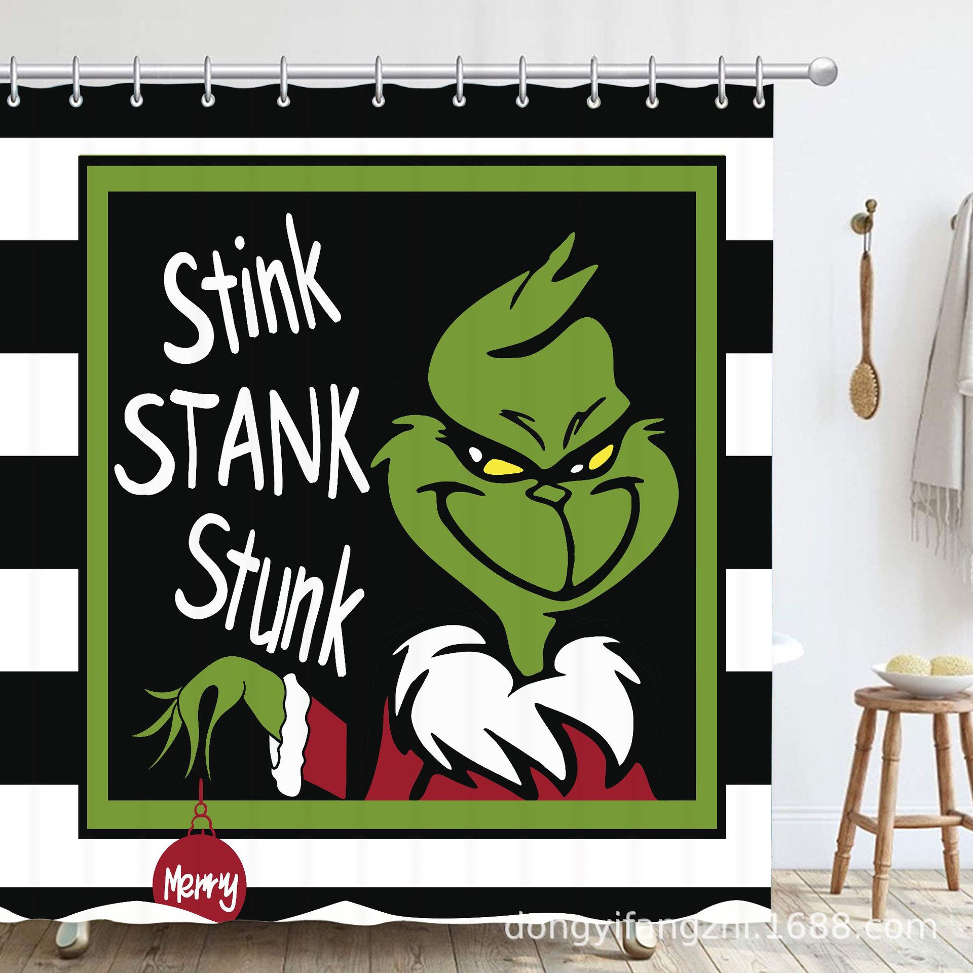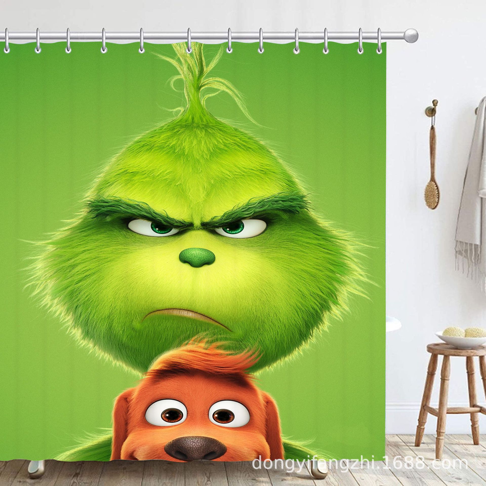 Трансграничная Рождественская занавеска для душа с цифровой печатью Amazon Набор из четырех предметов для ванной комнаты Костюм без перфорации Занавеска для душа Водонепроницаемая и устойчивая к плесени