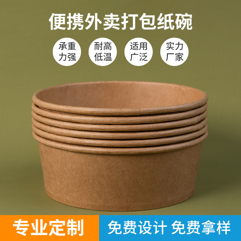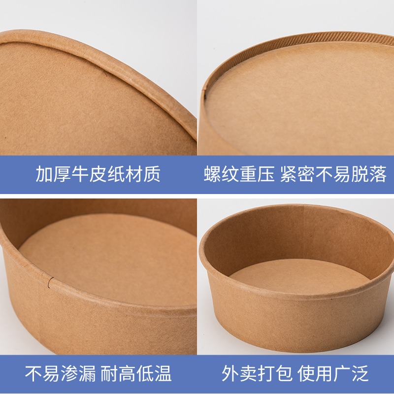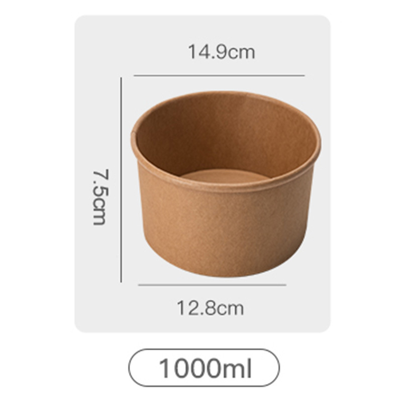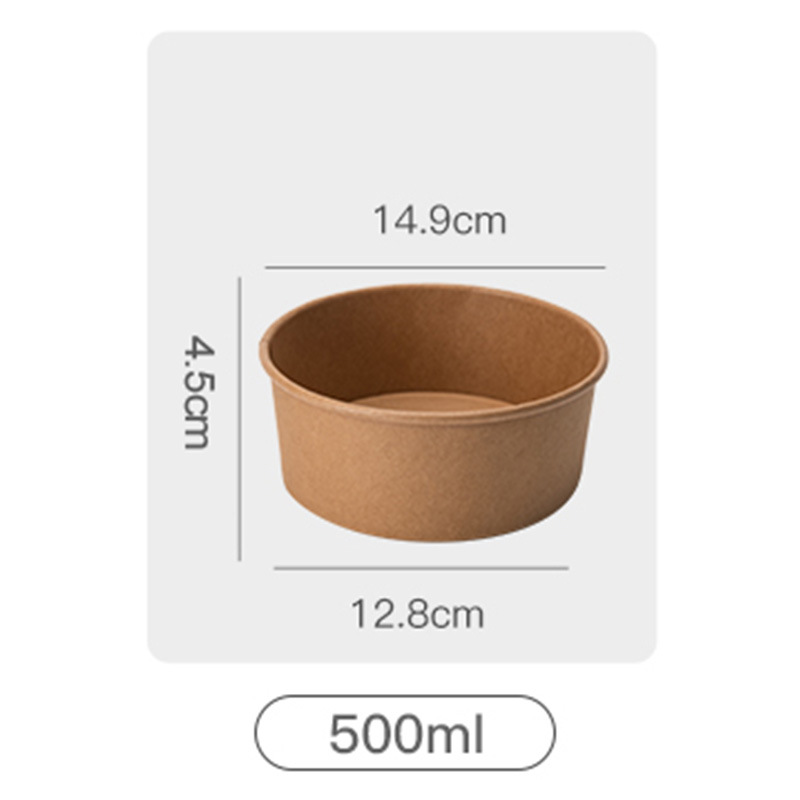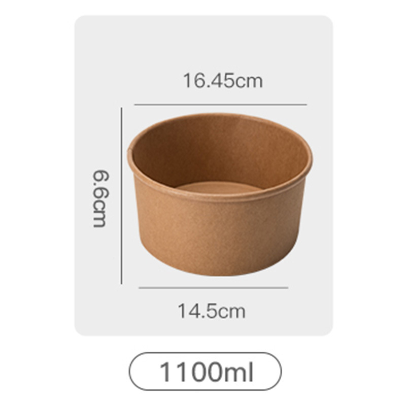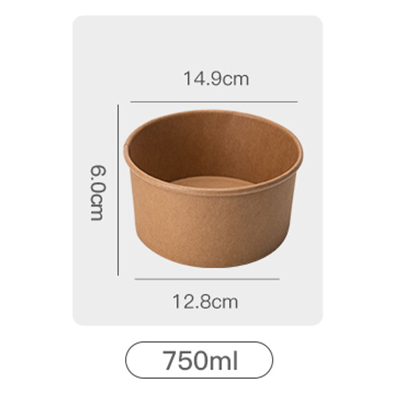 Индивидуальная бумажная миска из крафт-бумаги, круглая одноразовая бумажная миска для коммерческого использования, упаковочная коробка из крафт-бумаги для легких салатов на вынос на складе
