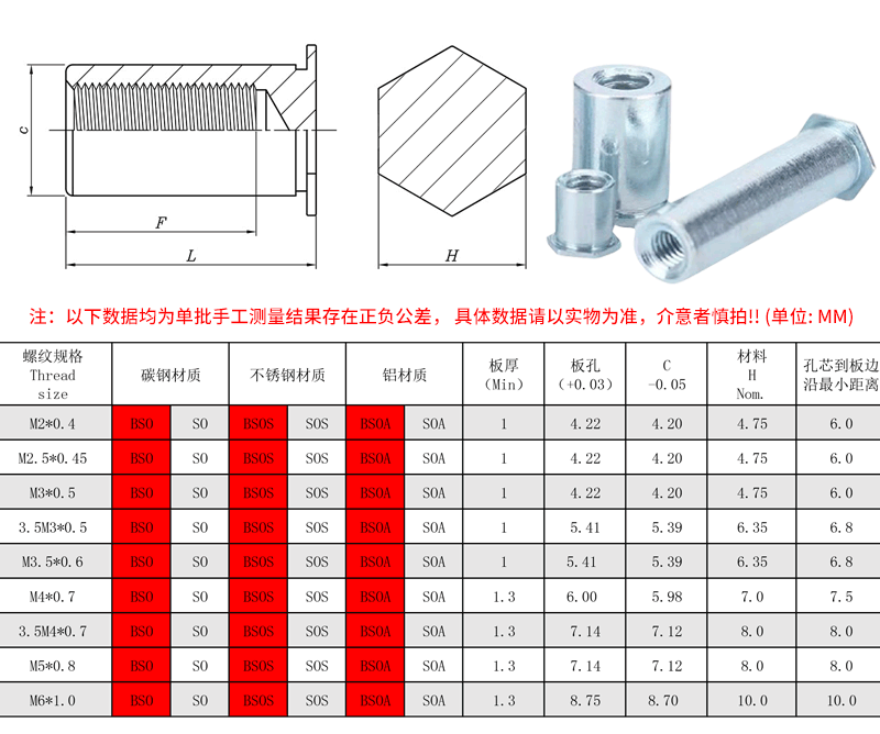 Слепые отверстия-шпильки M2M2.5M3M4M5M6 углеродистая сталь клепка шпилки прижимной пластины BSO шестиугольная шпилка оцинкованная 5