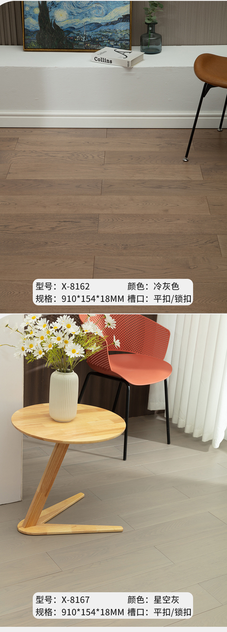 Специальное предложение: X-1011 Натуральный; Специальное предложение X-617 светло-коричневый цвет; Специальное предложение X-618 светло-серый; Специальное предложение X-619 цвет орех; Ограниченная серия X-9011 Натуральный; X-2011 Натуральный (910*125) - Практически без узлов; Замок того же типа X-2011 (906*118); X-7011 Натуральный (710*155) - Практически без узлов; Замок X-7011 того же типа (706*146); X-810 Натуральный (810*153) — практически без узлов; Цвет молочного чая X-811 (810*153) практически без узлов.; X-812 светло-коричневый цвет (810*153), практически без узлов; Х-2013 цвет орех (910*125); X-813 цвет орех (810*153) практически без сучков; X-8011 Натуральный (910*155) - Практически без узлов; X-8011 замок в том же стиле; X-8011 Натуральный класс А (910*155) Высокое качество; X-8176 True Color (910*154) Премиум Детали; X-1211 Натуральный (1210*155) - Практически без узлов; X-8121 Цвет орех (910*154) Секция; X-8213 светло-коричневый цвет (910*153), практически без узлов; X-8213 замок в том же стиле; X-8212 Янтарный (910*153) практически без узлов; X-8165 карамельный цвет (910*154) практически без узлов; X-8180 Пшеничный цвет (910*154) - Практически без узлов; X-8163 Табачно-коричневый (910*154) — практически без узлов; Замок X-8163 того же стиля; X-3011 Крем (910*153) Премиум-секция; X-511 малый сегмент с горизонтальными полосами (910*153) высококачественный малый сегмент; X-512 горизонтальные полосы цвета орех (910*153) тонкий срез; X-8086 серый с матовой отделкой (910*154), практически без узлов; X-8168 темно-серый (910*154), практически без узлов; X-8178 серый (910*154) практически без узлов; X-8162 холодный серый (910*154) практически без узлов