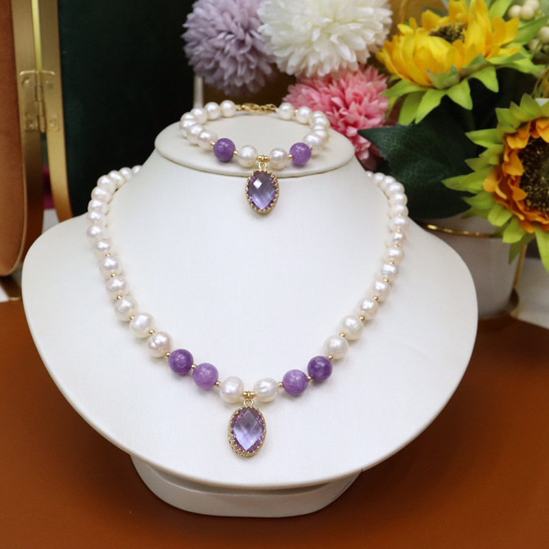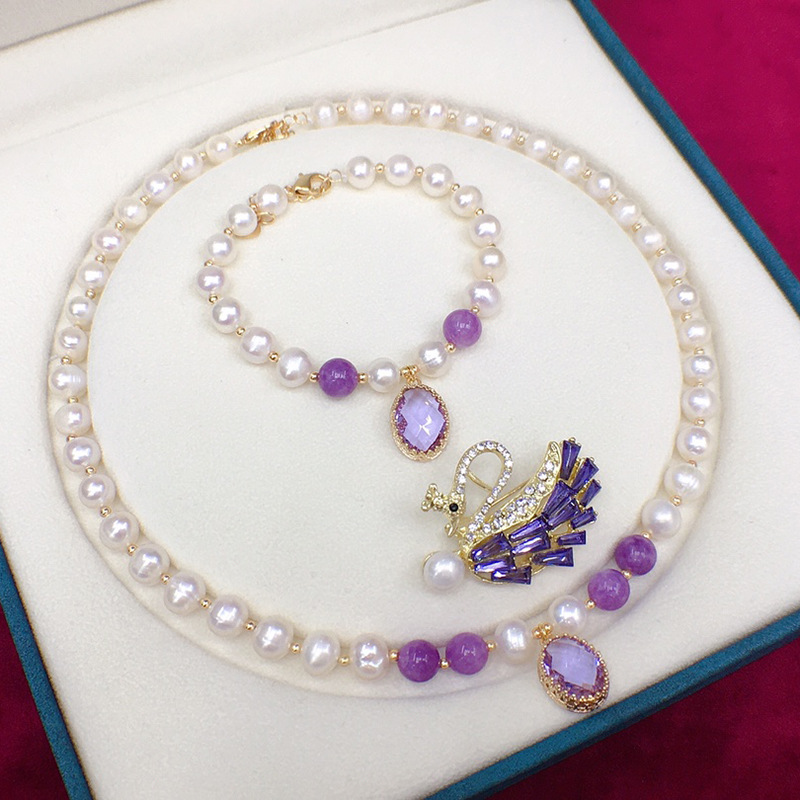 Костюм с ожерельем из натурального пресноводного жемчуга, Женский Осенний корейский дизайн 7-8 мм, модный простой элегантный дизайн 361