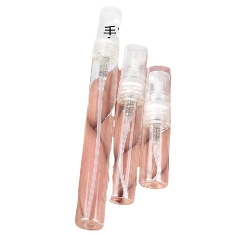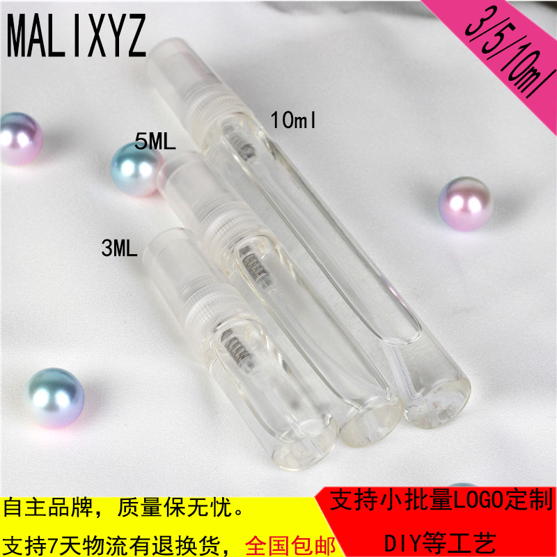 现货2ml 3ml5ml10ml 按压式分装瓶包装方式:玻璃瓶塑封膜纸托包装 喷头是PE袋子500个一包
