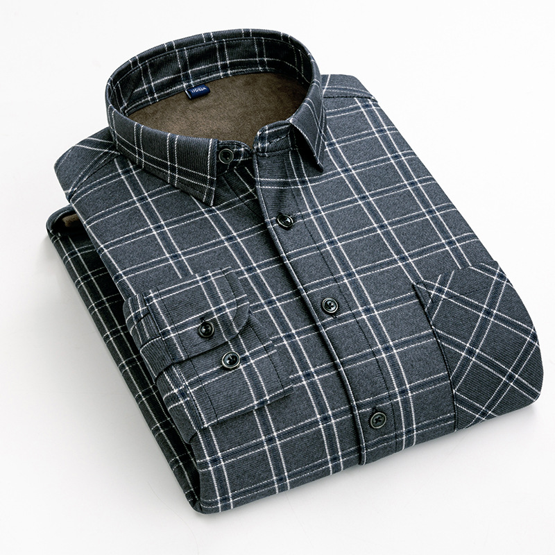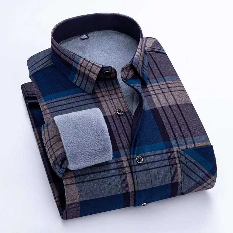 2025 новый стиль мужская теплая рубашка с лацканами свободного кроя в клетку готовая хлопковая зимняя утепленная одежда для мужчин среднего возраста