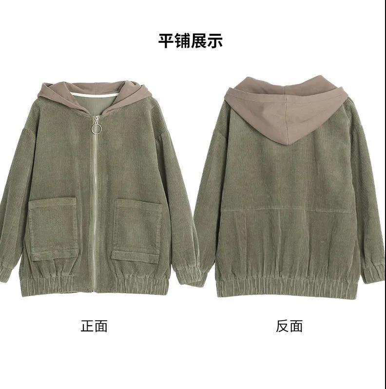 Вельветовое короткое пальто с капюшоном, Женская свободная осенне-зимняя куртка с длинным рукавом, кардиган, трансграничная Женская Внешняя торговля, оптовая продажа