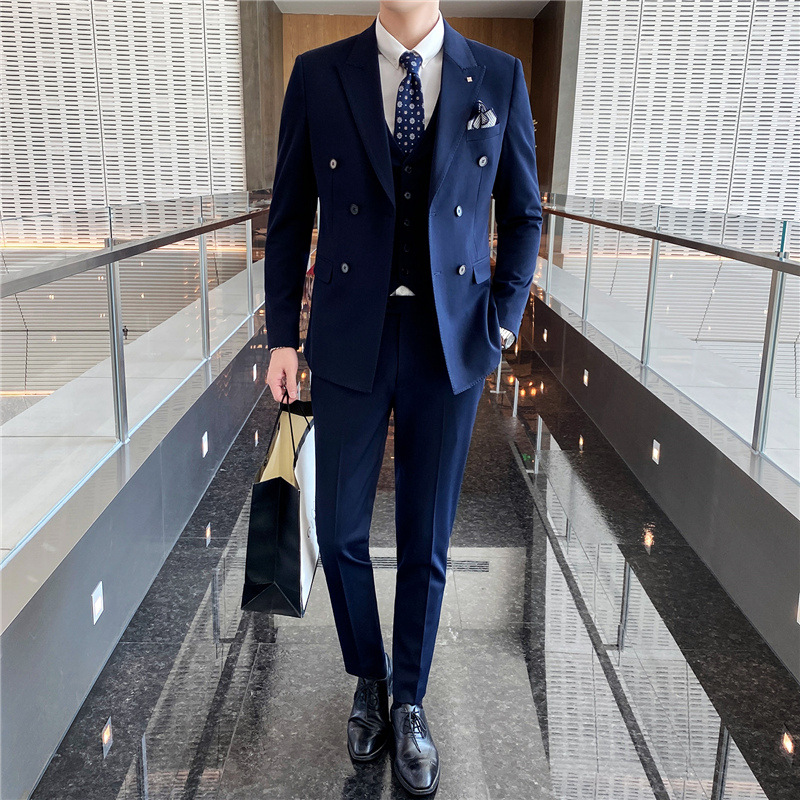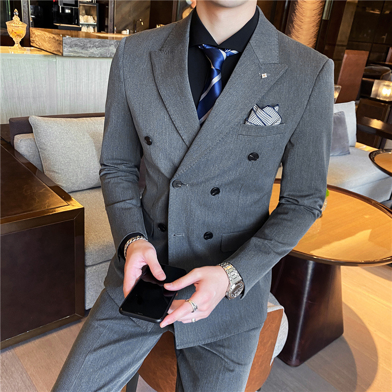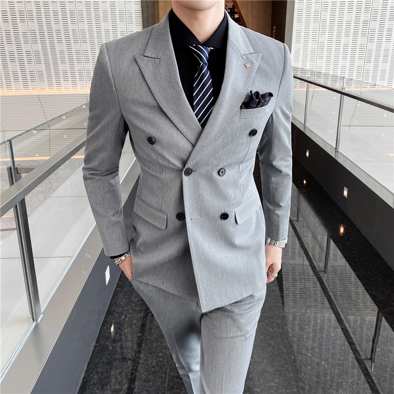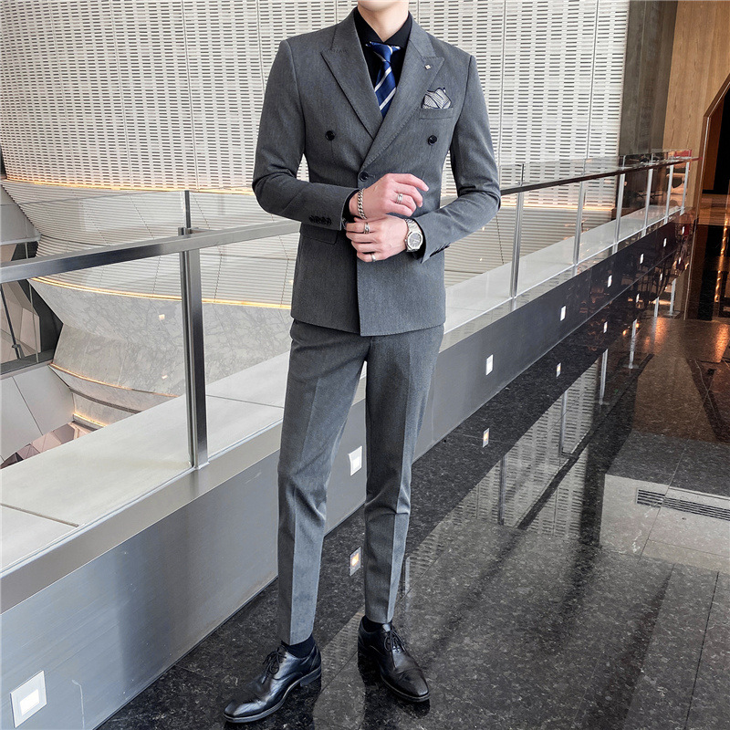 Мужской костюм в корейском стиле, стройный деловой костюм, брюки, профессиональный формальный костюм для жениха, свадебный костюм