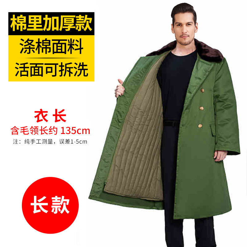Хлопковое пальто в стиле милитари, зеленое мужское зимнее утолщенное длинное защитное хлопковое пальто, рабочая одежда для холодного хранения, северо-восточное хлопковое пальто